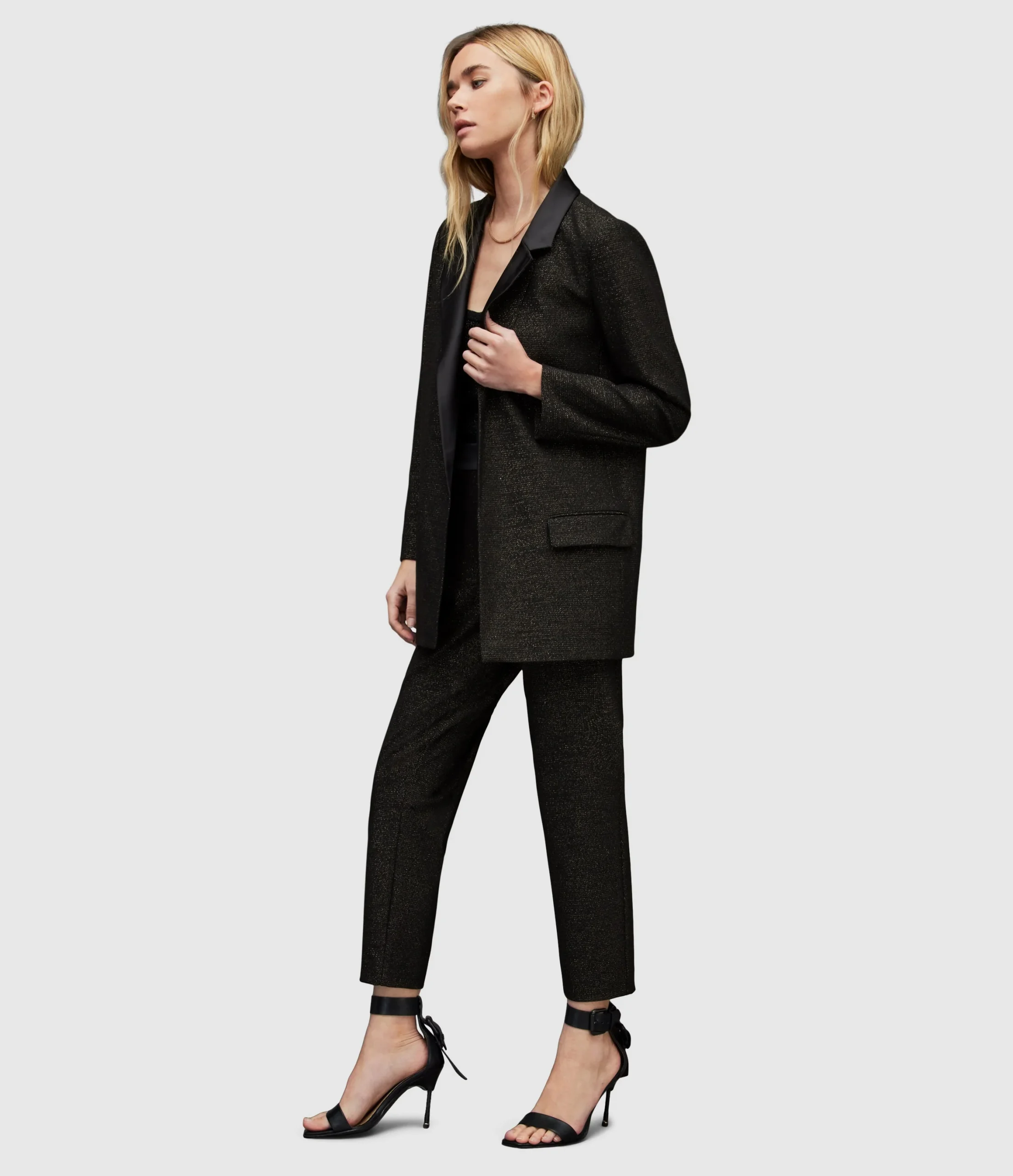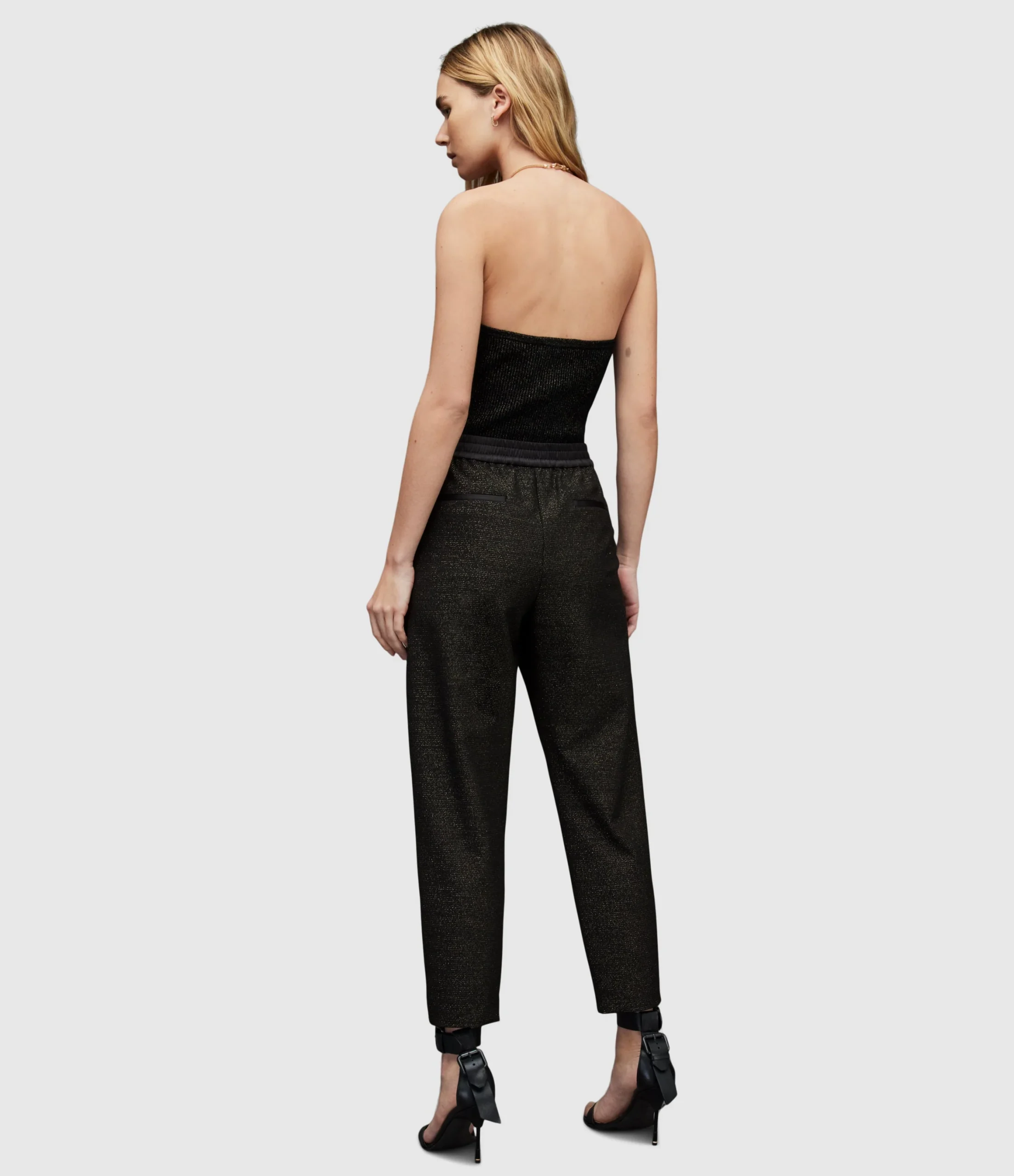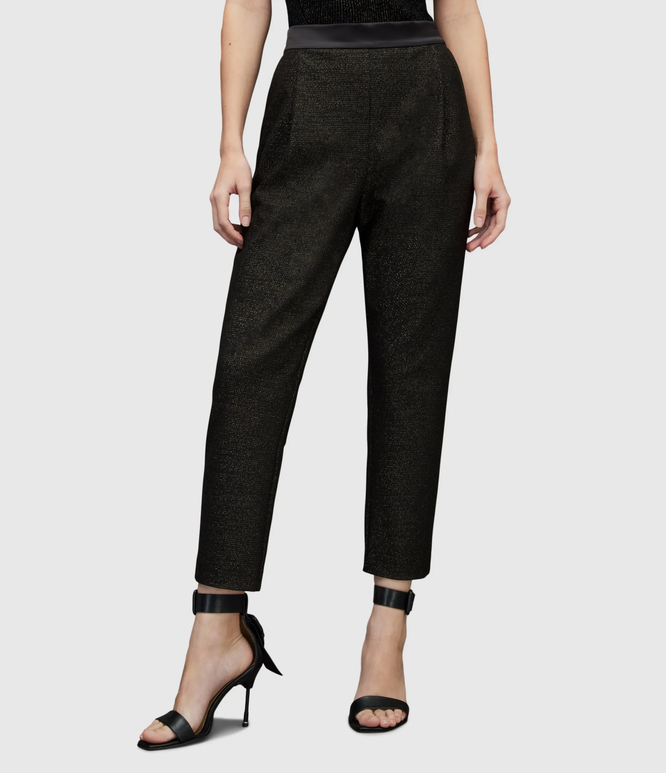Pantalones Aleida Negro para mujer, marca AllSaints, con brillo. COMPOSICIÓN Y LAVADO: Consultar etiqueta interna.