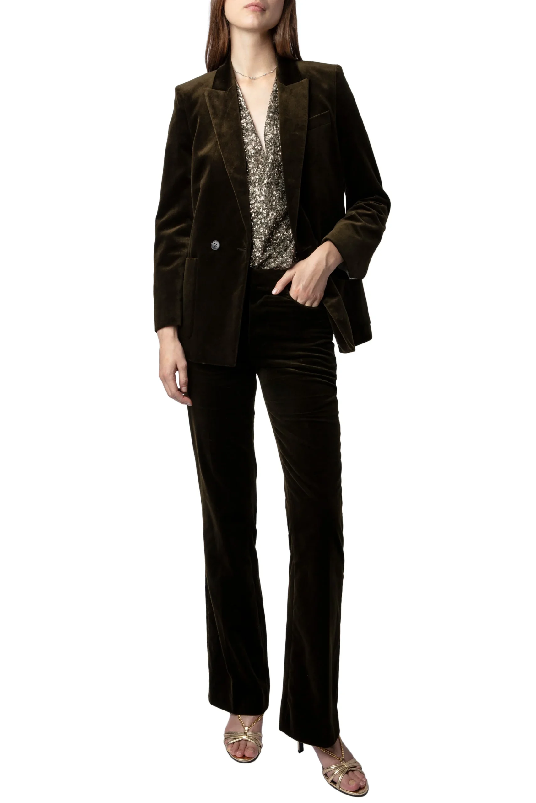 Pantalones Pistol Velvet Khaki, marca Zadig & Voltaire. COMPOSICIÓN Y CUIDADOS: Consultar etiqueta interna.