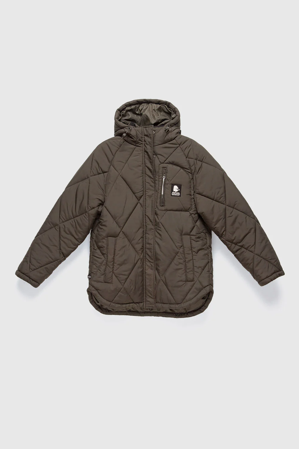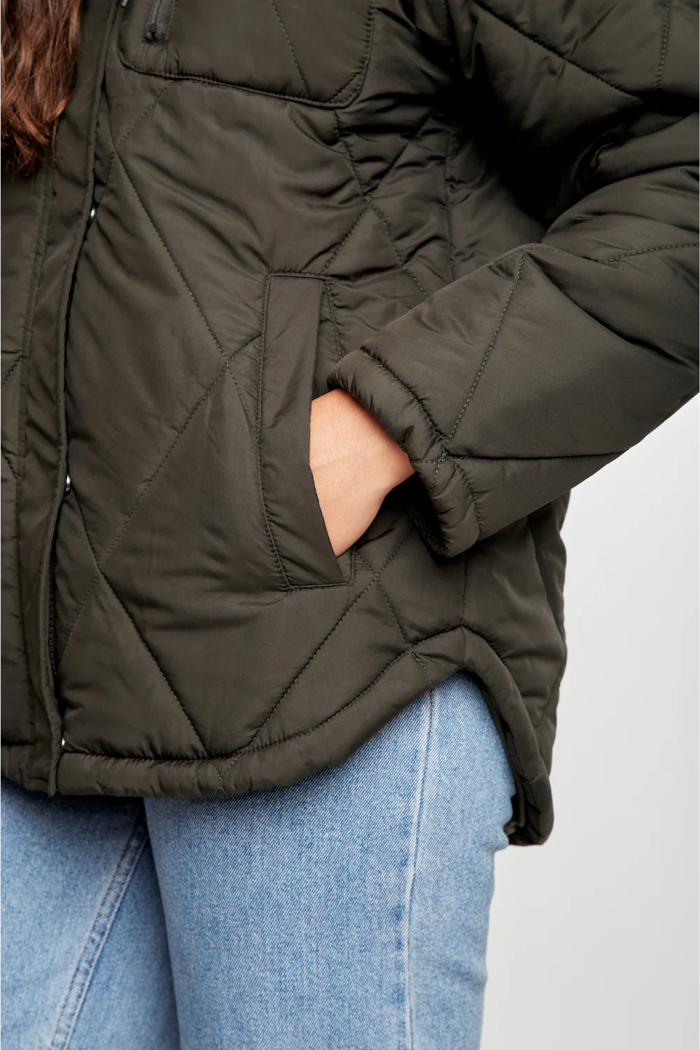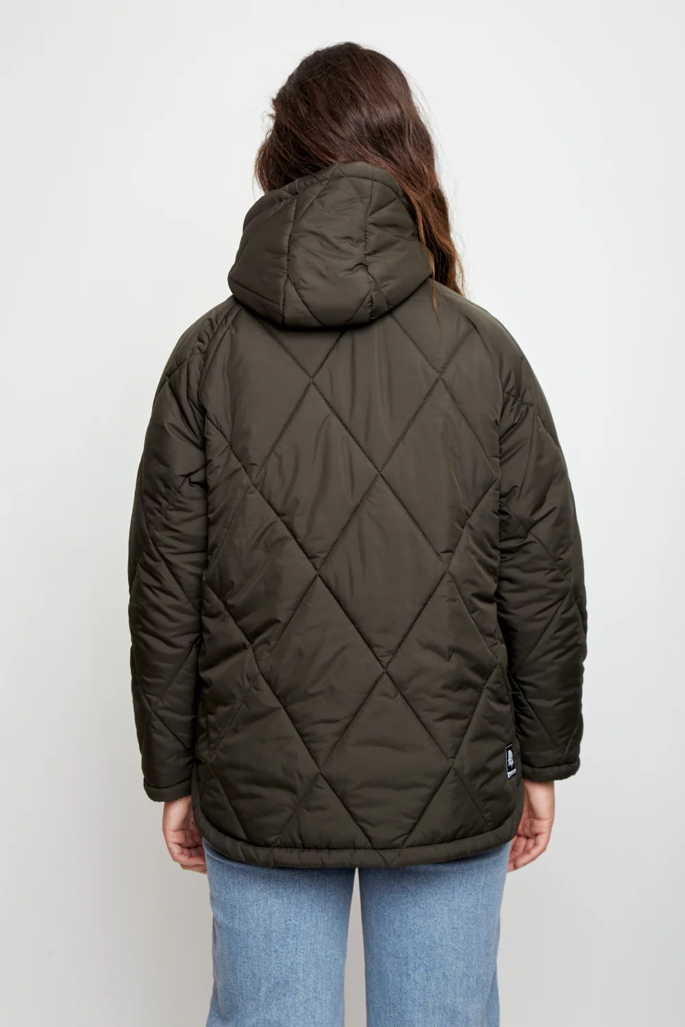 Sea caminando por la ciudad o escapando a la montaña, está diseñada para mantenerte abrigada y cómoda. Tiene bolsillos para todo (porque siempre hay algo que guardar), gorro ajustable y un cierre completo de cuello alto reforzado con broches que no dejan entrar el viento. No es impermeable.