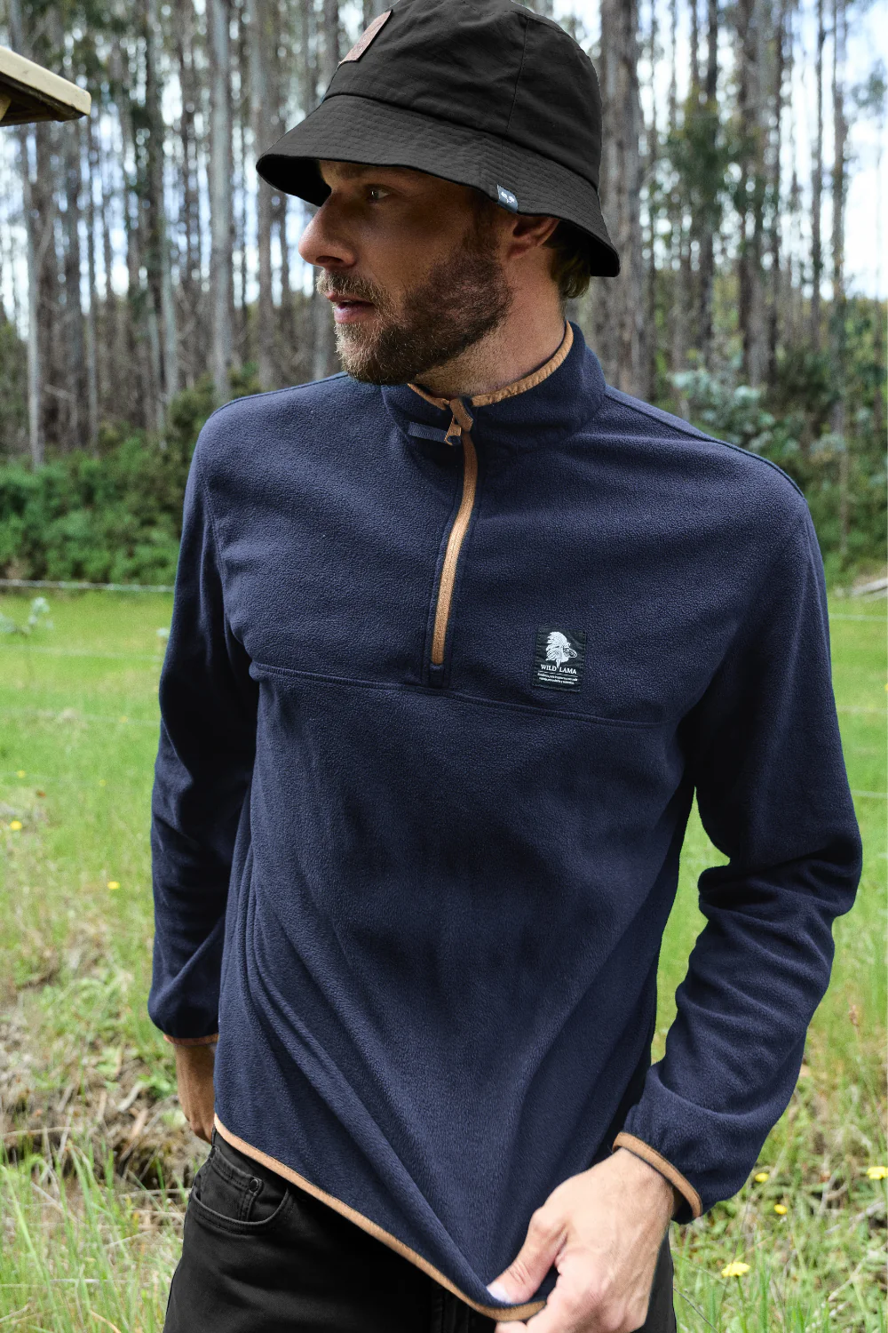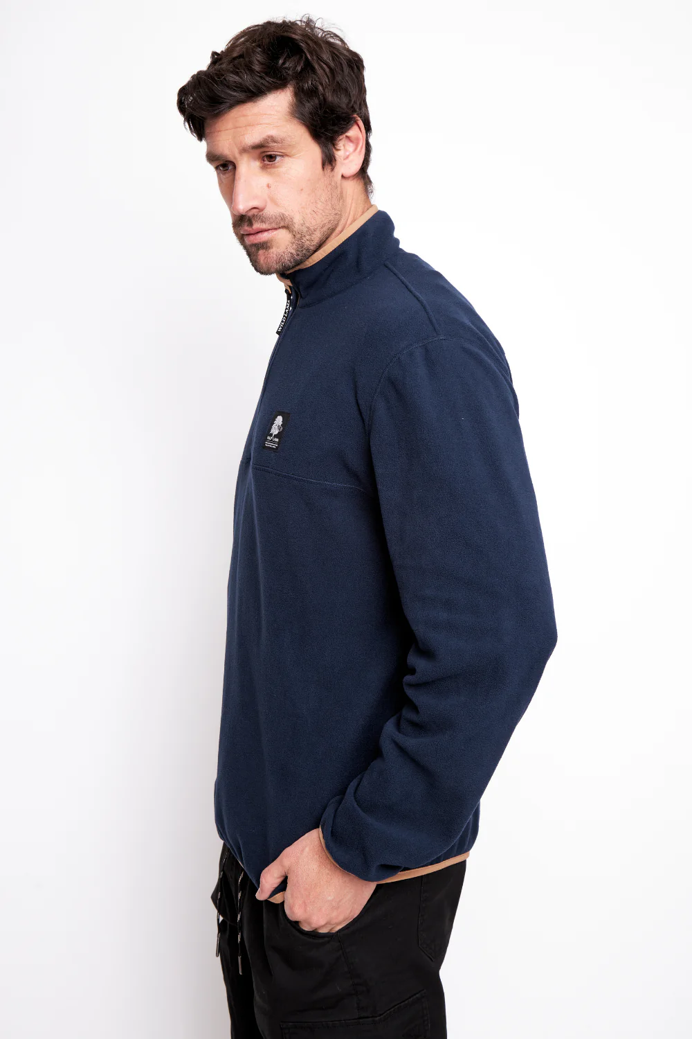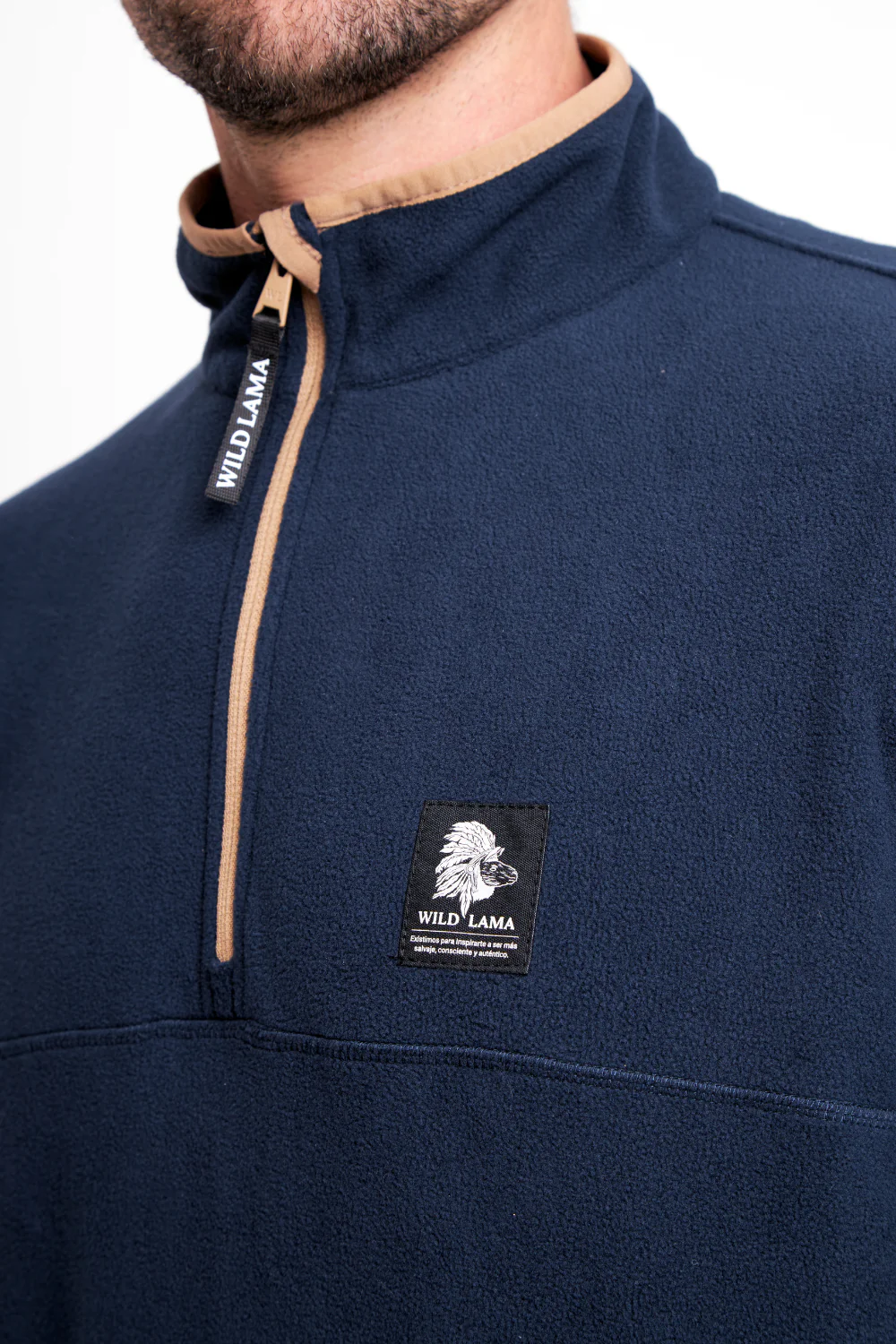 Este polar es un básico que sirve de primera capa. Tiene el cuello alto y medio cierre. Sus puños son elasticados y tiene un cierre a contraste para darle el toque wild.