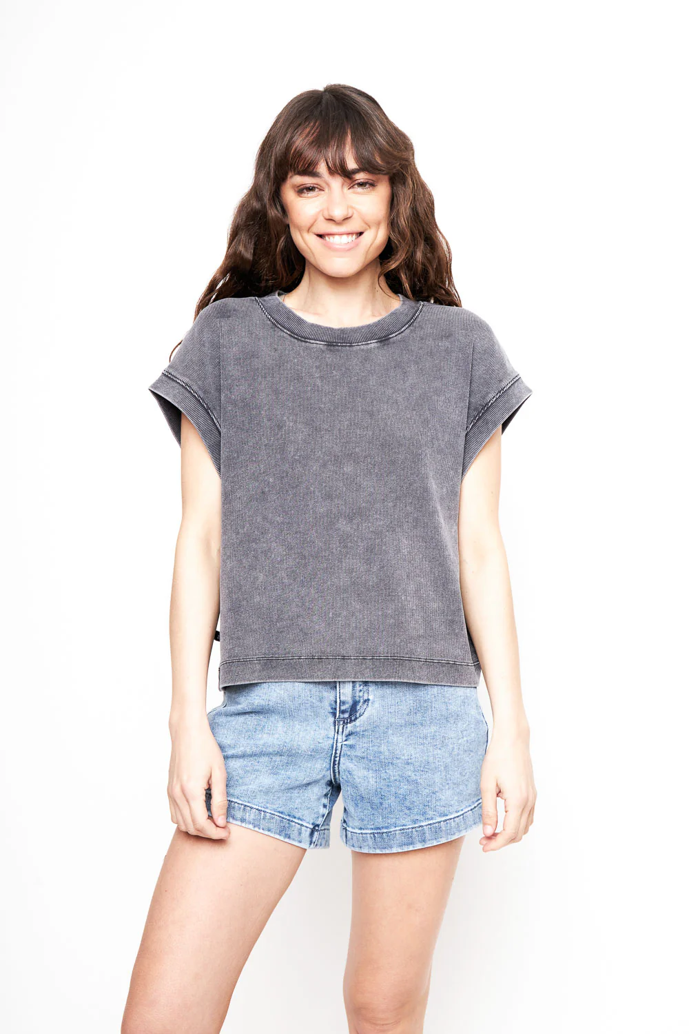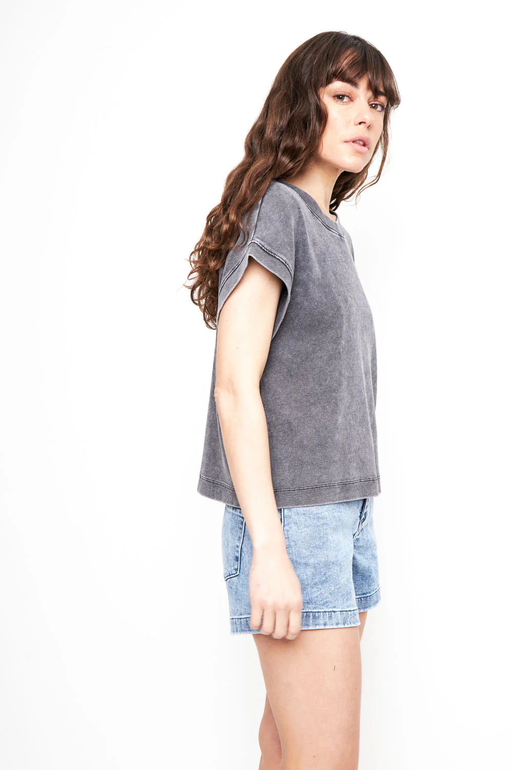 Esta polera fue pensada para que fuera más suelta y así se convierta en tu favorita los días de más calor. Su tela desgastada le da un toque diferente.