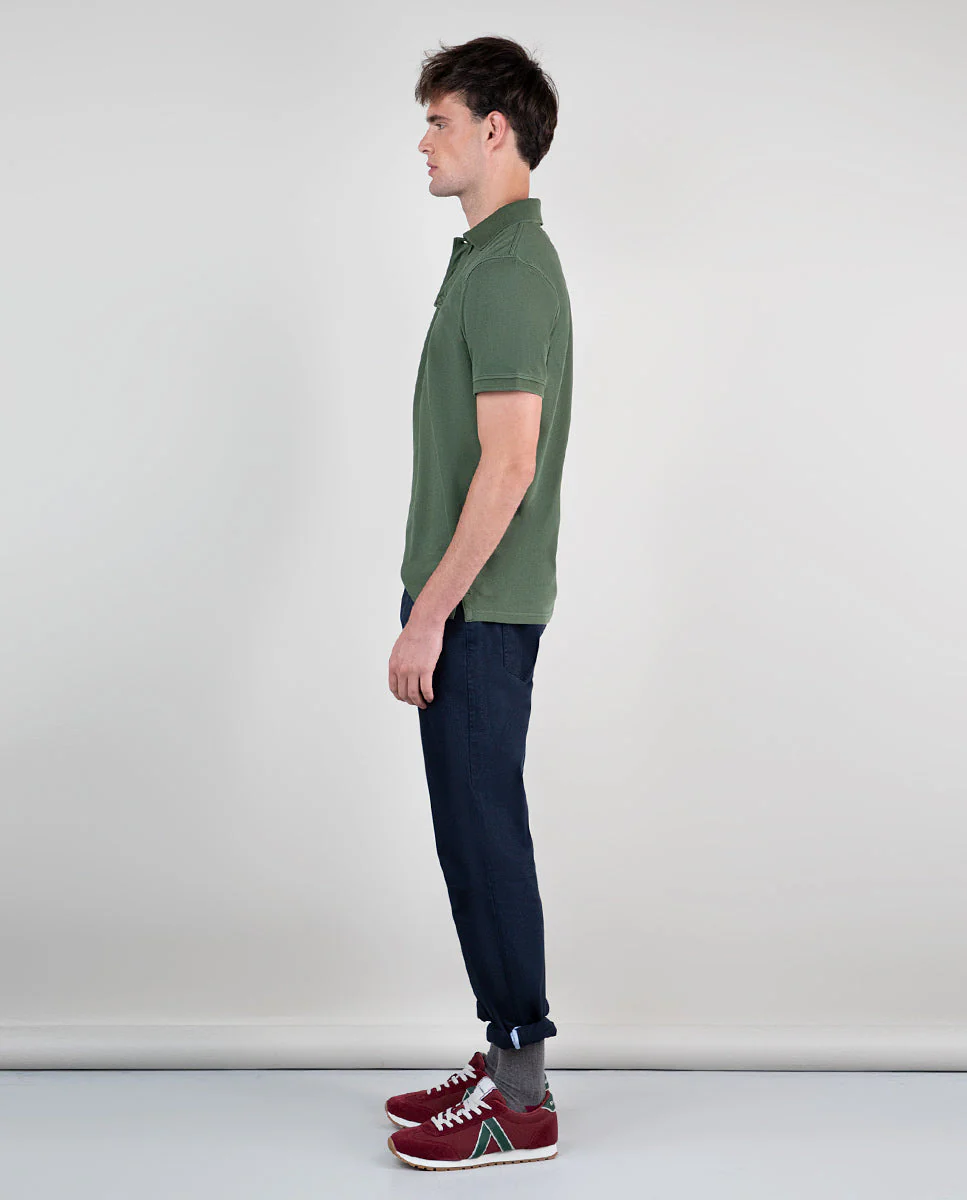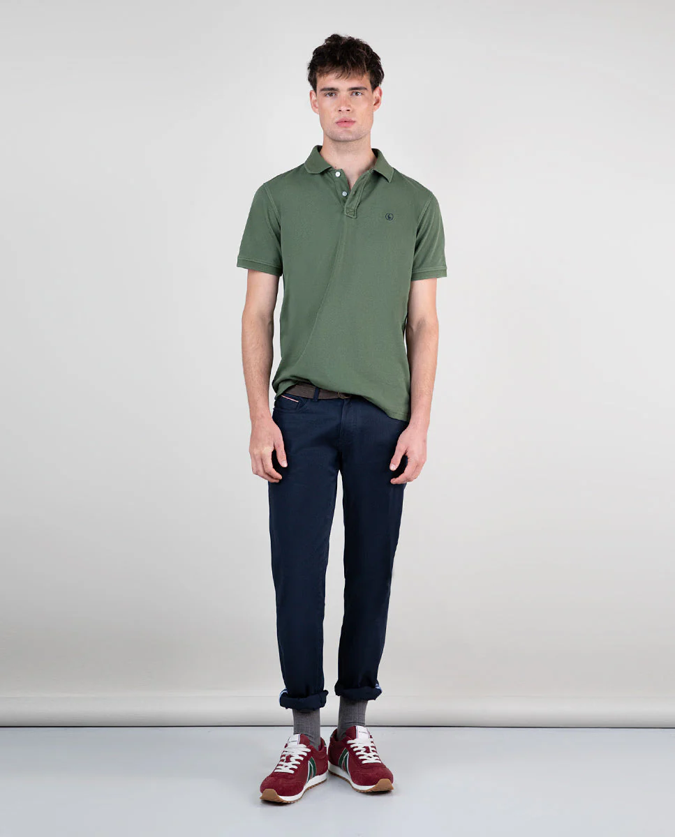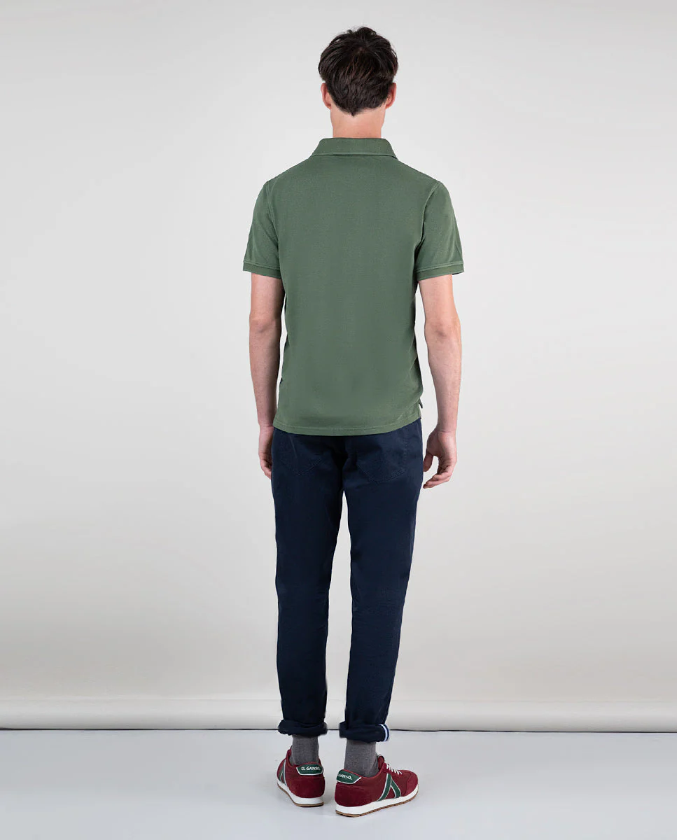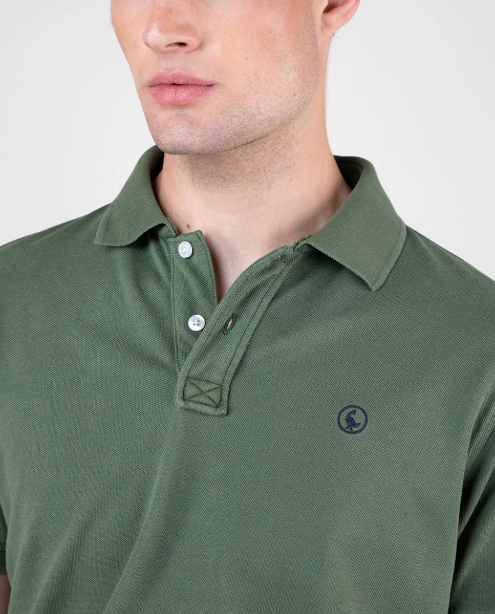 Polo de hombre liso confeccionado en tejido 100% algodón. Prenda lavada despúes de confeccionada, con un acido enzimático para conseguir un color desgastado. Corte Slim Fit, cuello clásico y tapeta con dos botones. Logo bordado a contraste en el pecho.