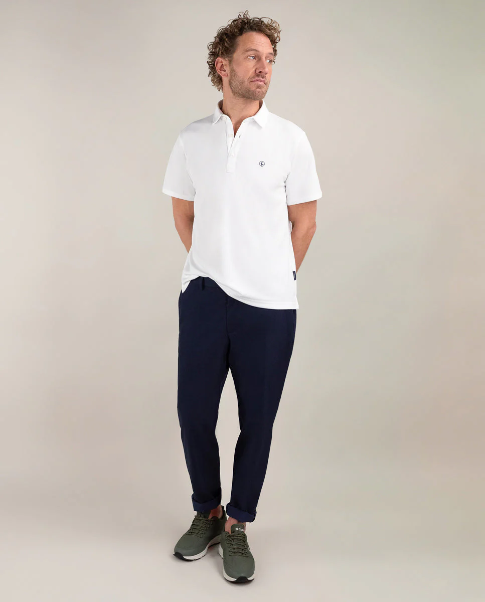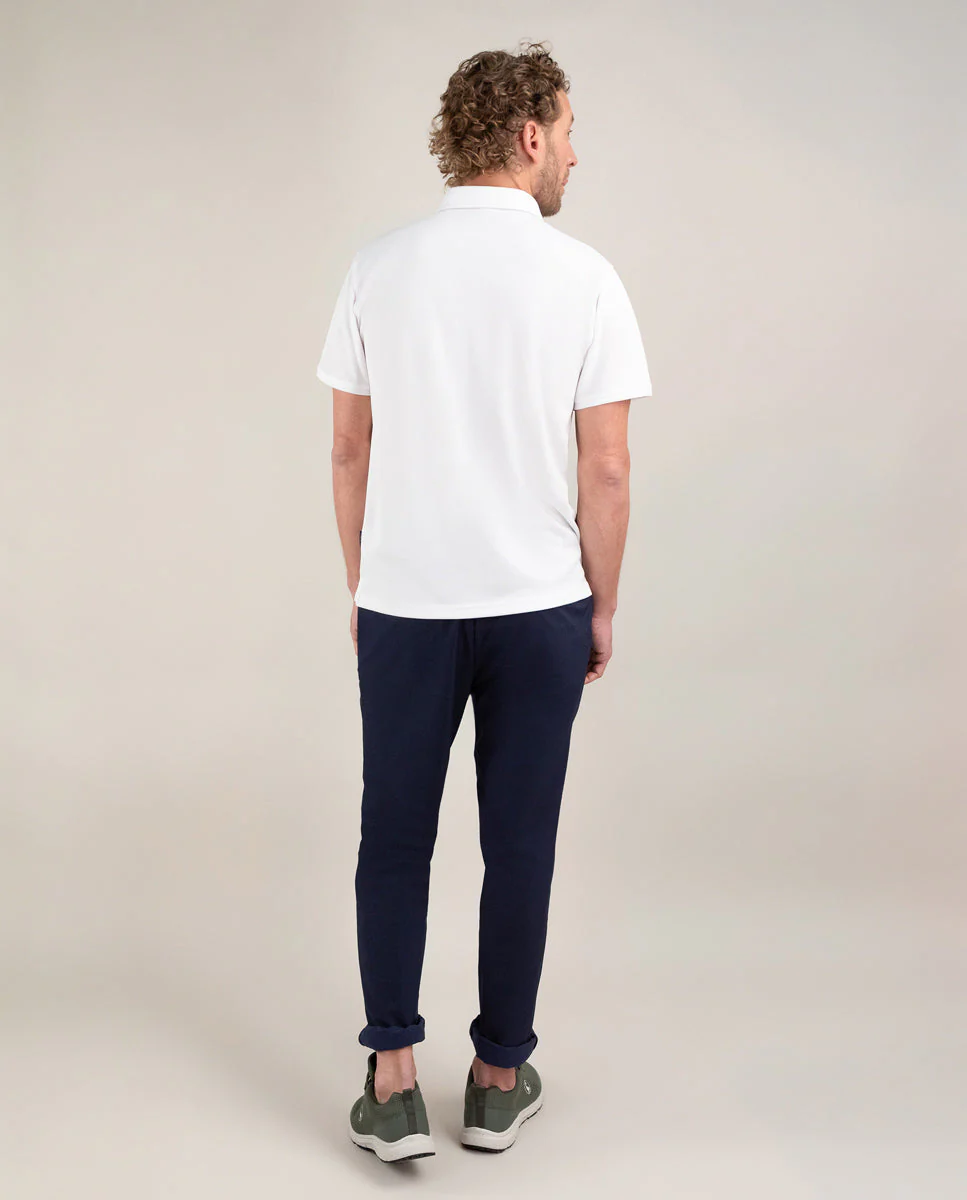Polo de manga corta confeccionado en tejido 100% poliéster técnico antibacteriano reciclable. Corte slim fit, cuello clásico, cierre mediante tapeta de dos botones. Logo bordado marino a la altura del pecho.| Dato molón: Este tejido con tecnología inspirada en la flor de loto, repele las manchas como refrescos, café y la mayoría de salsas. El tratamiento está aplicado en el exterior de la prenda para que la interior sea absorbente y la prenda transpire, lo que hace que puedas lavarla en lavadora. Además, neutraliza el 99,9% de bacterias que causan mal olor cuando sudamos y después de lavarla no necesitan plancha.