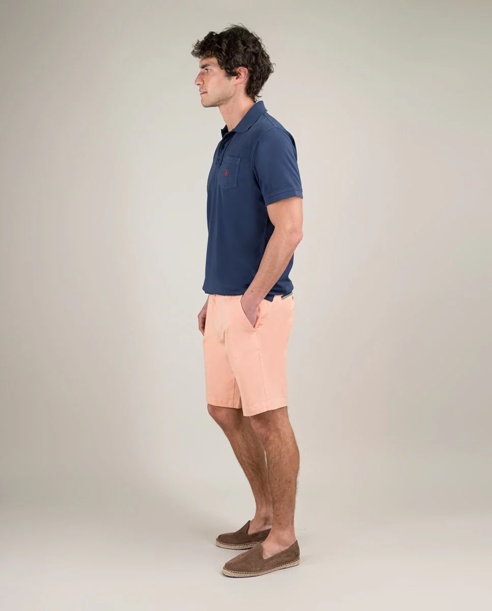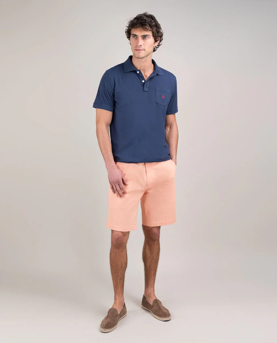 Polo de hombre liso confeccionado en tejido 100% algodón single jersey. Prenda lavada despúes de confeccionada, con un acido enzimático para conseguir un color desgastado. Corte Slim Fit, cuello clásico, bolsillo en el pecho y tapeta con tres botones. Logo bordado a contraste.