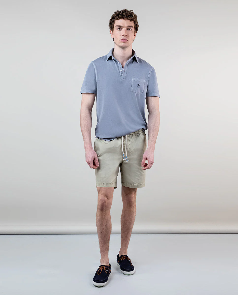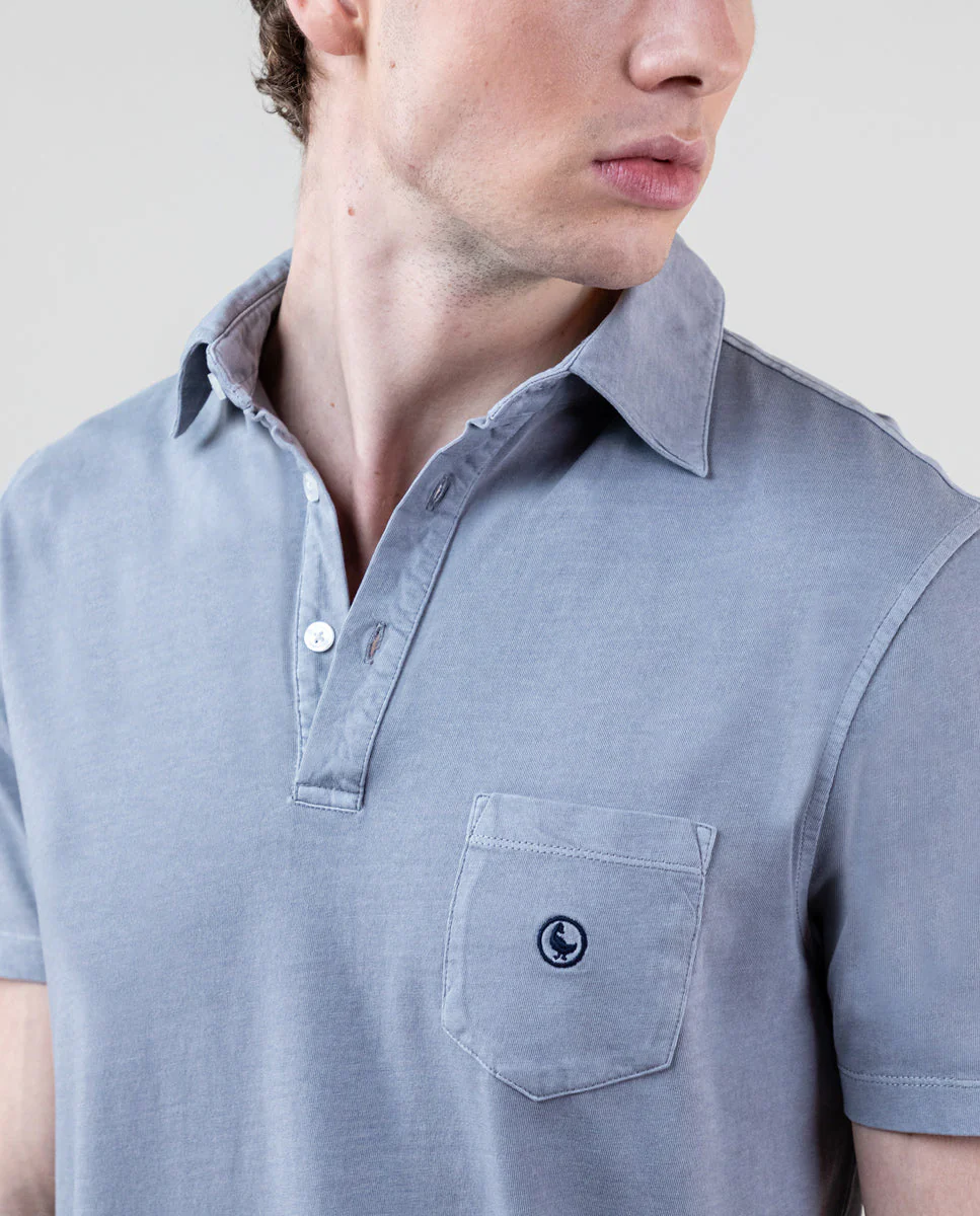 Polo de hombre liso confeccionado en tejido 100% algodón single jersey. Prenda lavada despúes de confeccionada, con un acido enzimático para conseguir un color desgastado. Corte Slim Fit, cuello clásico, bolsillo en el pecho y tapeta con tres botones. Logo bordado a contraste.