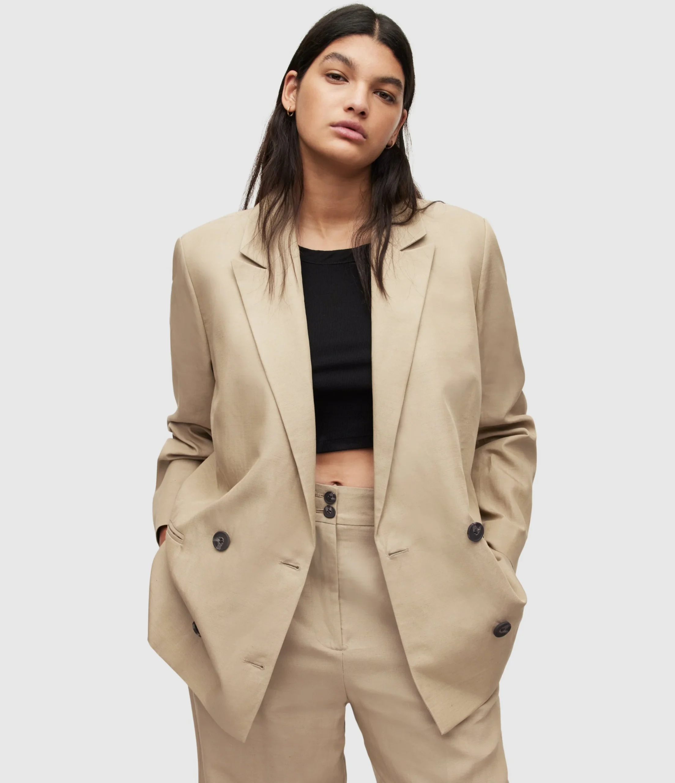Saco Petra Beige para mujer, marca AllSaints. COMPOSICIÓN Y LAVADO: Consultar etiqueta interna.