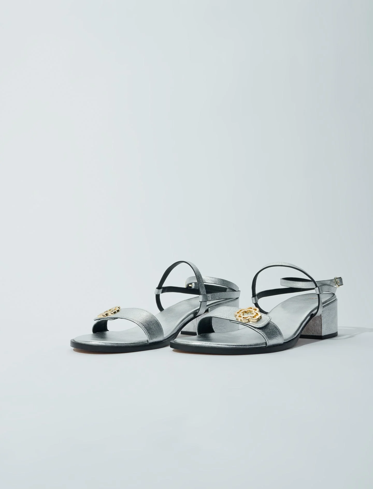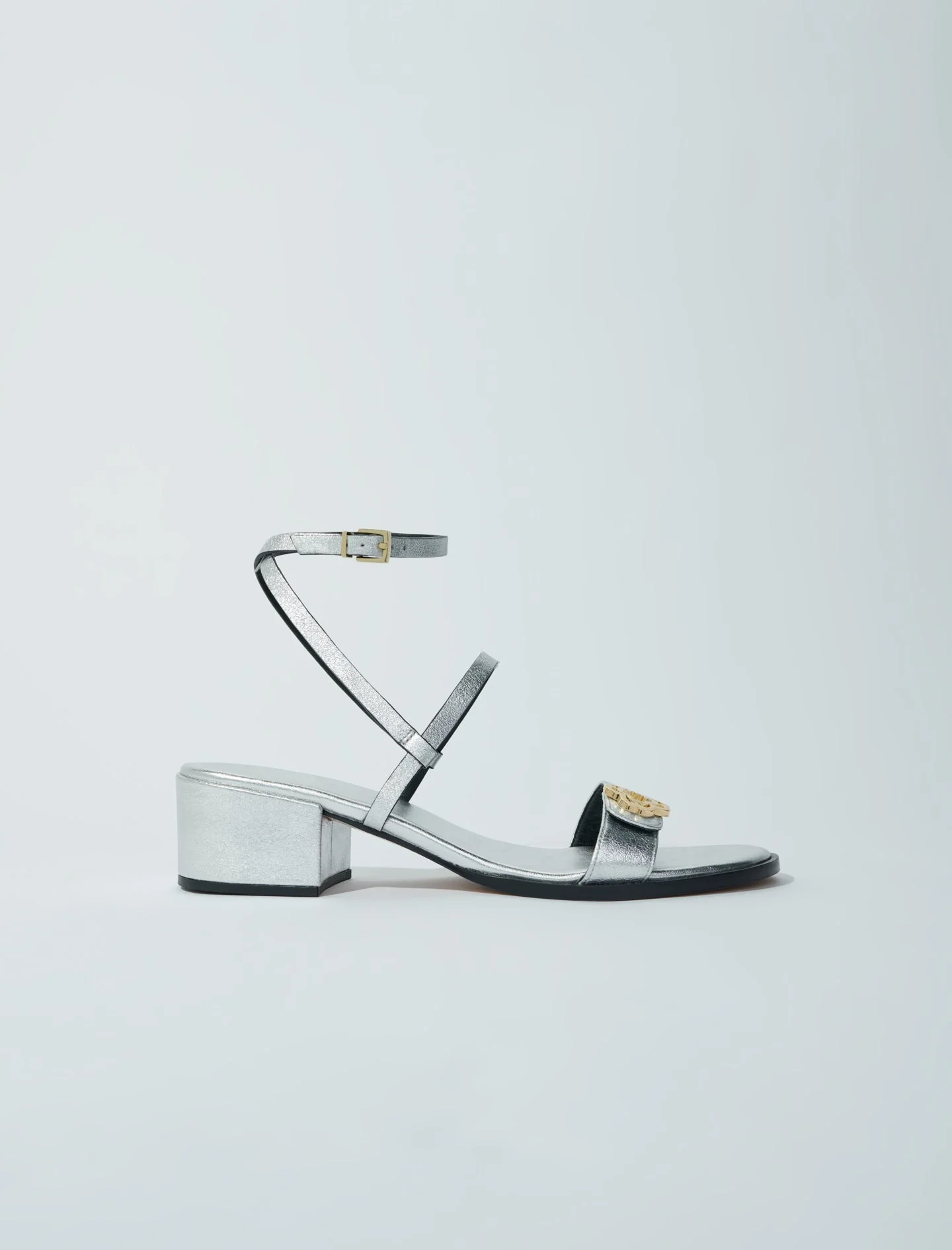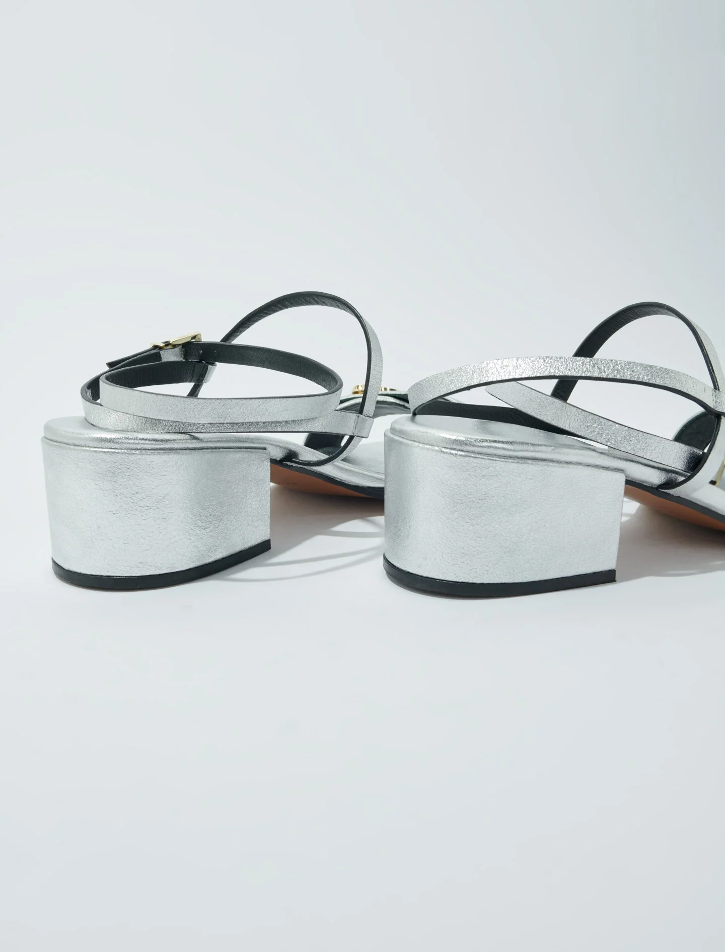 Confeccionadas en piel metalizada color plata, estas sandalias con tacón realzan con esplendor tanto sus looks de día como de noche.