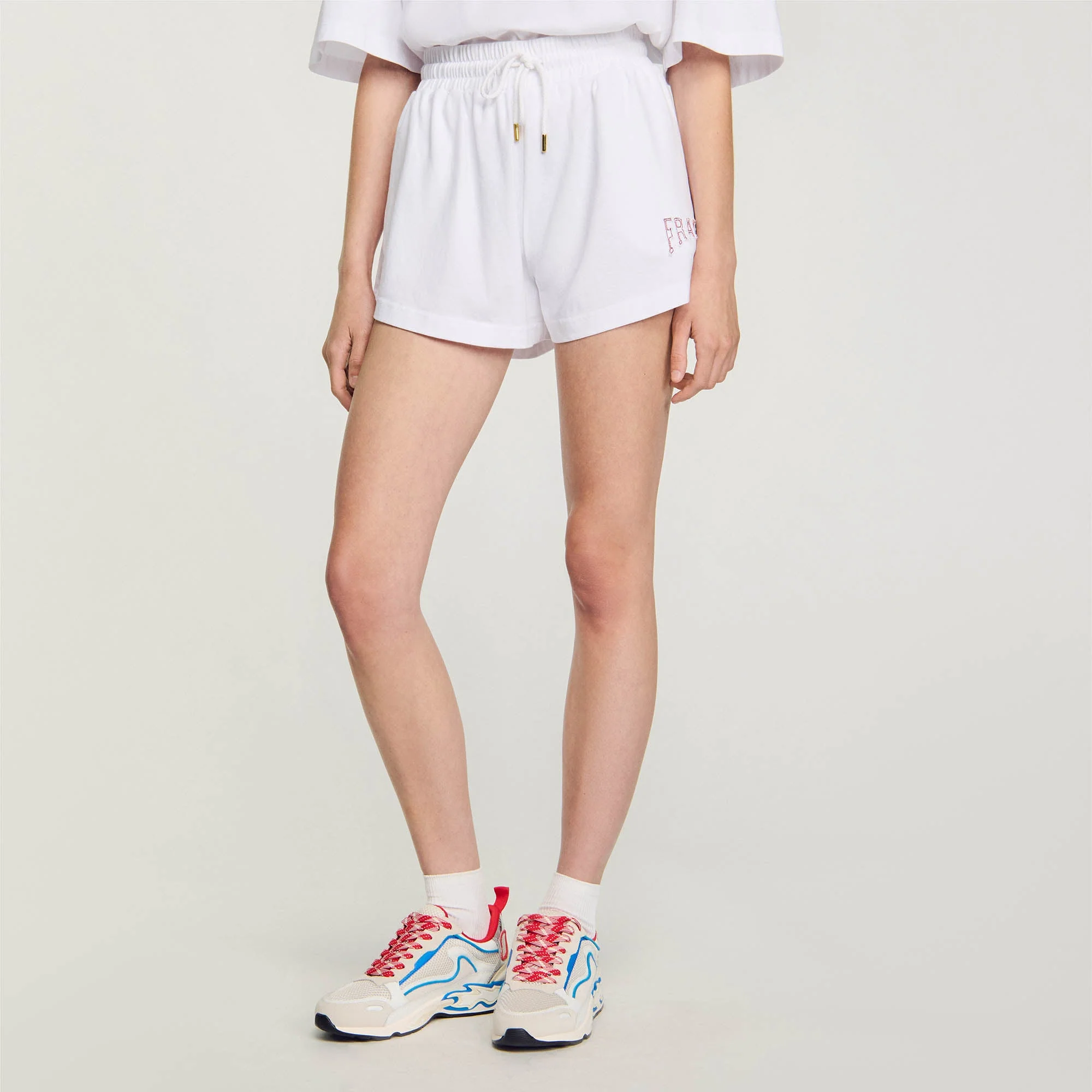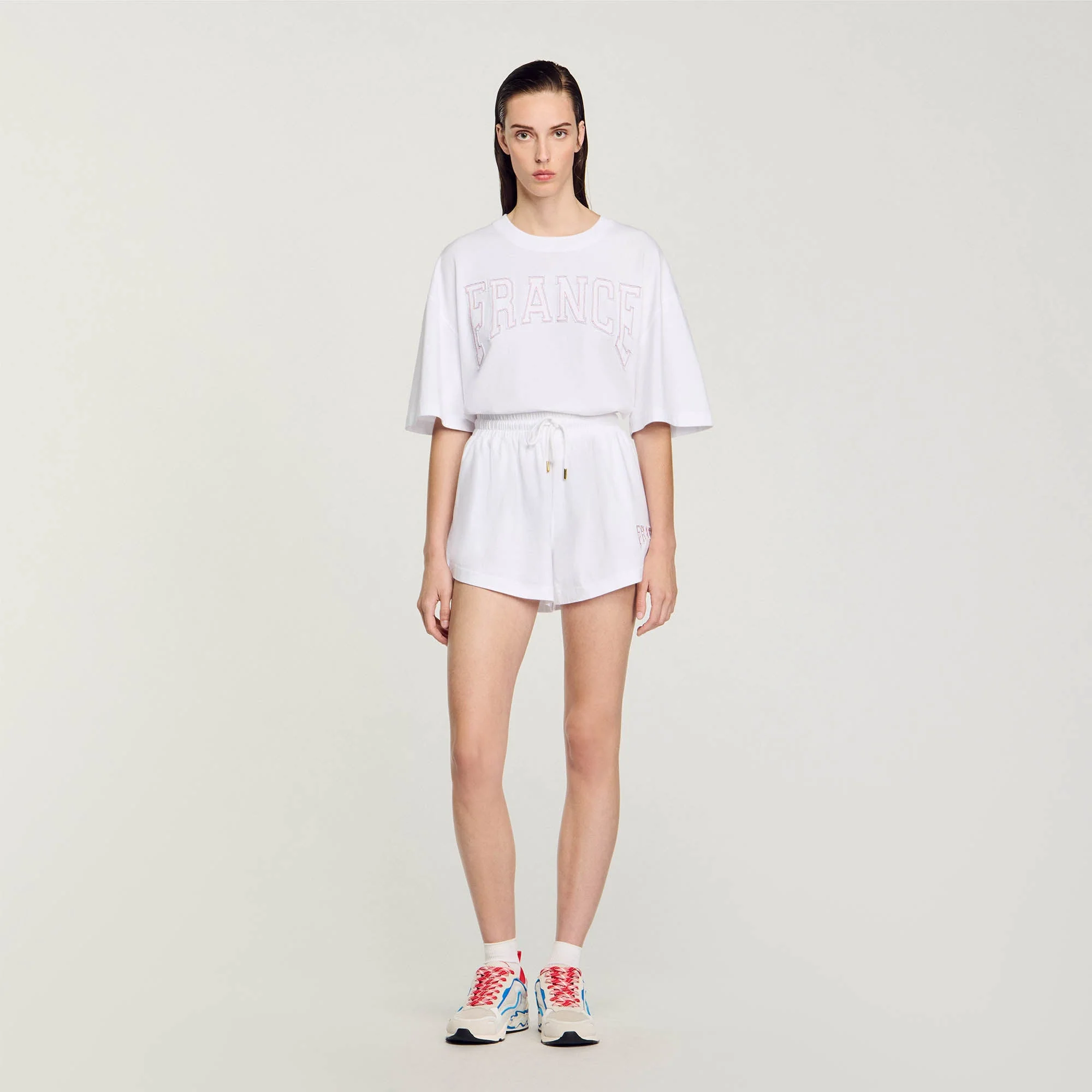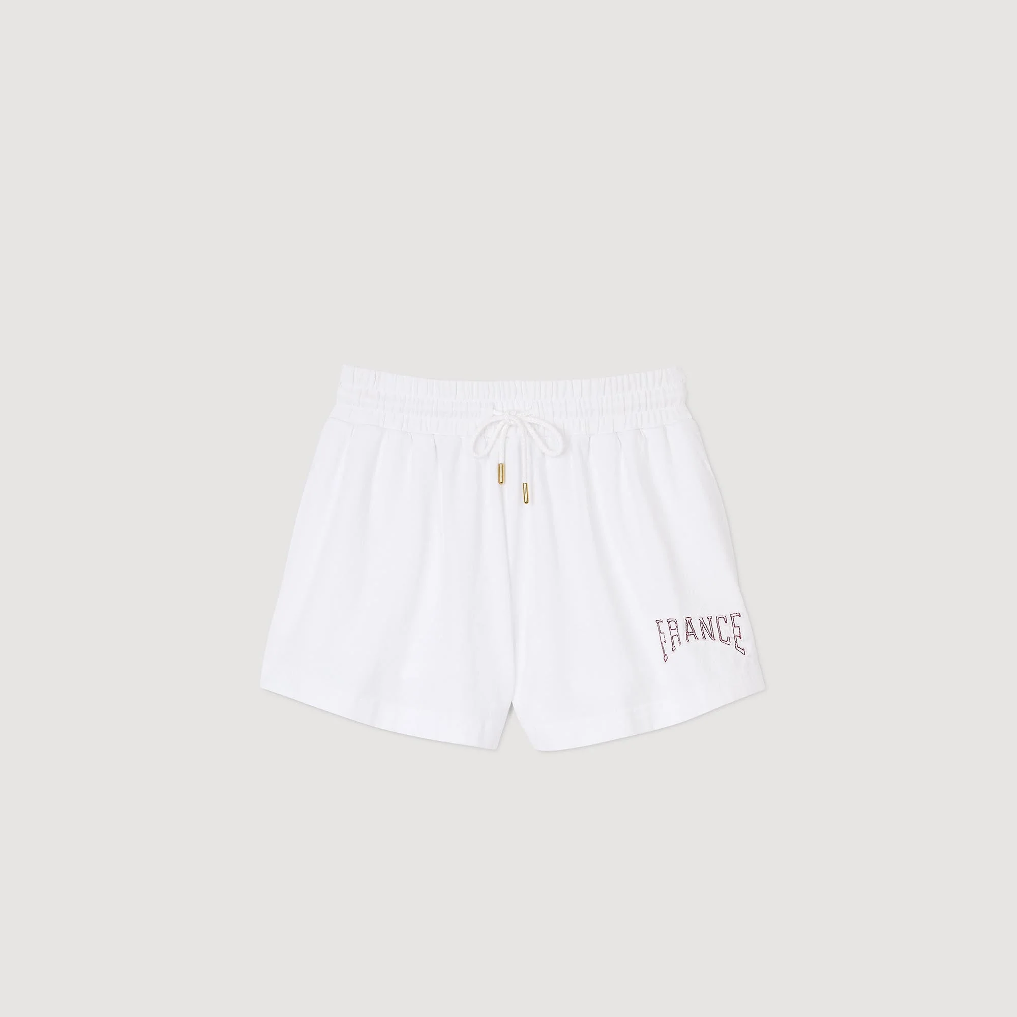 Short corto estilo bóxer de felpa con cintura elástica con cordones ajustables y bordado «France» en el lateral.