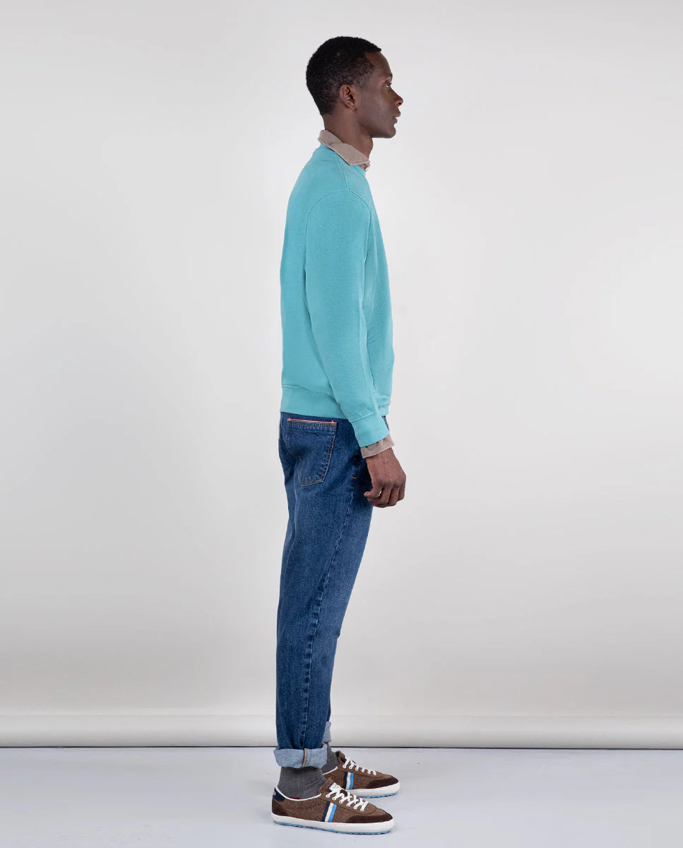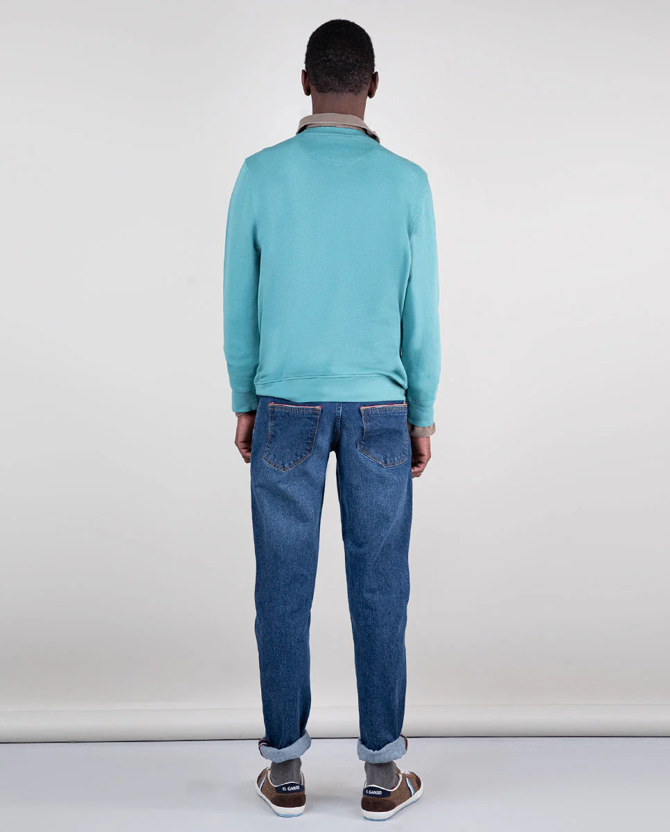 Sudadera lisa de hombre confeccionada en felpa 100% algod贸n Better Cotton, tintada en prenda envejecida para darle un acabado lavado. Tiene un corte Regular Fit, cuello redondo y manga larga. Lleva logo bordado en el pecho.