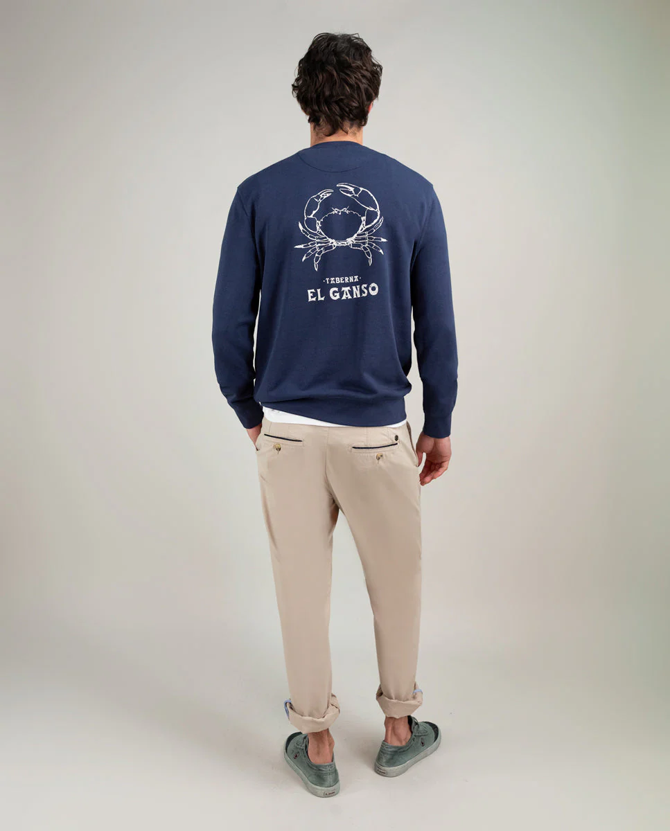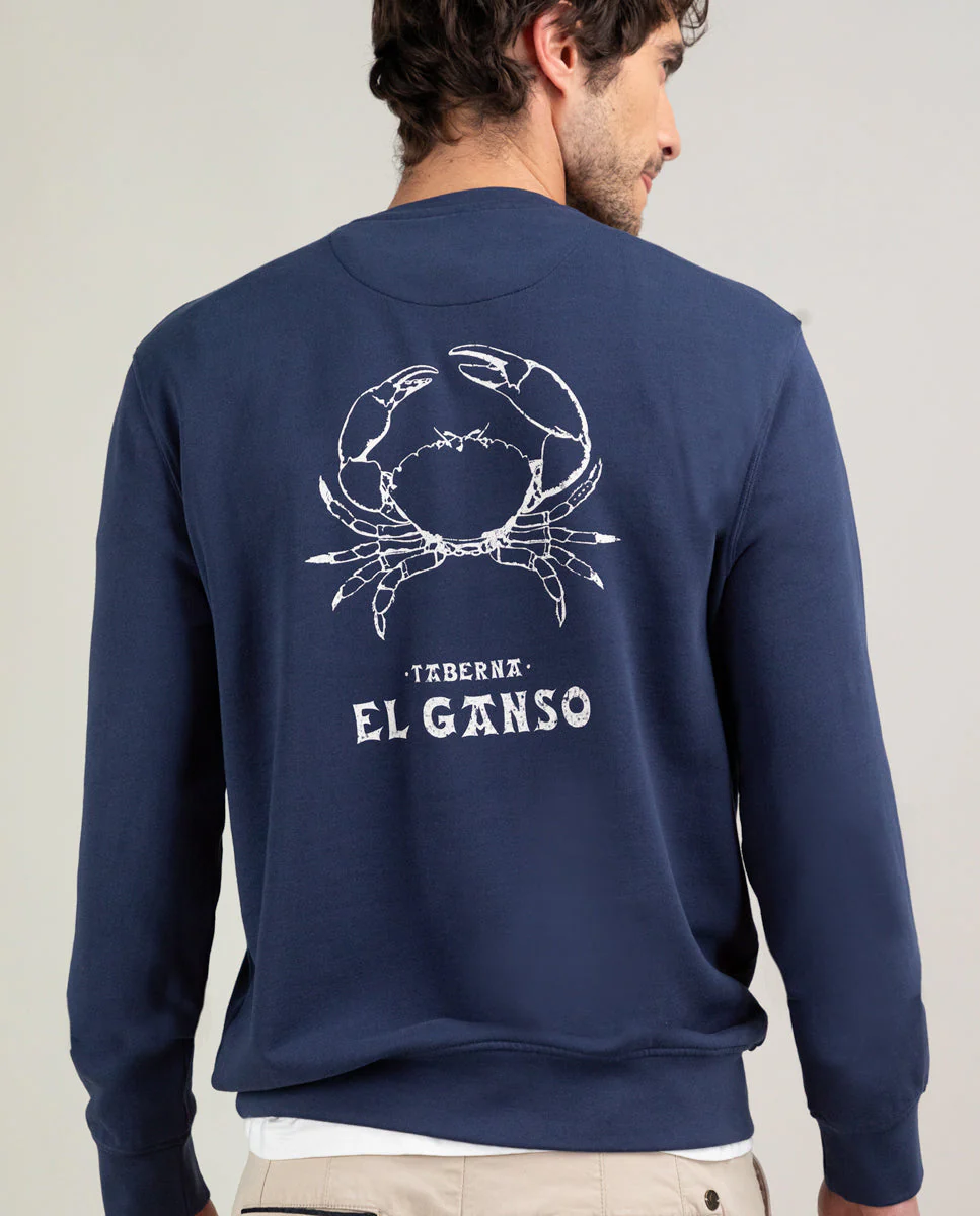 Sudadera de hombre colección Taberna. Confeccionada en algodón. Tejido liso con estampado de Cangrejo en la parte trasera de la sudadera y logototipo en la parte frontal. Puedes encontrarla en tres colores. Edición limitada.