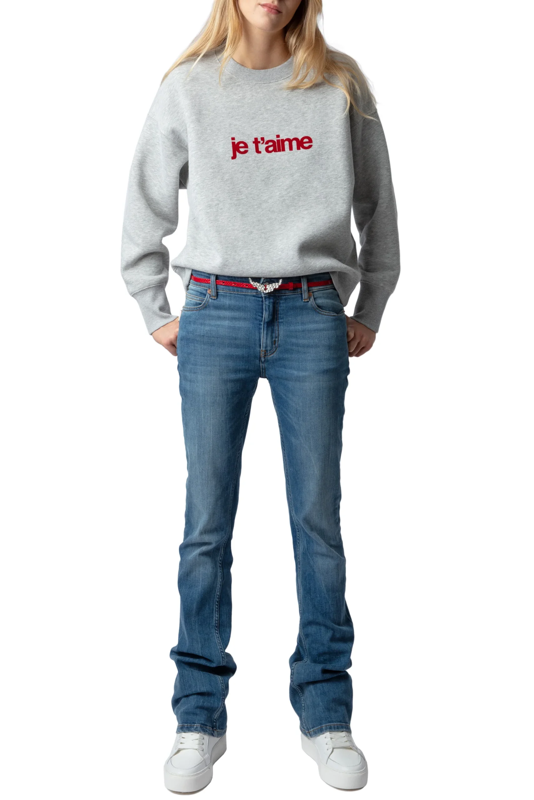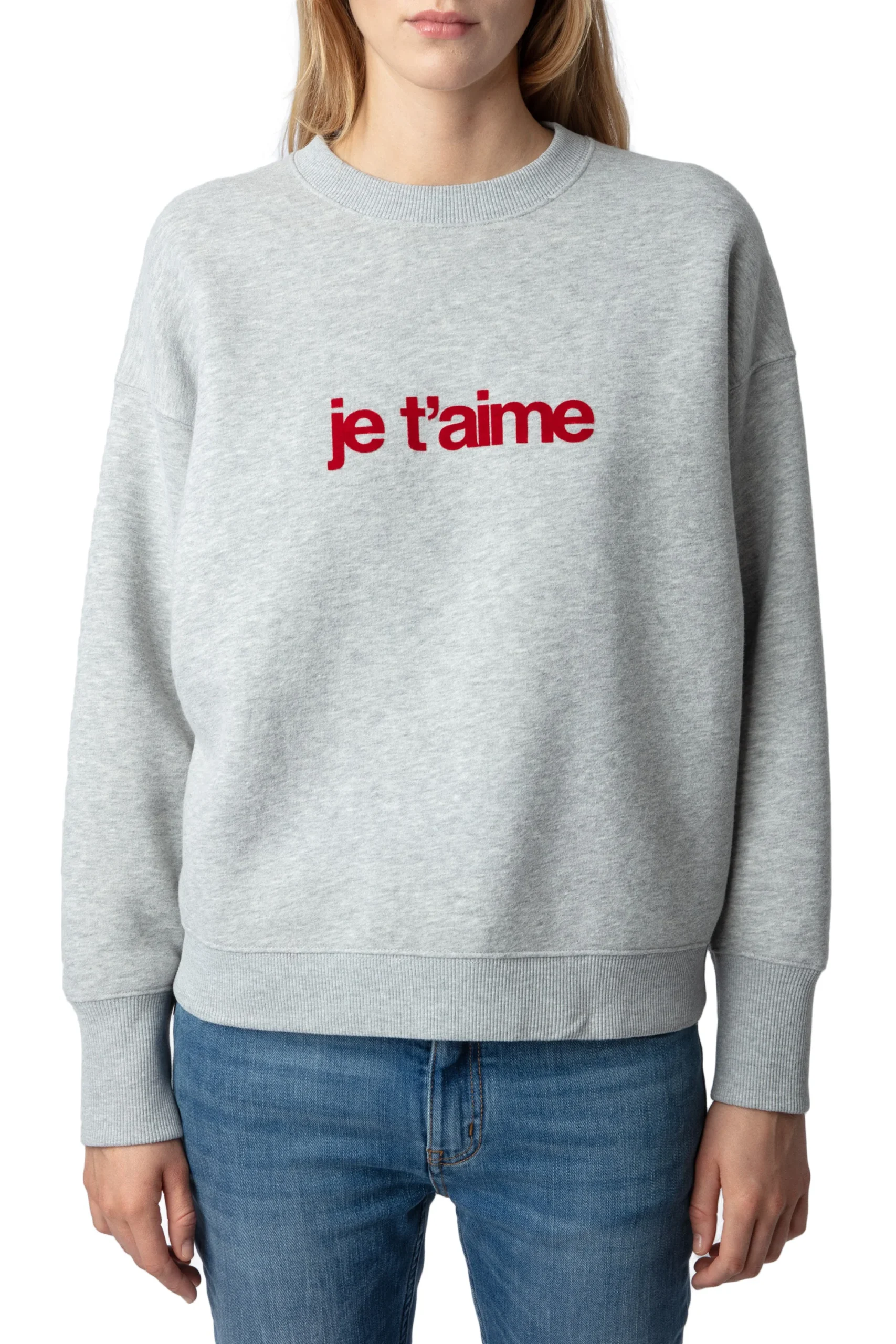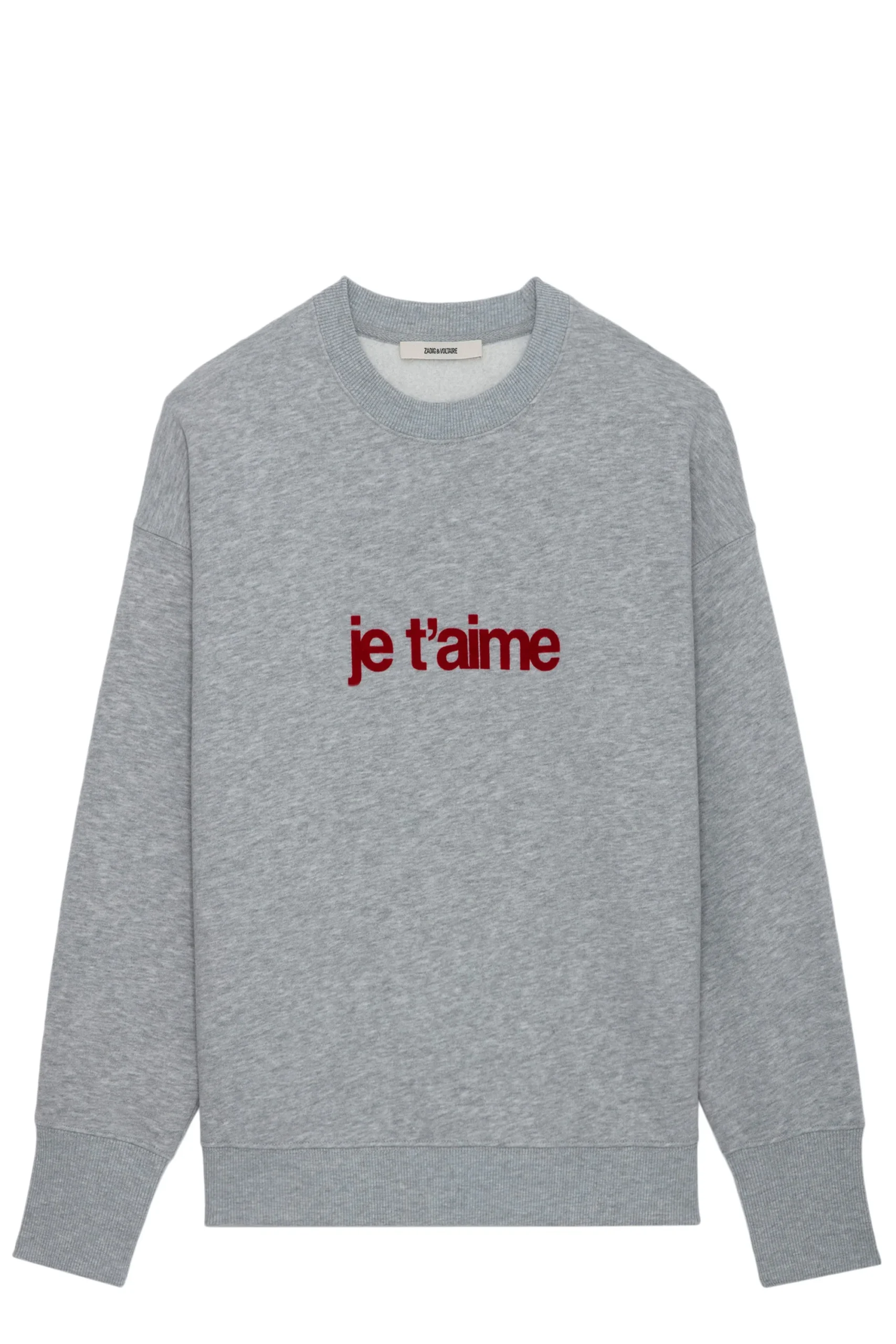 Sudadera Oscar Pmo Je T’Aime Floc Gris Chino Claro marca Zadig & Voltaire. COMPOSICIÓN. Material principal: Algodón. Consultar instrucciones de lavado en etiqueta interna.