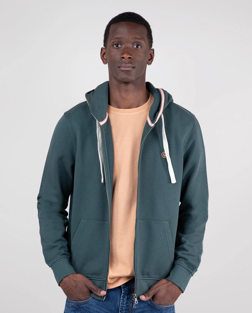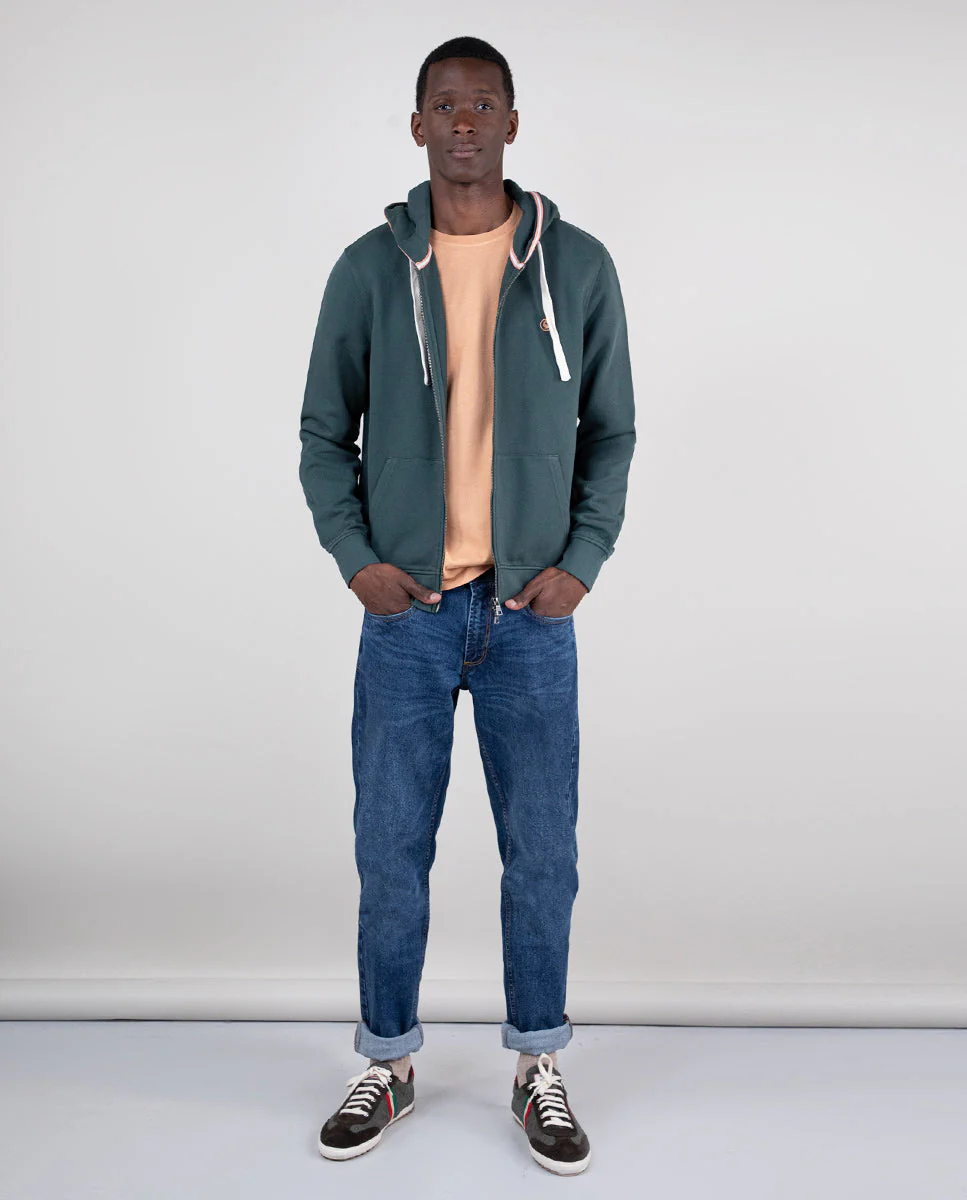 Sudadera lisa de hombre confeccionada en felpa 100% algodón Better Cotton, tintada en prenda envejecida para darle un acabado lavado. Tiene un corte Regular Fit, cuello redondo y manga larga. Lleva logo bordado en el pecho.