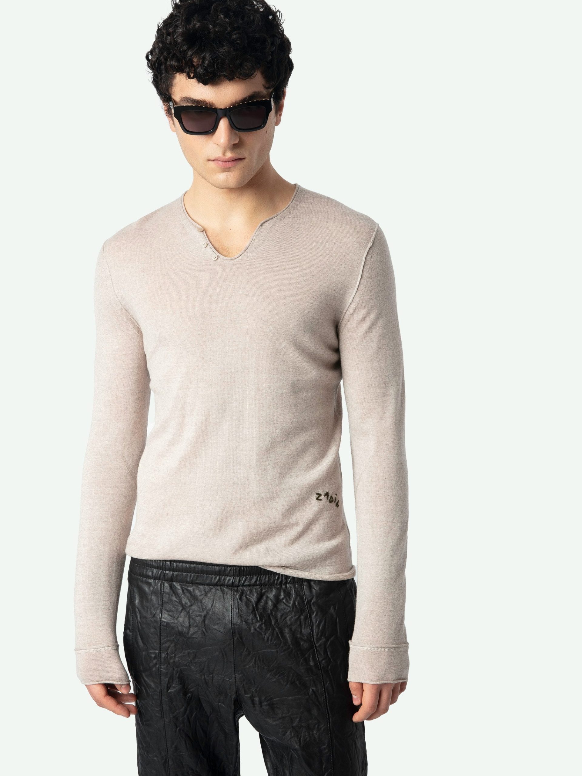 Jersey tunecino de manga larga con bordado en el cuello.