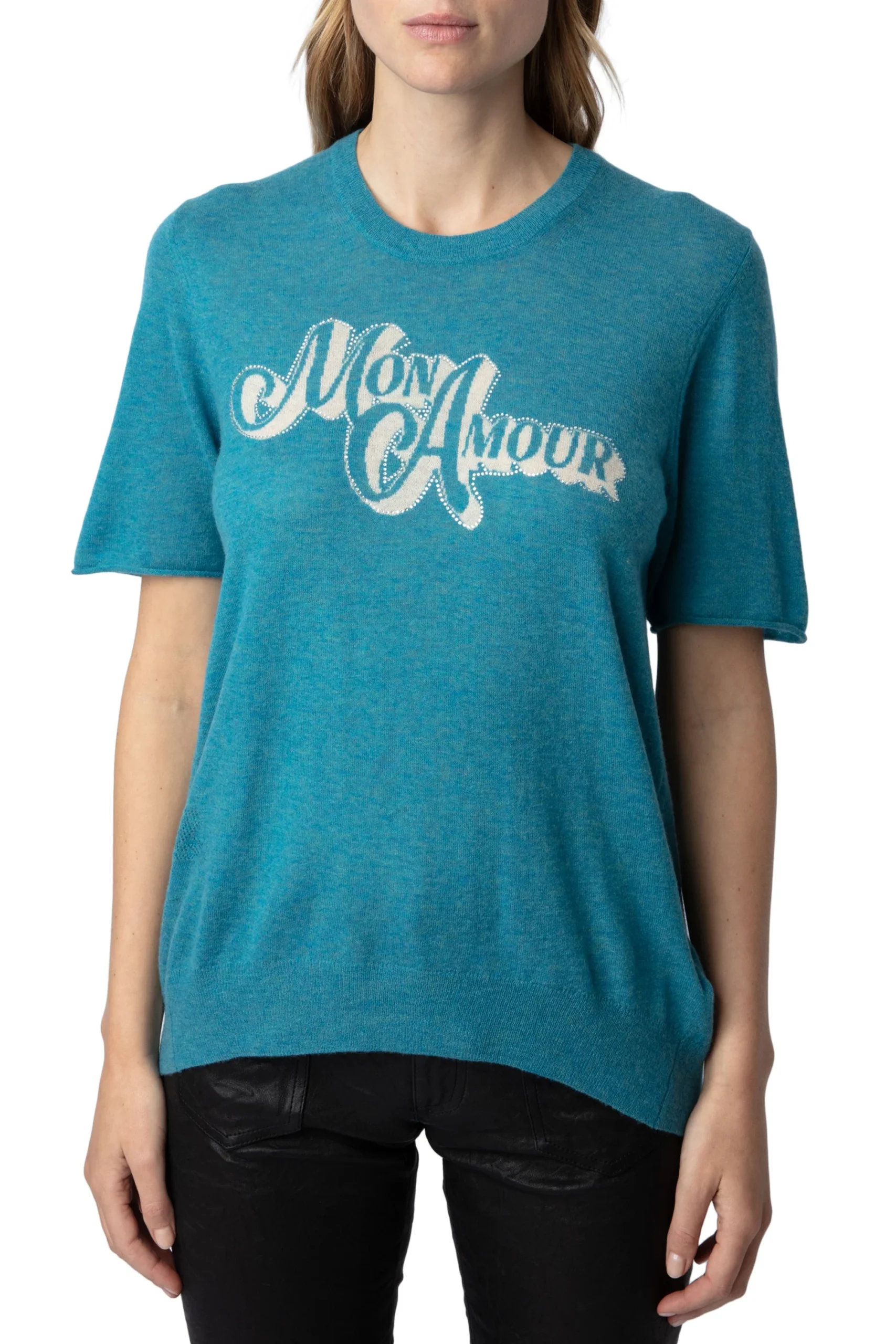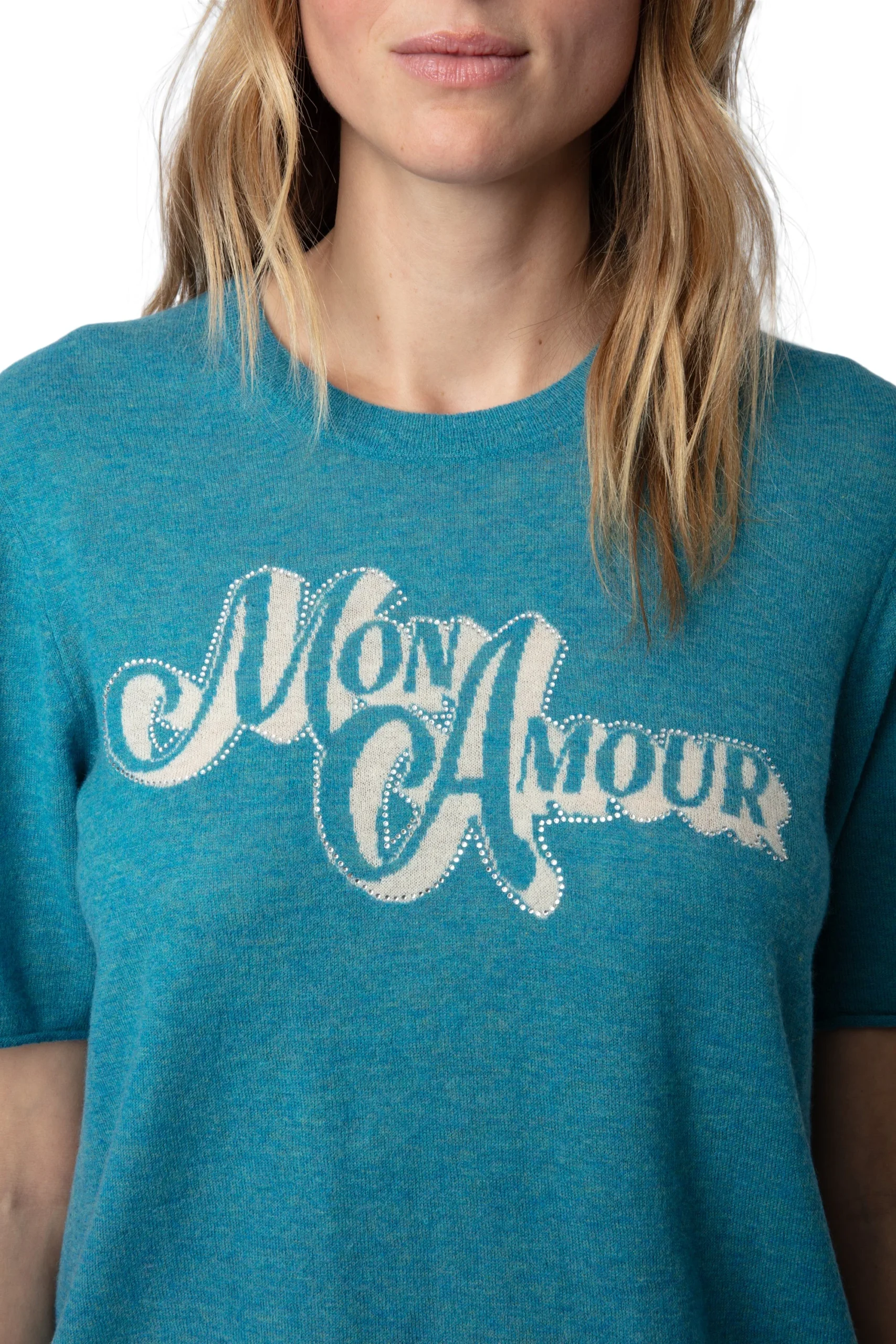 Sweater Ida Mon Amour Strass Aqua marca Zadig & Voltaire. COMPOSICIÓN. Material principal: Cashmere. Consultar instrucciones de lavado en etiqueta interna.