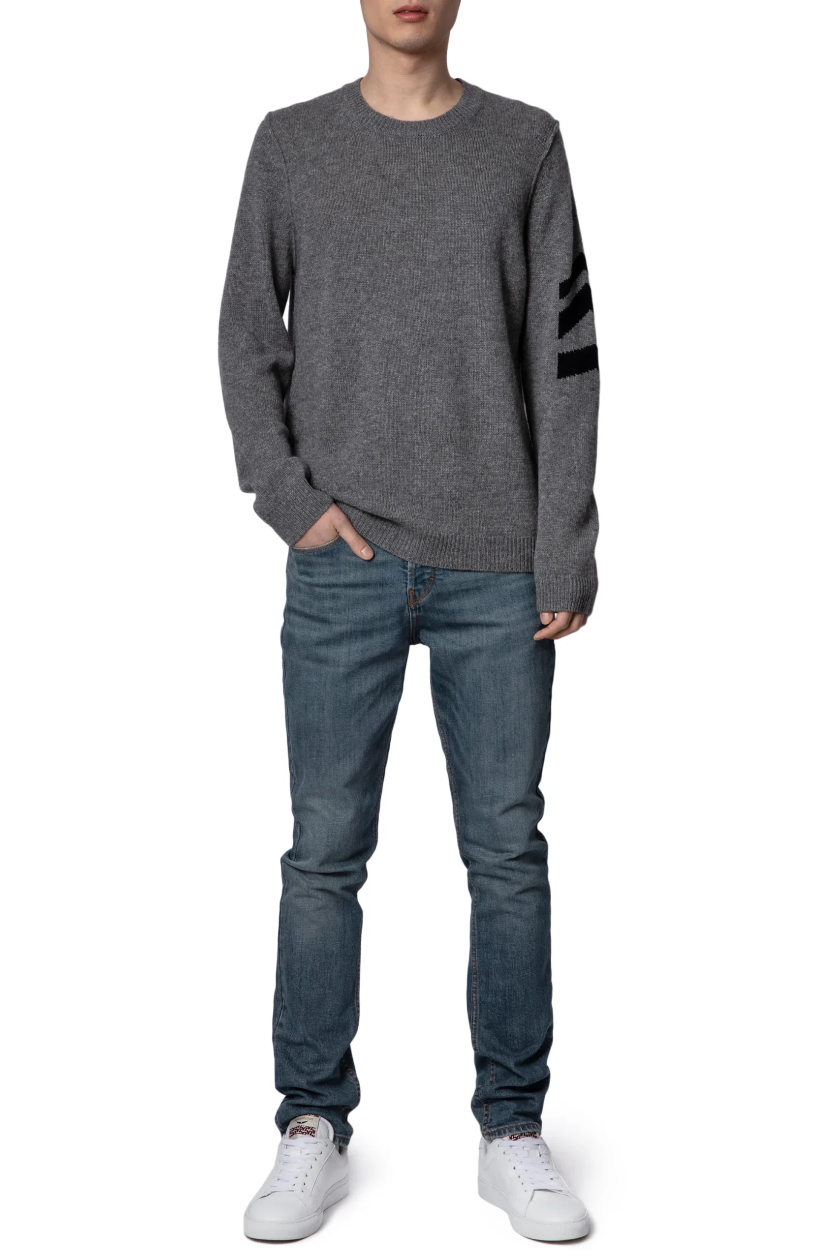Sweater Kennedy C Arrow Gris Chino marca Zadig & Voltaire. COMPOSICIÓN. Material principal: Cashmere. Consultar instrucciones de lavado en etiqueta interna.