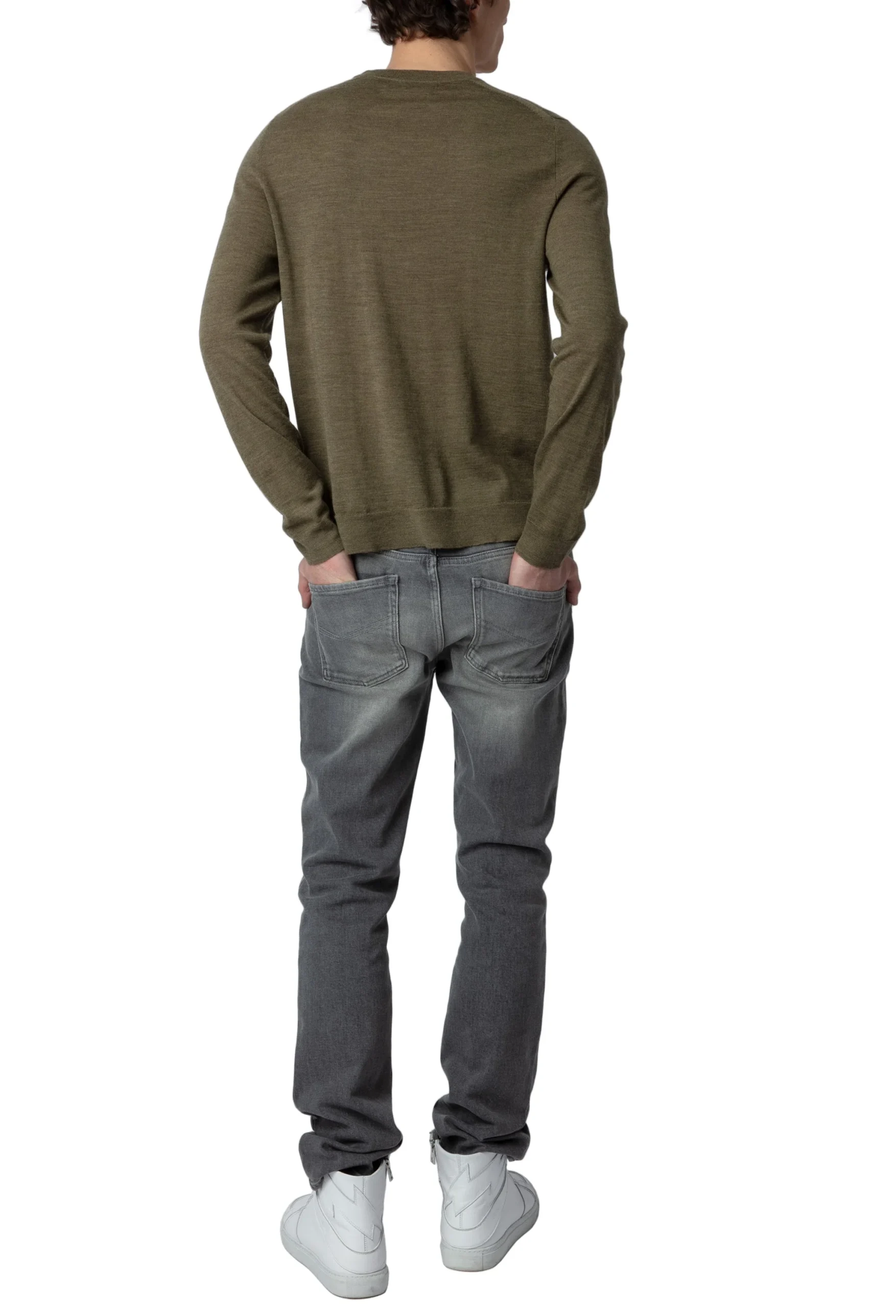 Sweater Kennedy We No Heart Khaki marca Zadig & Voltaire. COMPOSICIÓN. Material principal: Lana Merino. CONSULTAR INSTRUCCIONES DE CUIDADOS EN ETIQUETA INTERNA.