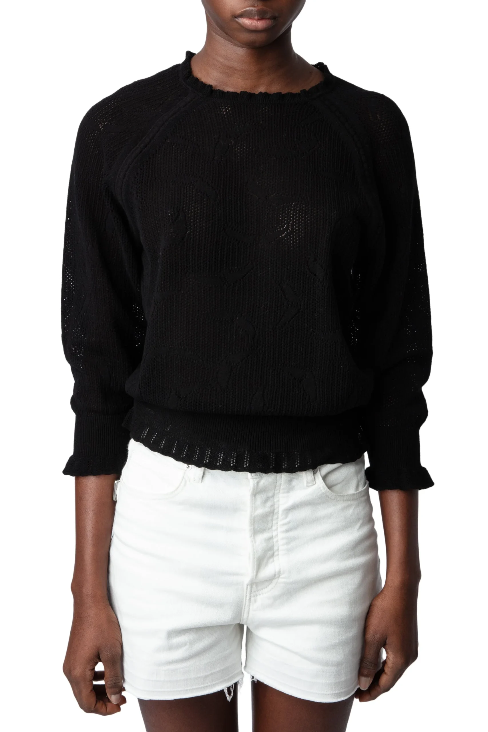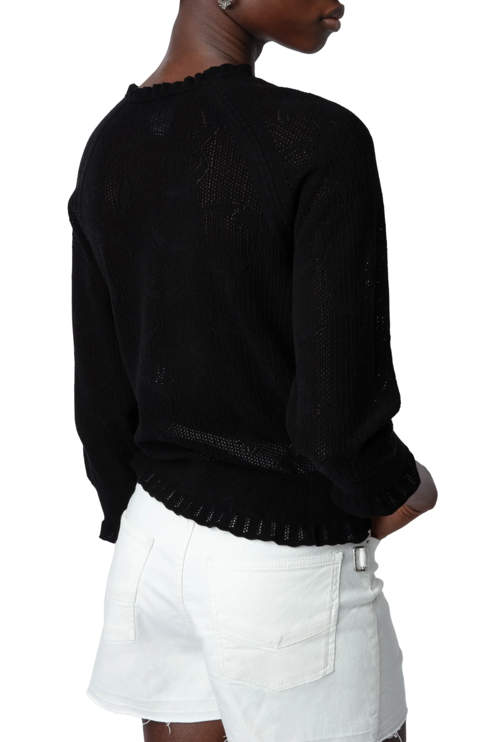 Sweater Moria Co Dentelle Negro marca Zadig & Voltaire. COMPOSICIÓN. Material principal: Algodón. Consultar instrucciones de lavado en etiqueta interna.