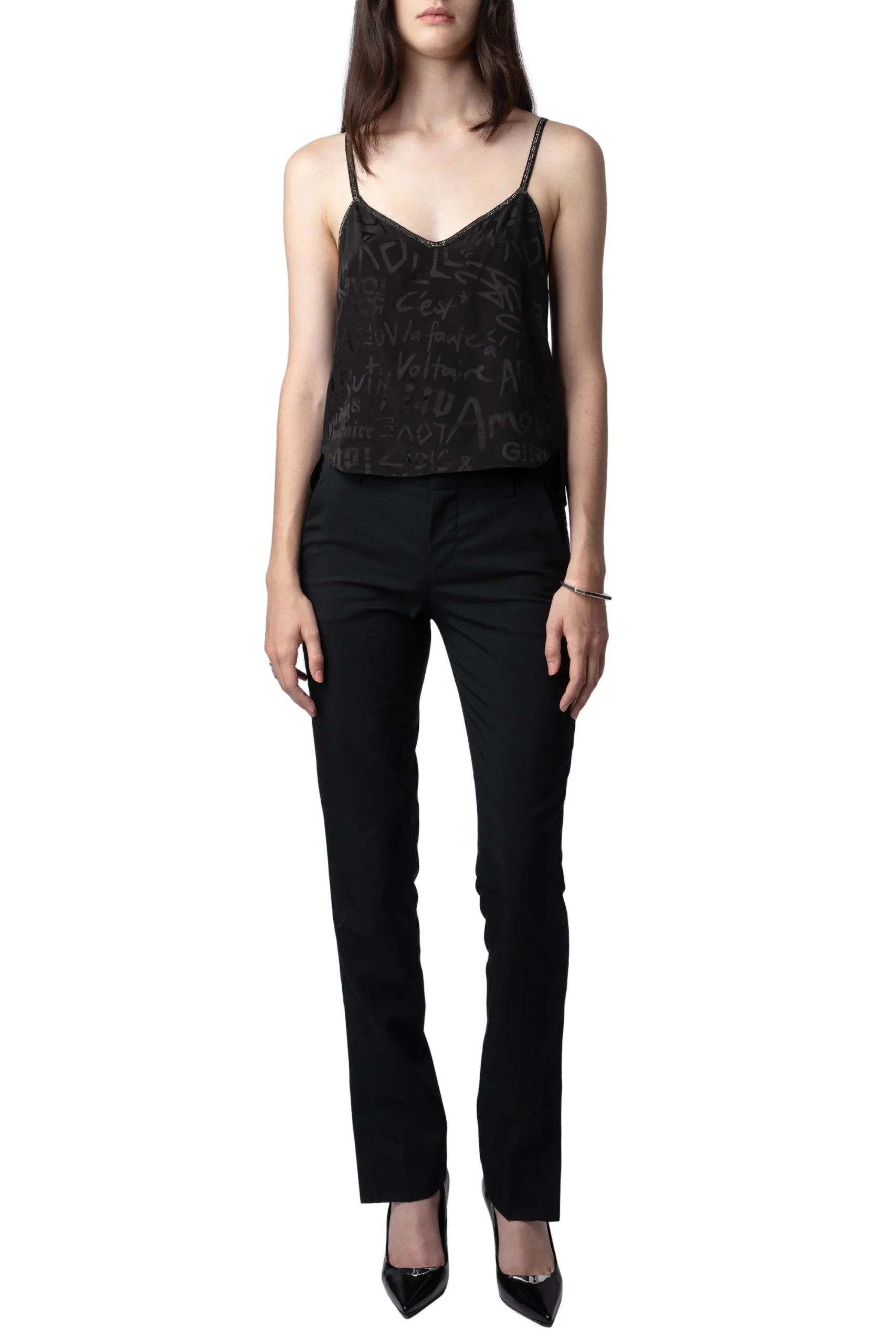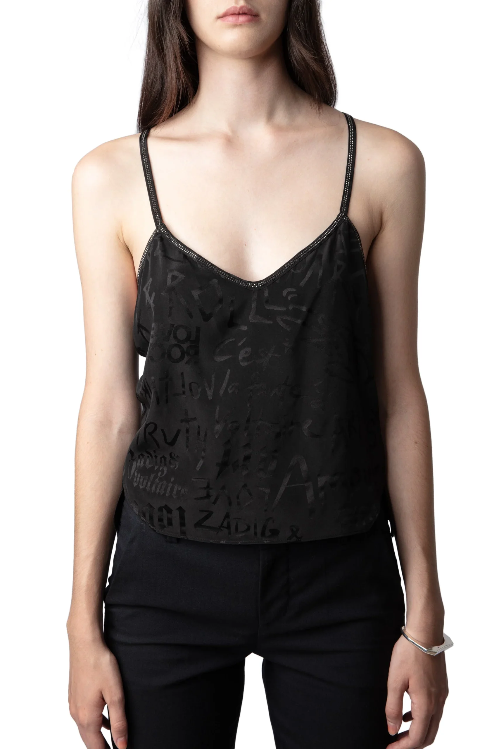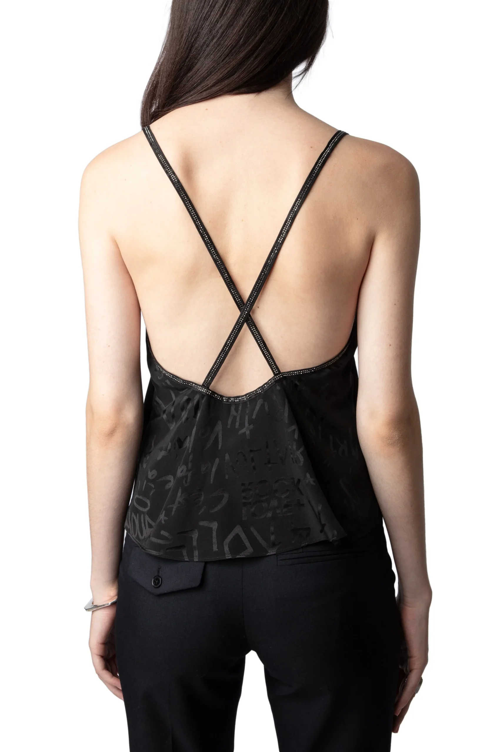 Top Callo Manifesto Strass Negro, marca Zadig & Voltaire. COMPOSICIÓN Y CUIDADOS: Consultar etiqueta interna.