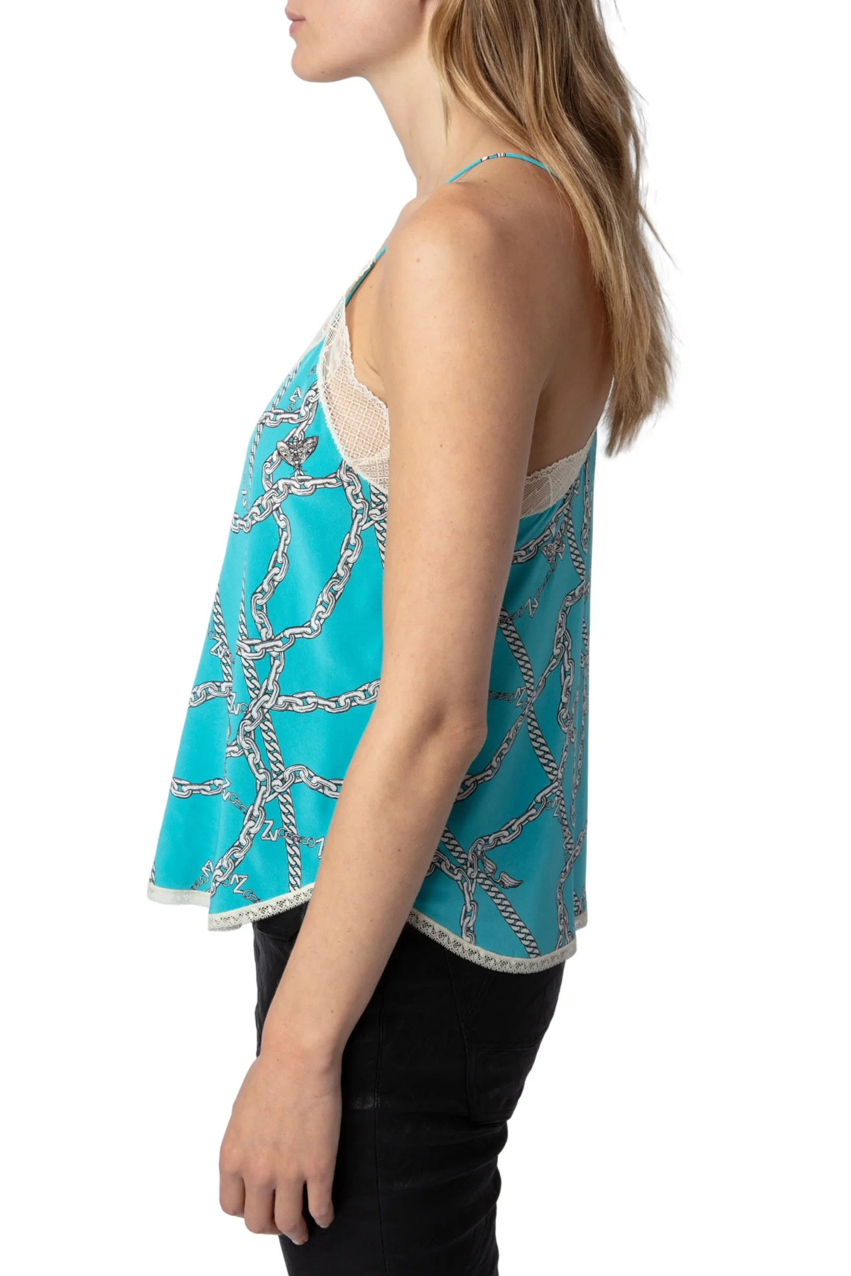 Top Christy Cdc Chaines Aqua marca Zadig & Voltaire. COMPOSICIÓN. Material principal: Seda. Consultar instrucciones de lavado en etiqueta interna.