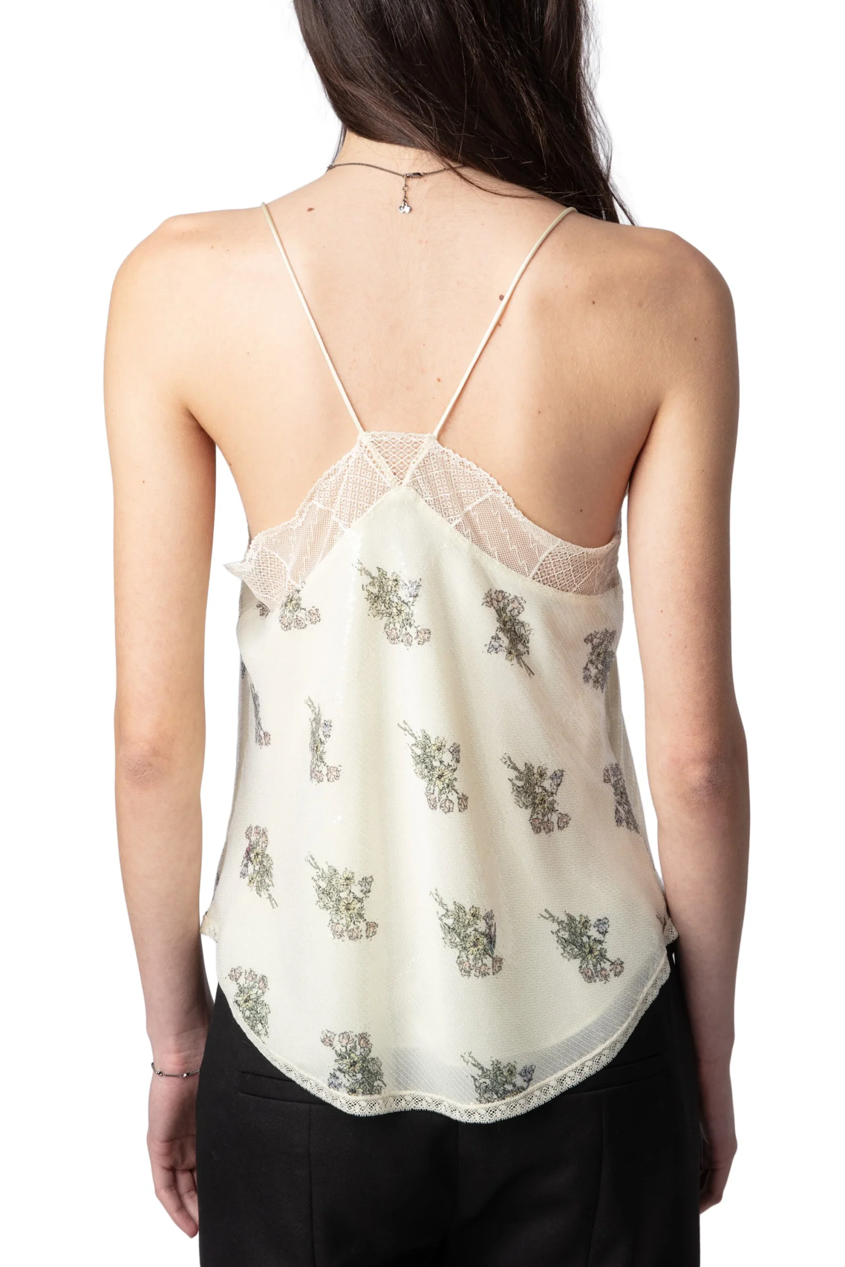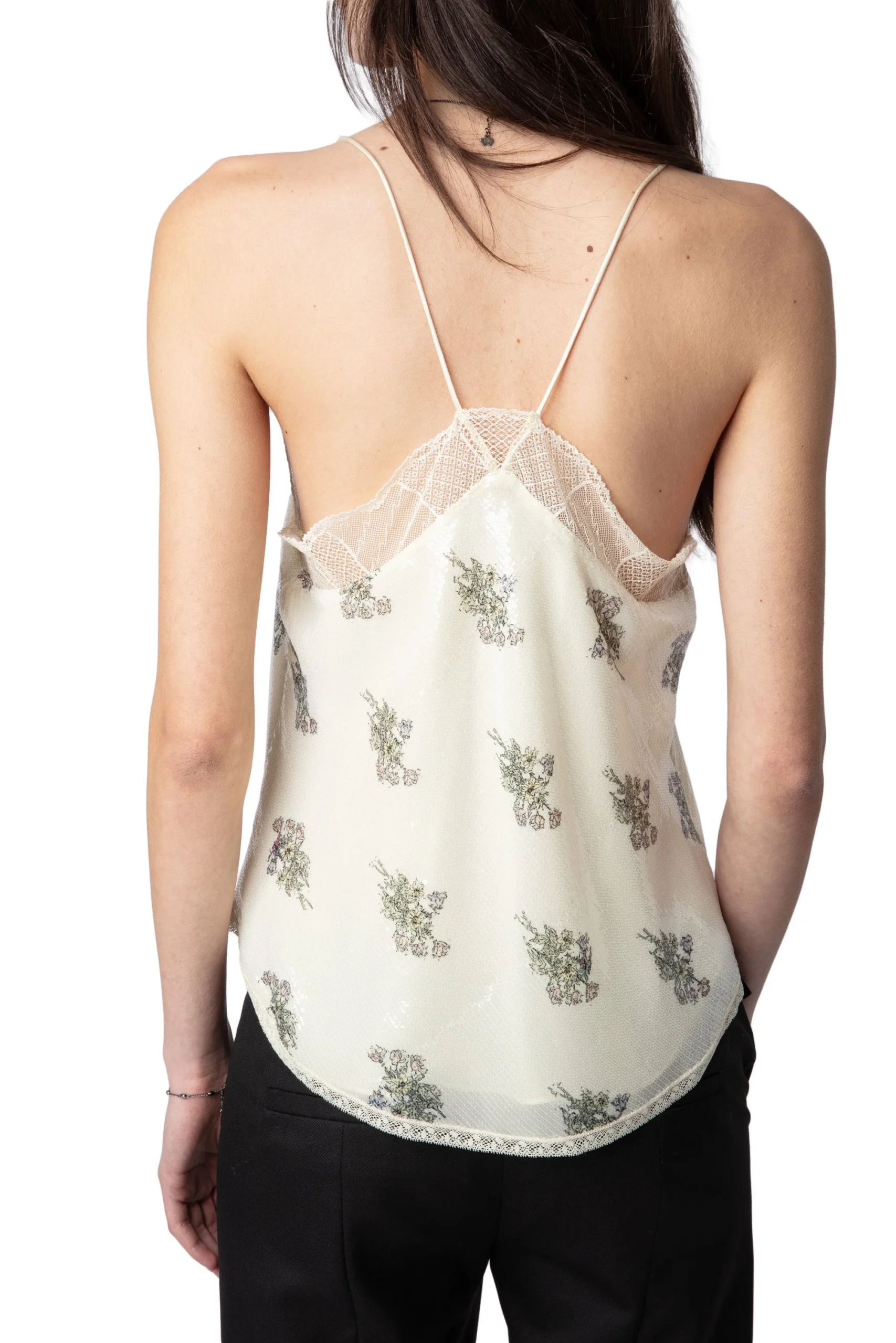 Top Christy Sequins Flowers Masilla marca Zadig & Voltaire. COMPOSICIÓN. Material principal: Polyester. Consultar instrucciones de lavado en etiqueta interna.