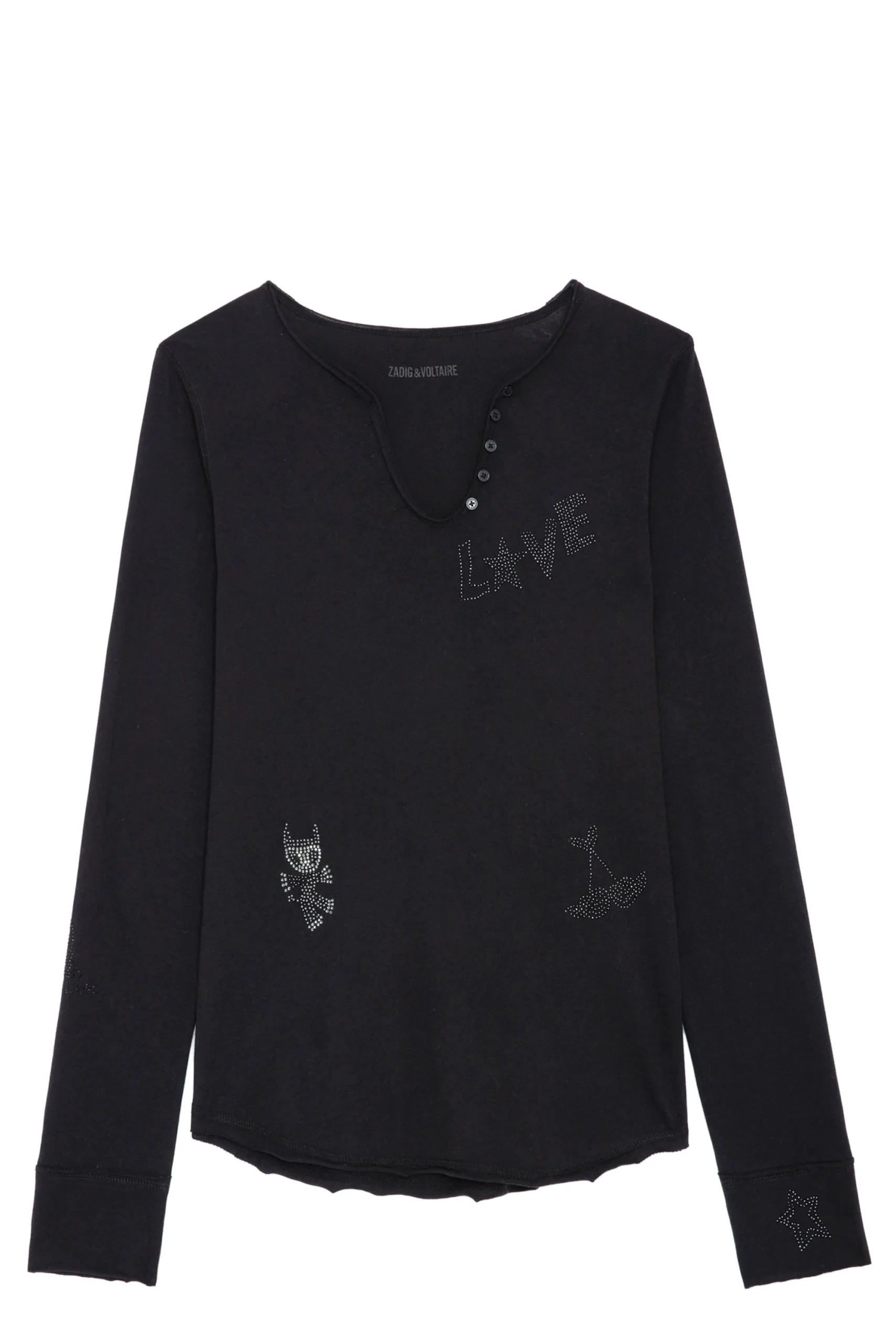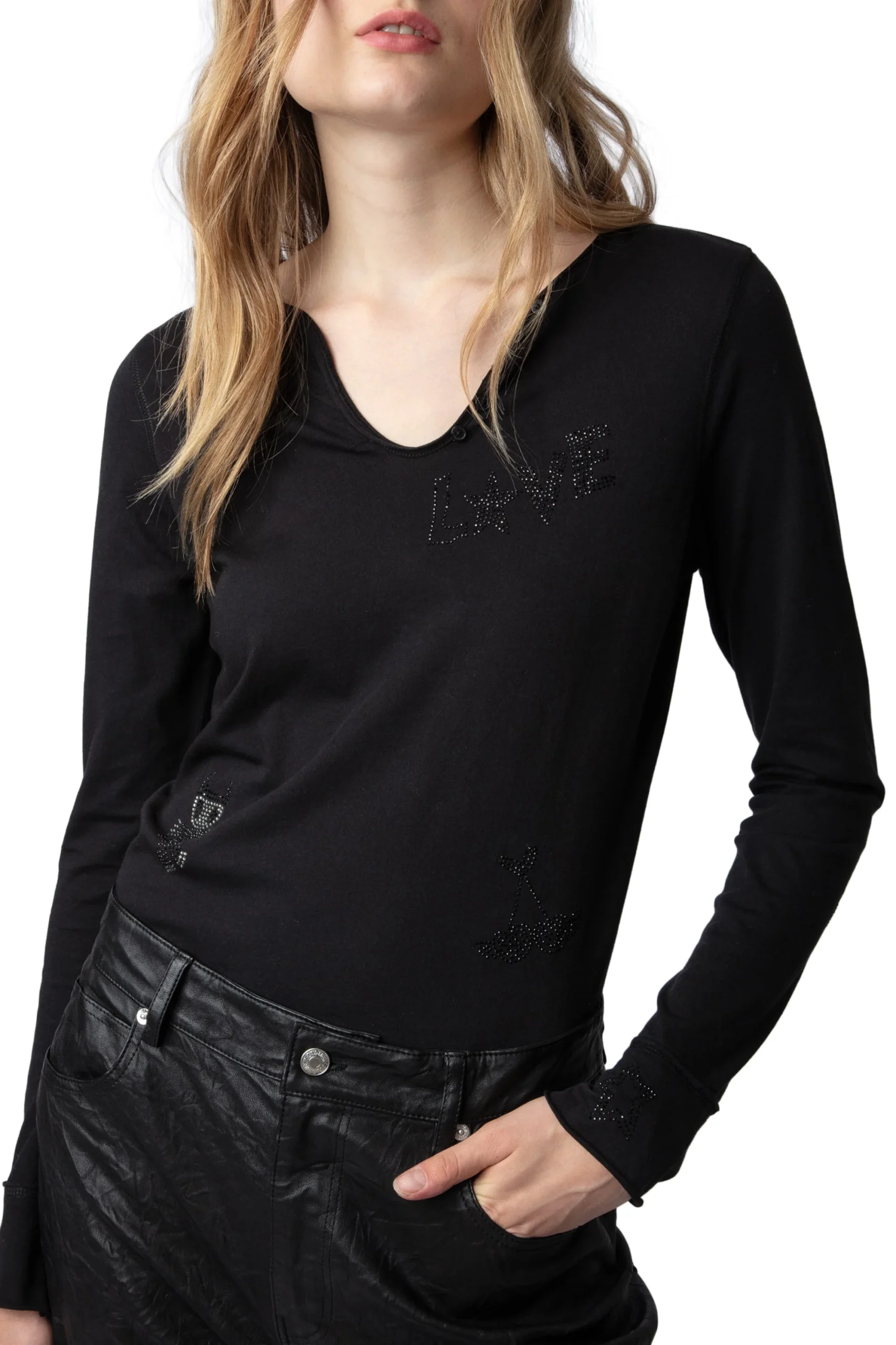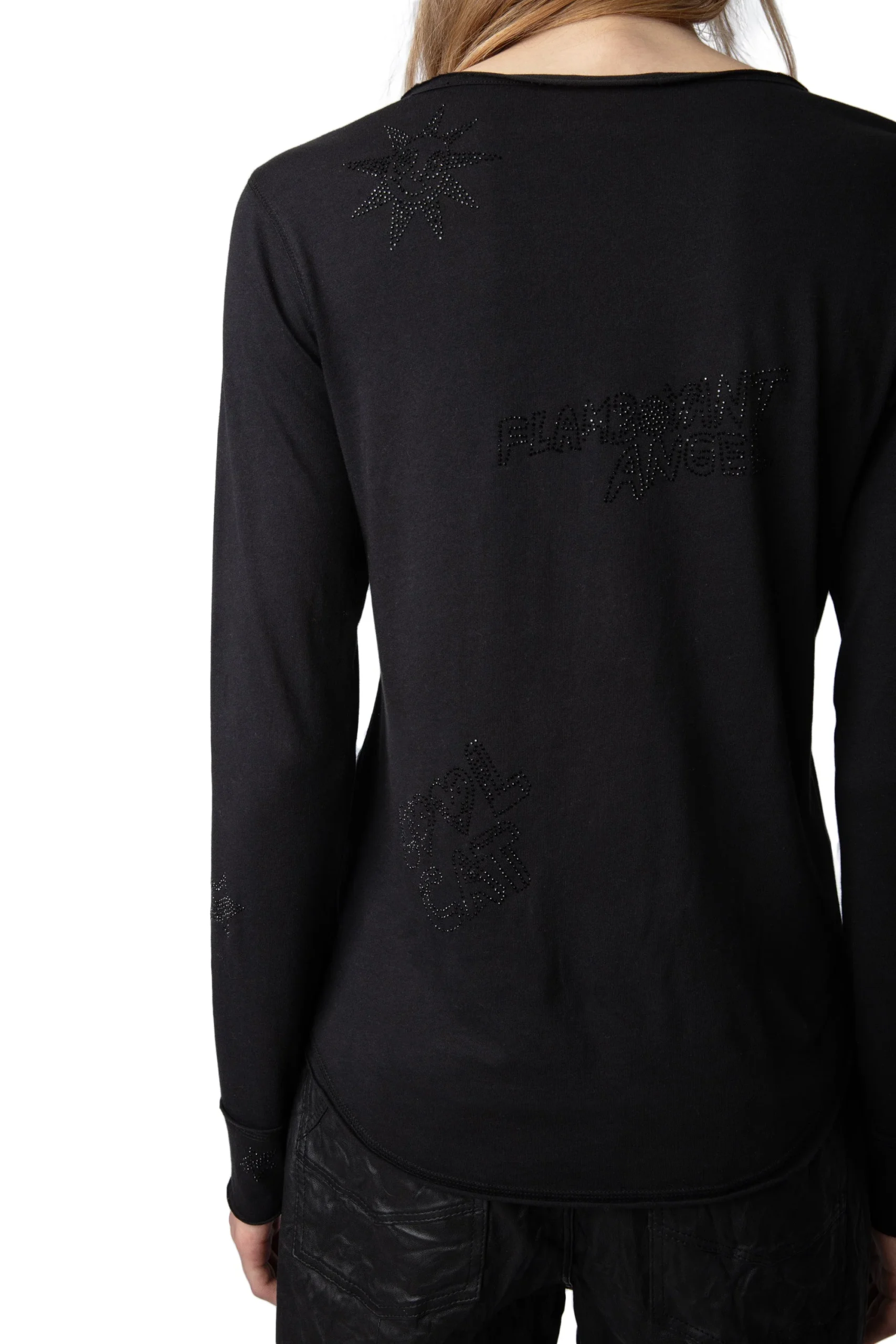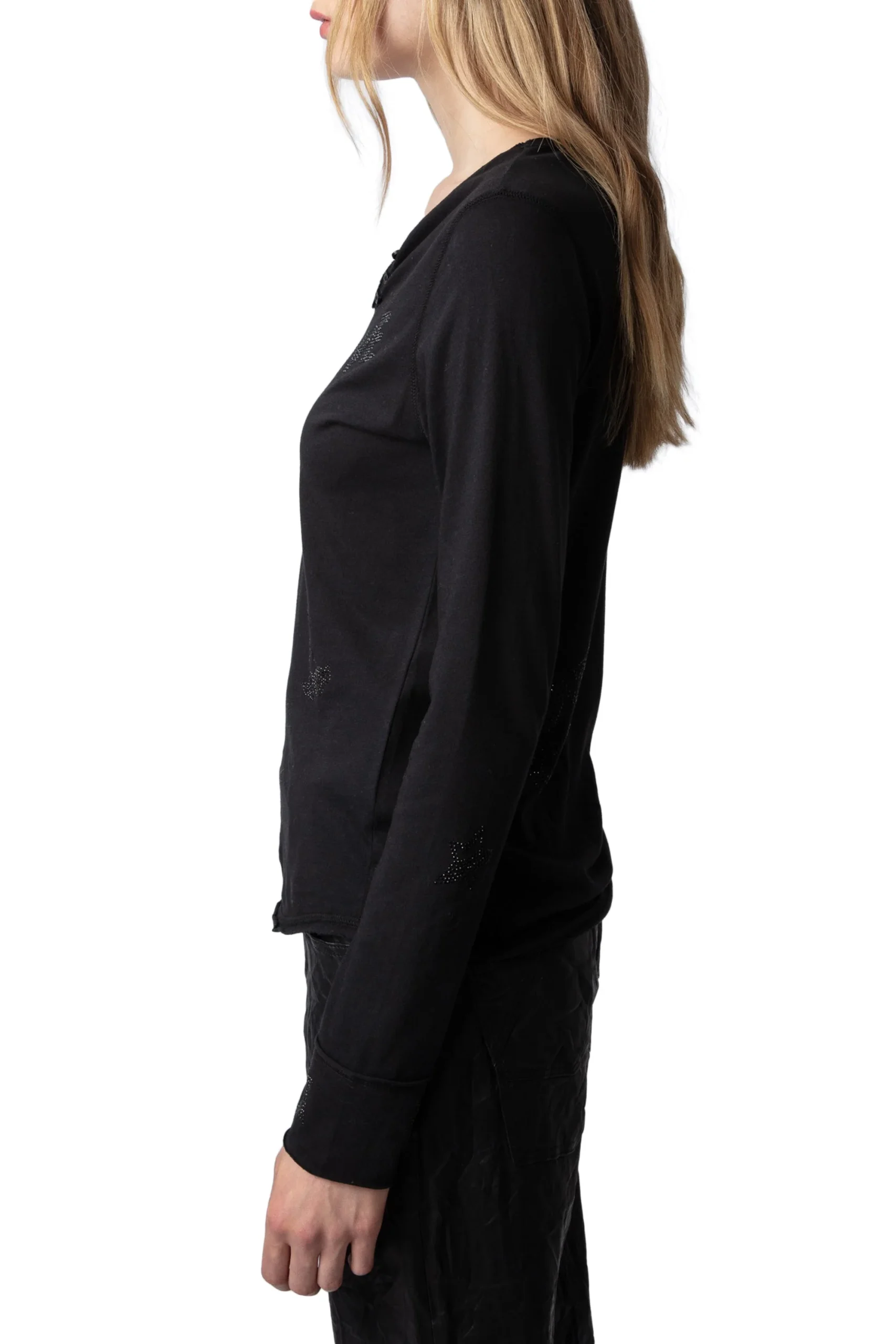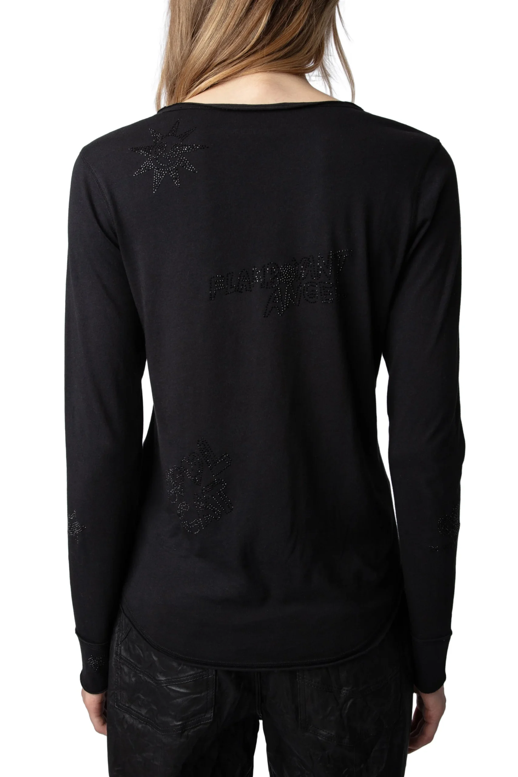 Top Tunisien Multicusto Negro marca Zadig & Voltaire. COMPOSICIÓN. Material principal: Algodón. Consultar instrucciones de lavado en etiqueta interna.