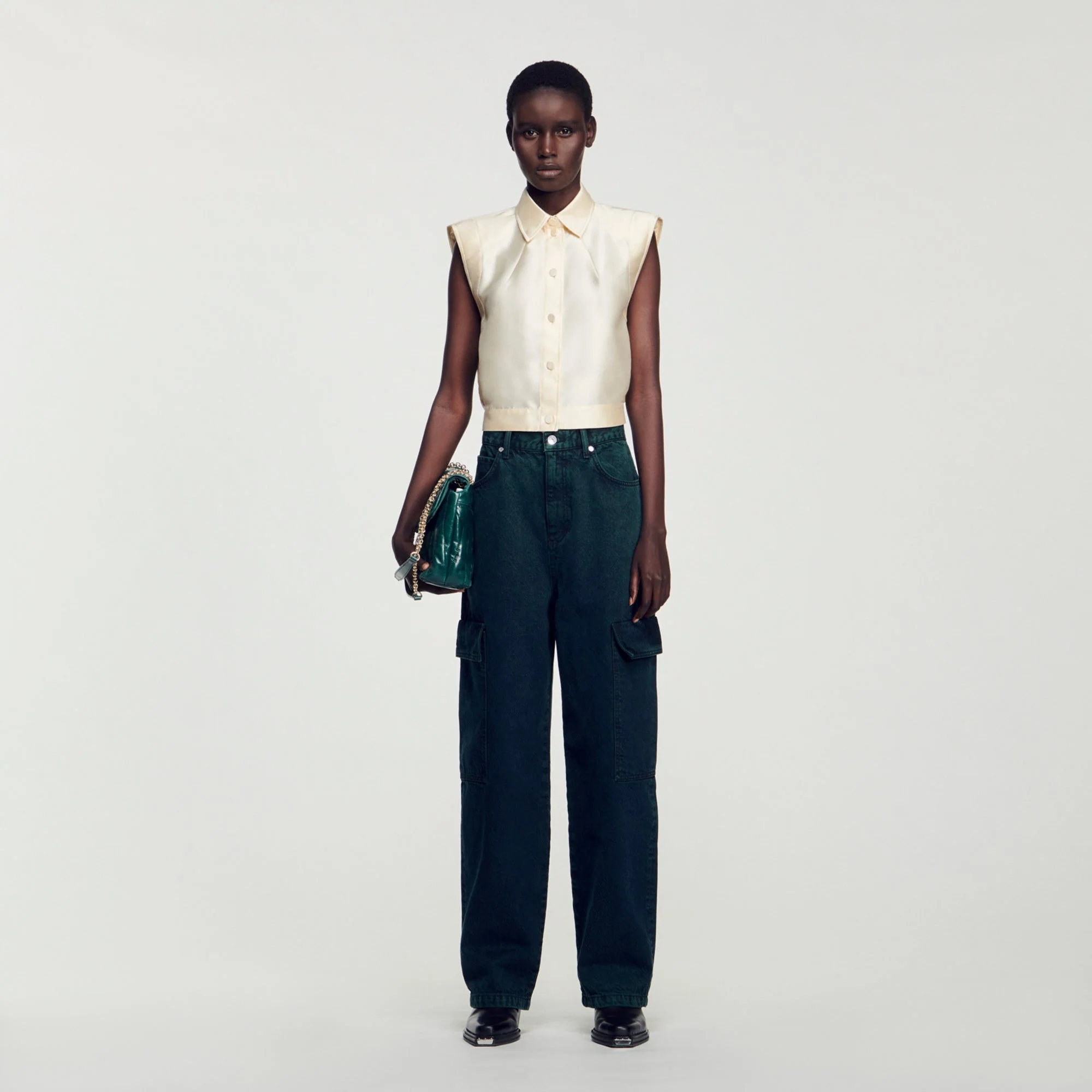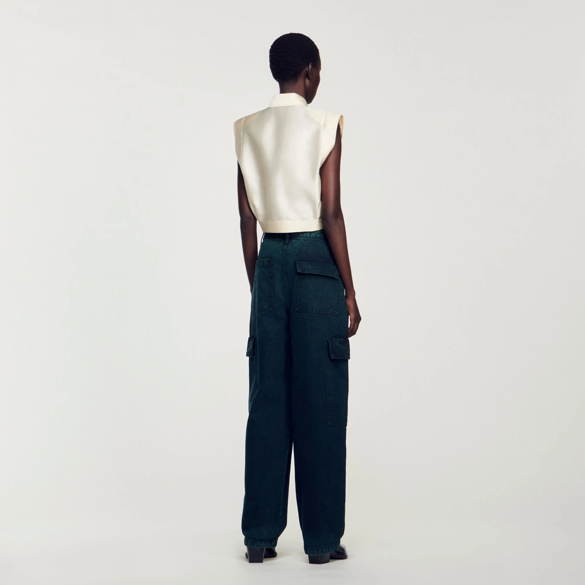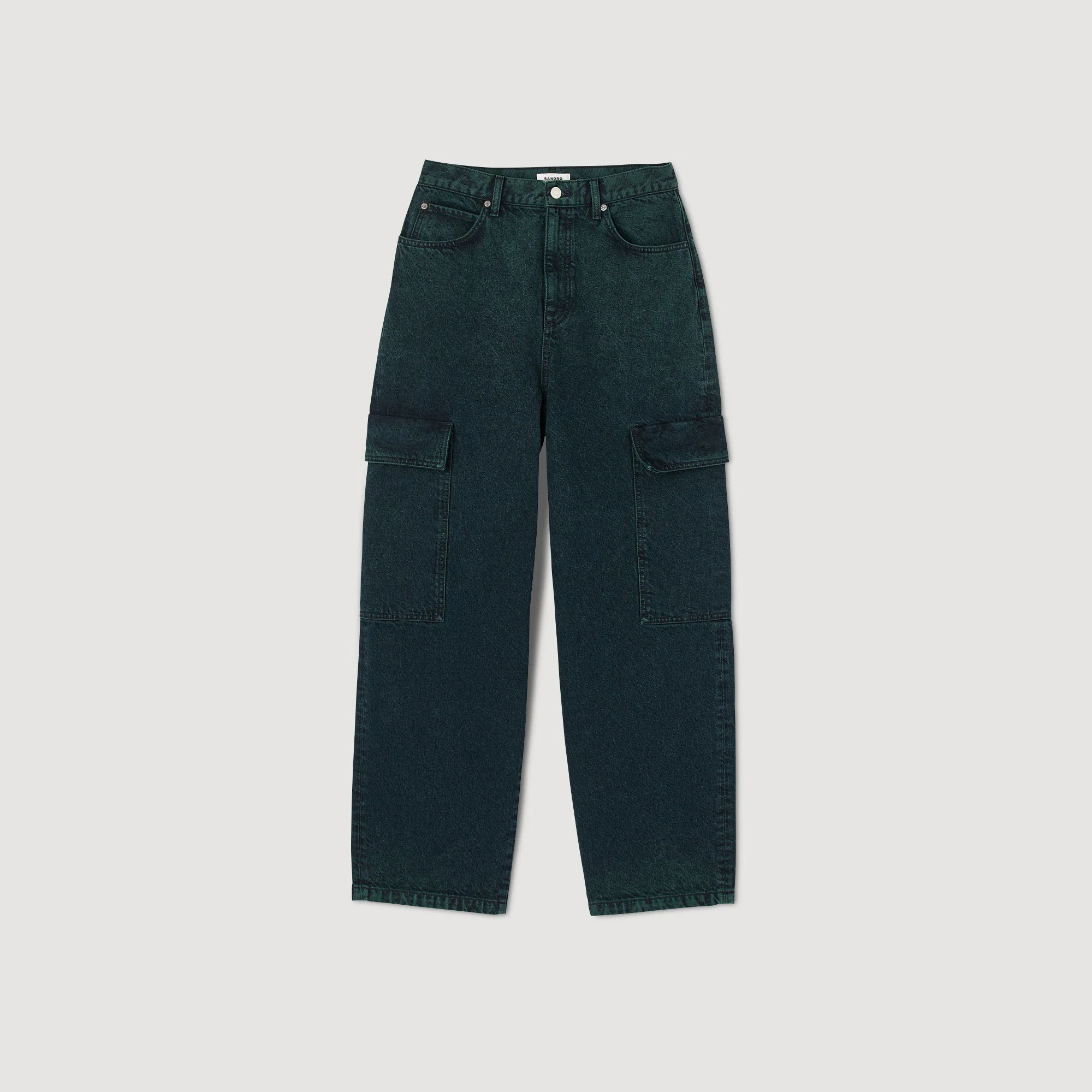Vaquero cargo oversize de denim desteñido, sublimado con grandes bolsillos con solapa en los laterales y la parte trasera.• Vaquero cargo Sandro de mujer