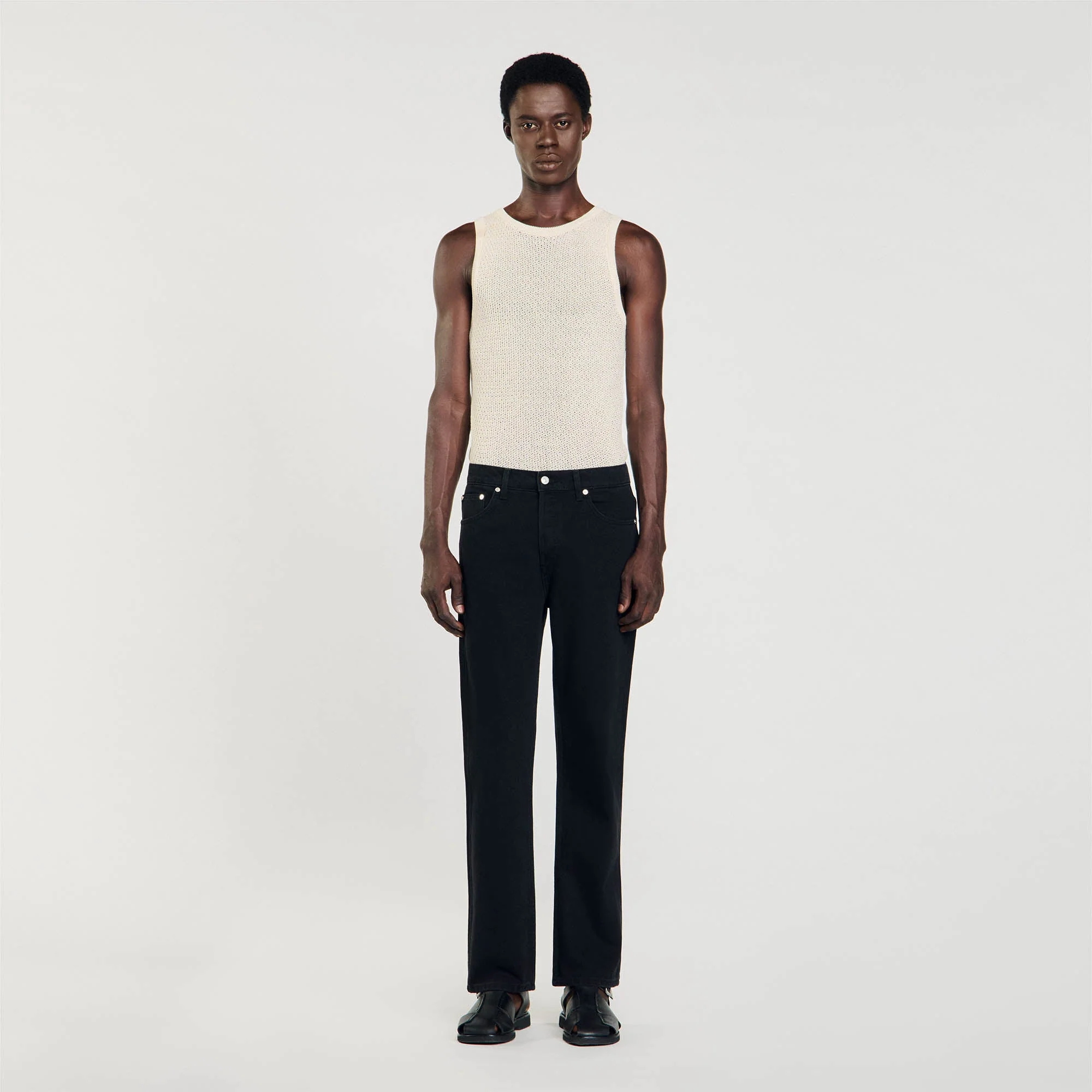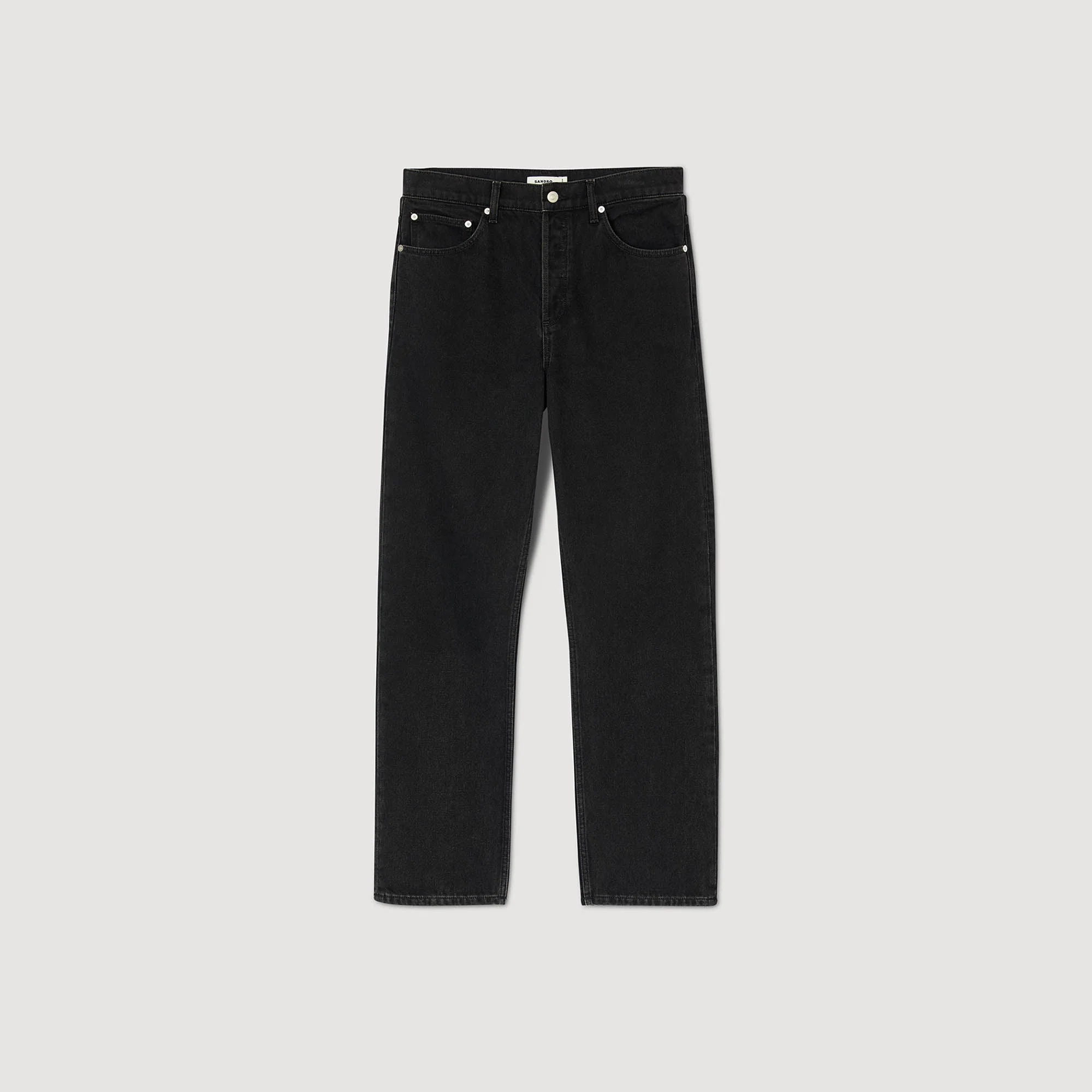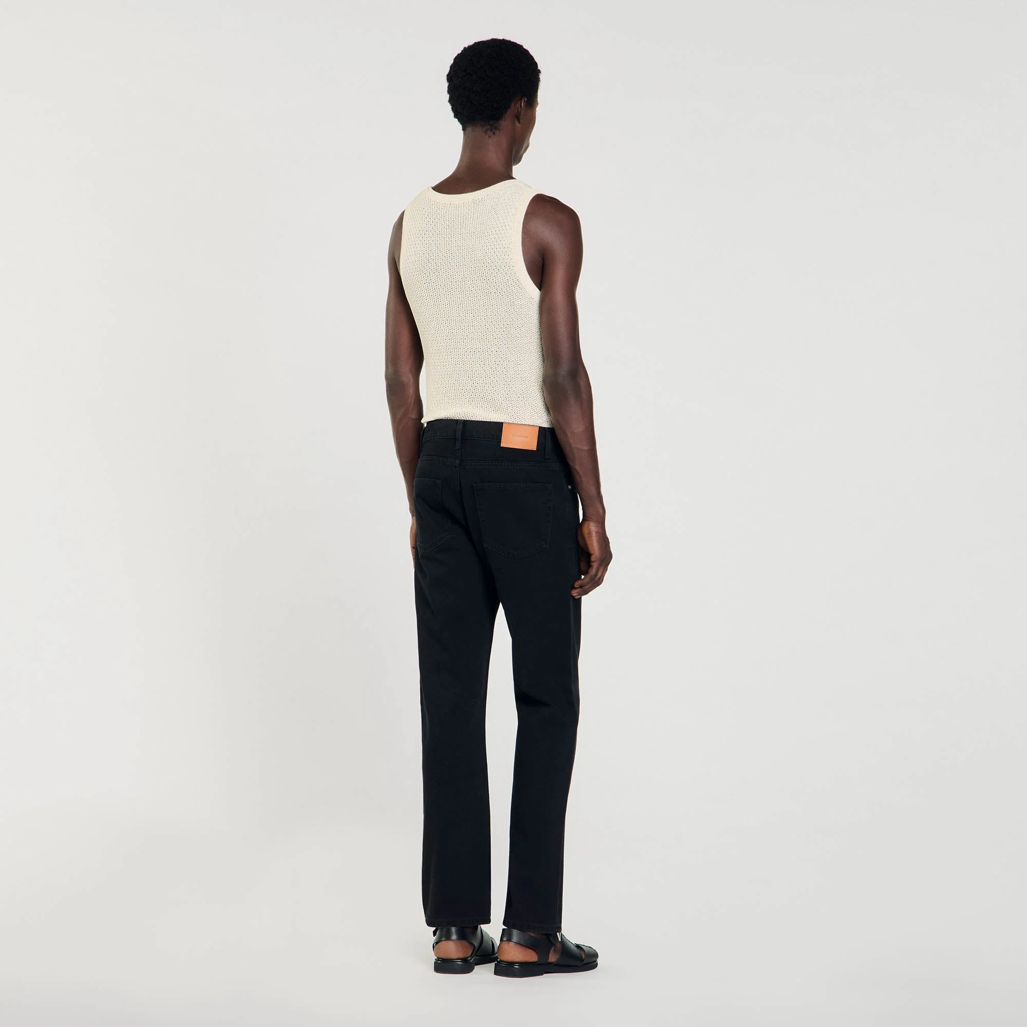 Vaquero recto con cinco bolsillos y un parche de cuero en la parte posterior.