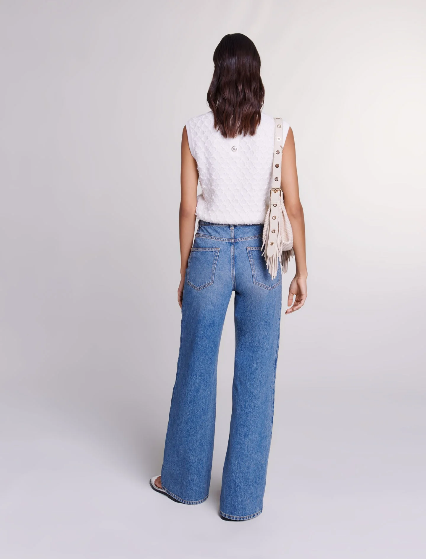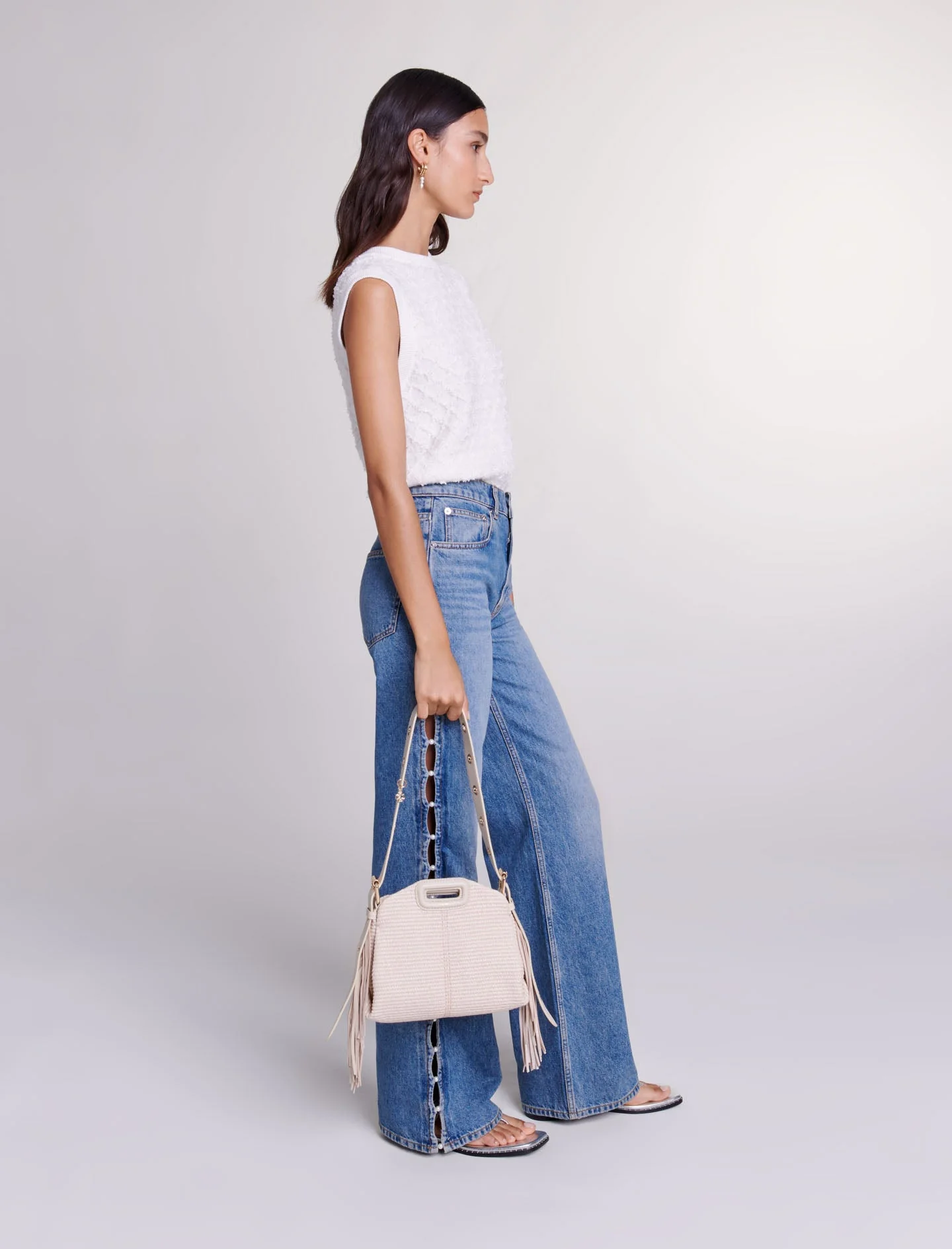 Formas atrevidas, un juego de texturas y detalles femeninos: las piezas imprescindibles se transforman esta temporada para realzar sus conjuntos, tanto de día como de noche.Con un corte recto y ancho, este vaquero da estilo instantáneamente. Con un cierre de cremallera y botón, trabillas para el cinturón y cinco bolsillos, revela aberturas realzadas con perlas a lo largo de la pierna: un detalle atrevido para estructurar su conjunto asertivo.Ref.: MFPJE00528