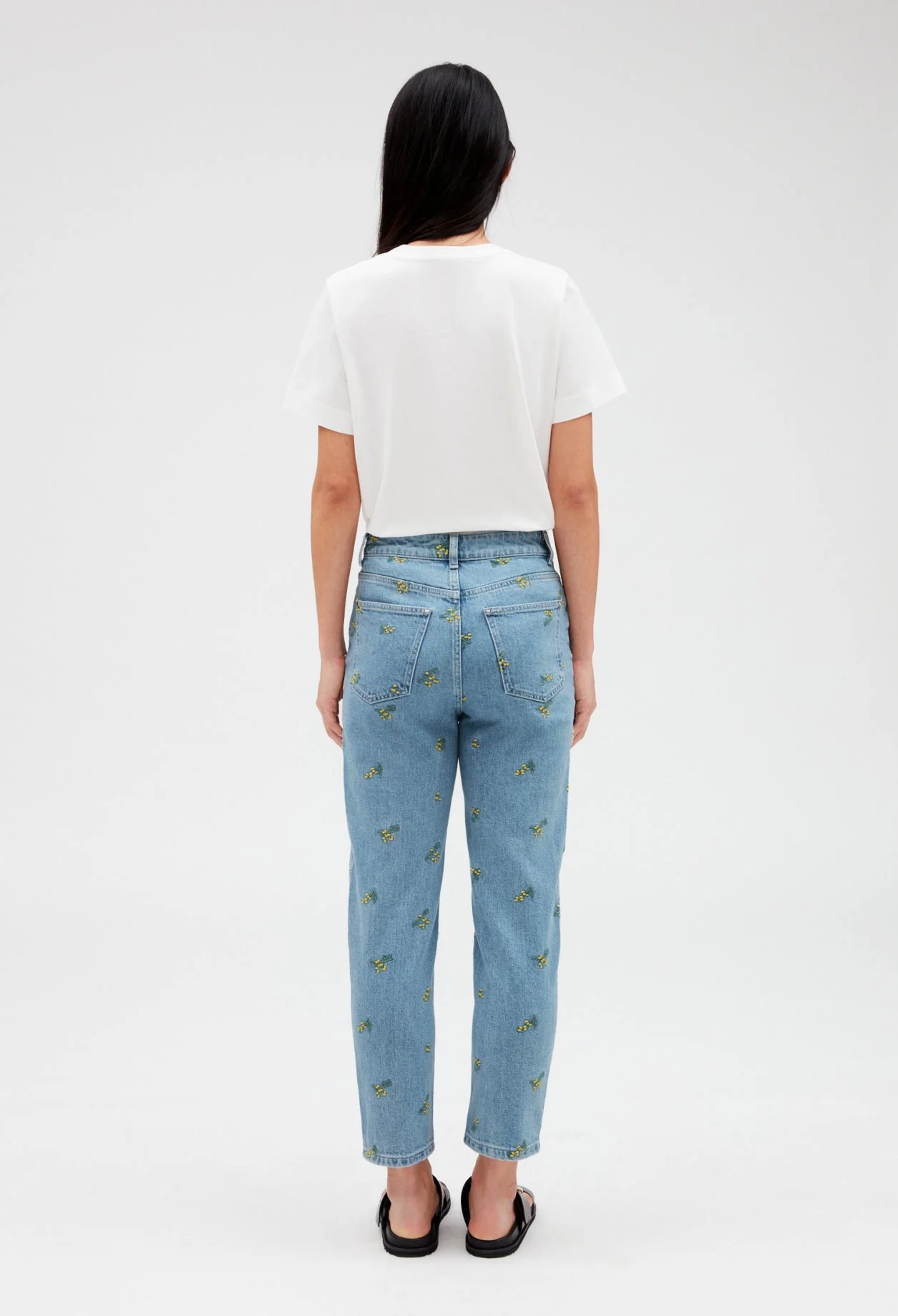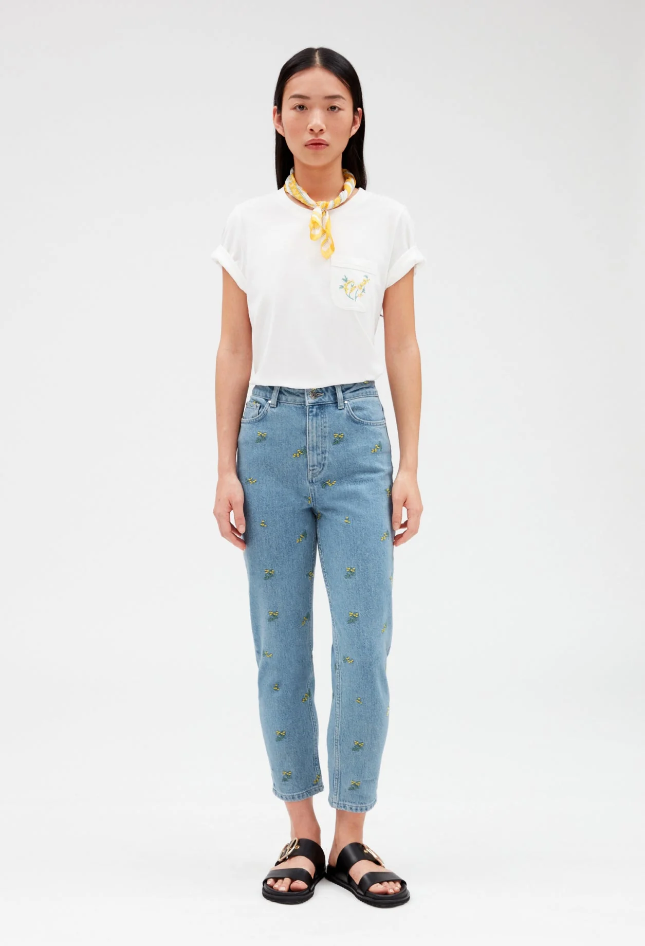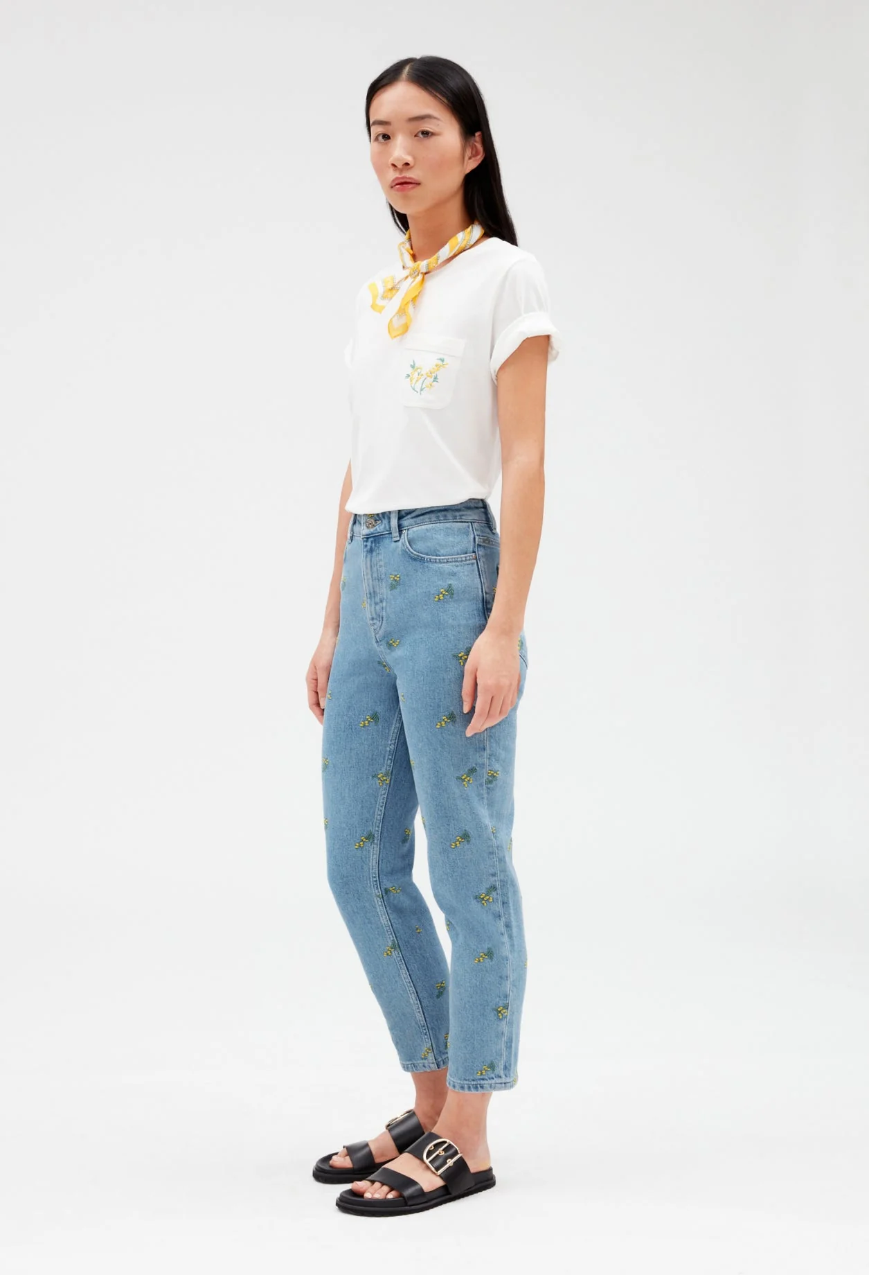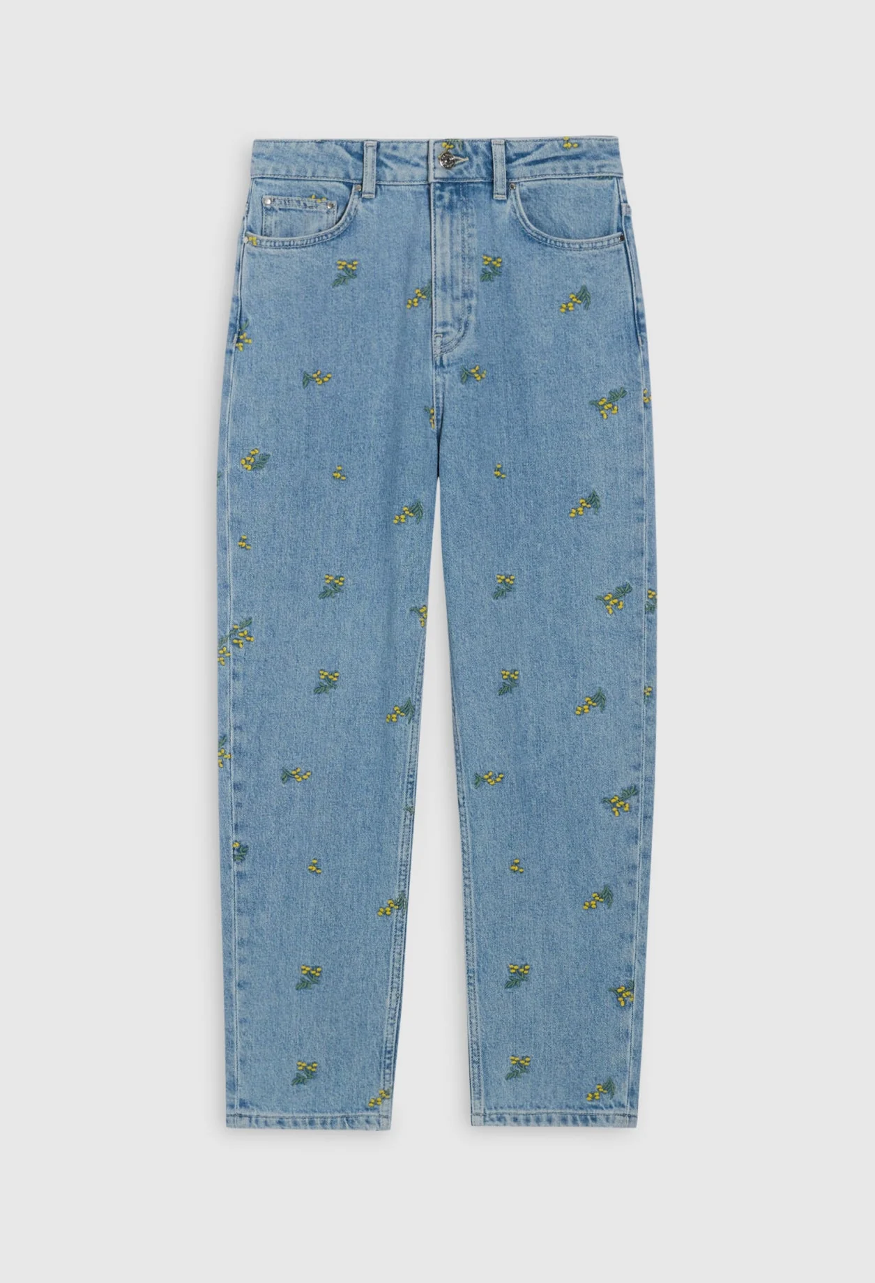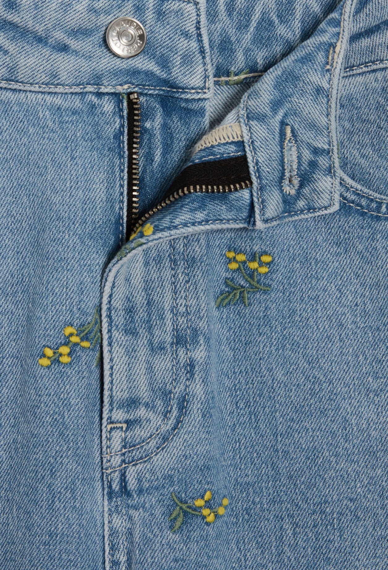 Vaquero recto con bordados mimosa