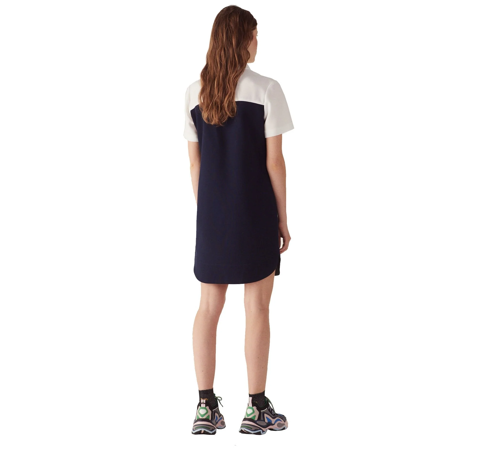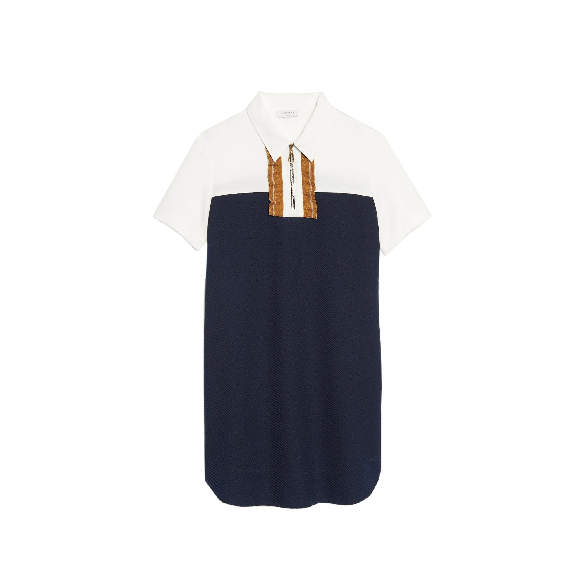 VESTIDO CORTO MANGA CORTA CON CIERRE EN CUELLO, MARCA SANDRO. 100% ALGODÓN. LAVADO A MANDO DELICADO, SIN BLANQUEADOR, NO SECADORA. REVISAR ETIQUETA INTERNA DE LAVADO PARA MÁS INFORMACIÓN.
