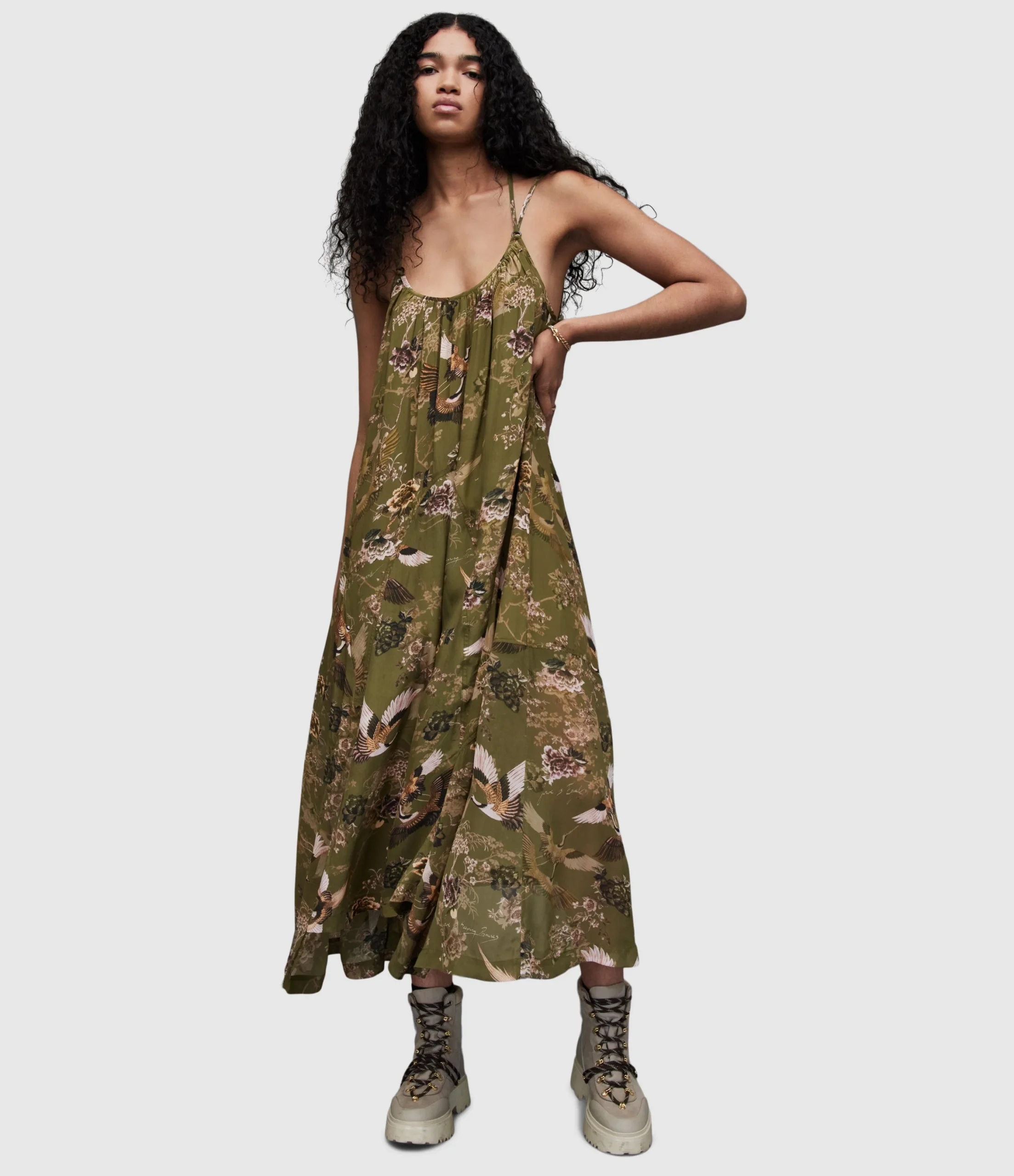 AREENA PEGGY DRESS WD130Z KHAKI GREEN AUG Pull over N/A N/A Oversize fit Maxi length N/A Sleeveless THE EXACT SAME AS PER PREVIOUS AREENA DRESS, SAME COMMENTS ON BLOCK APPLY. NOW IN NEW SEASON PEGGY PRINT. No Pockets N/A NO N/A Woven Numeric 1 1
