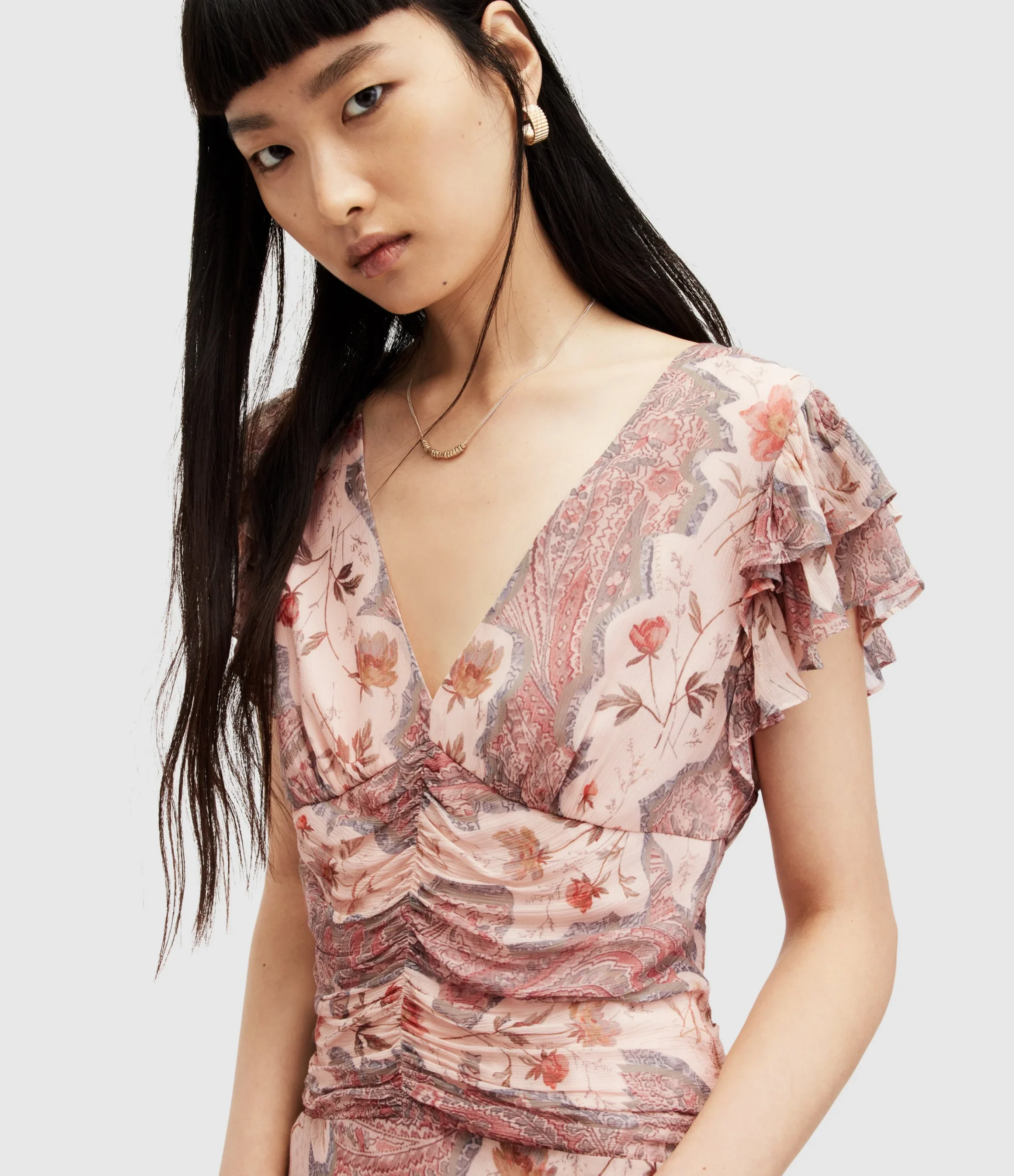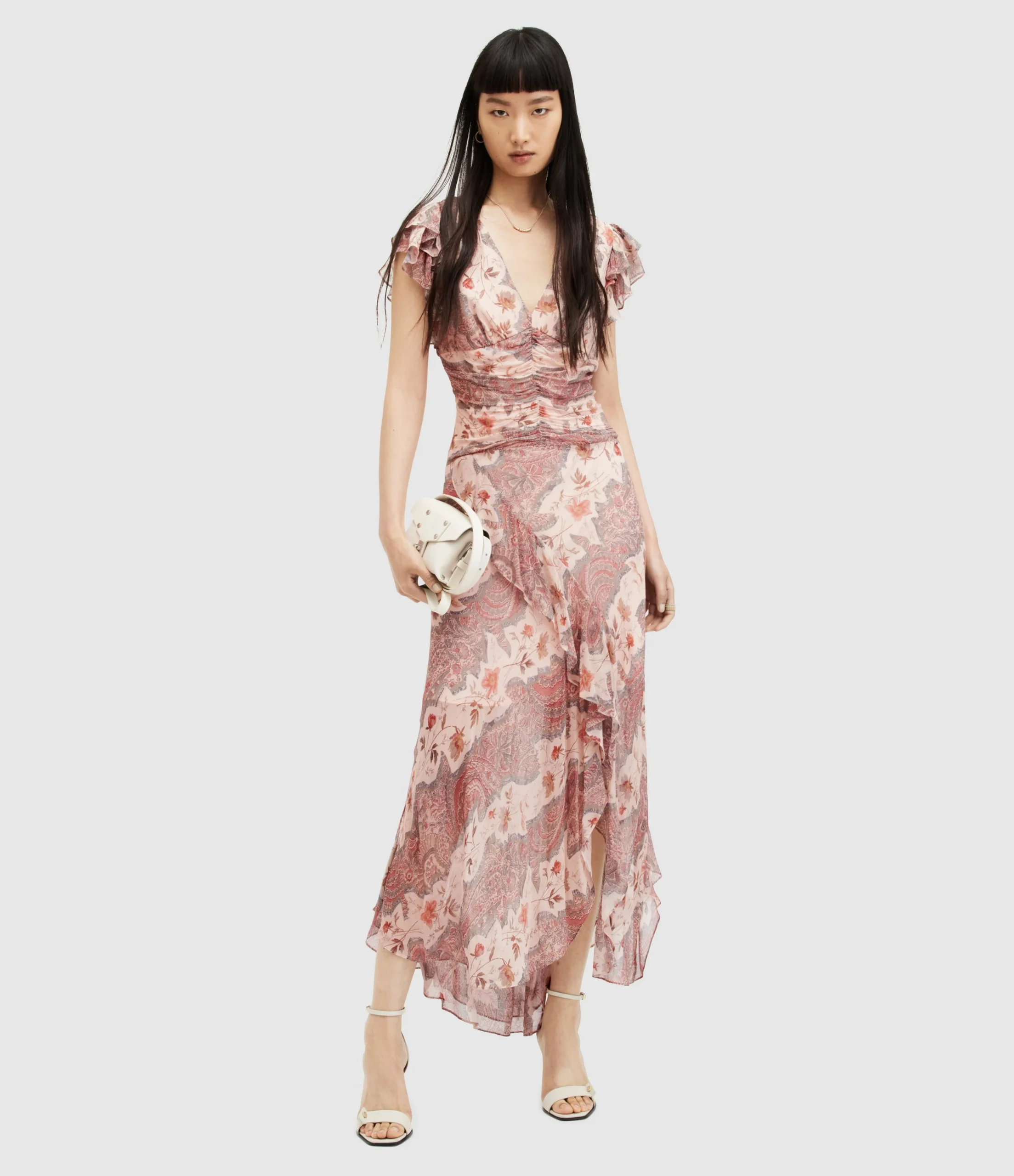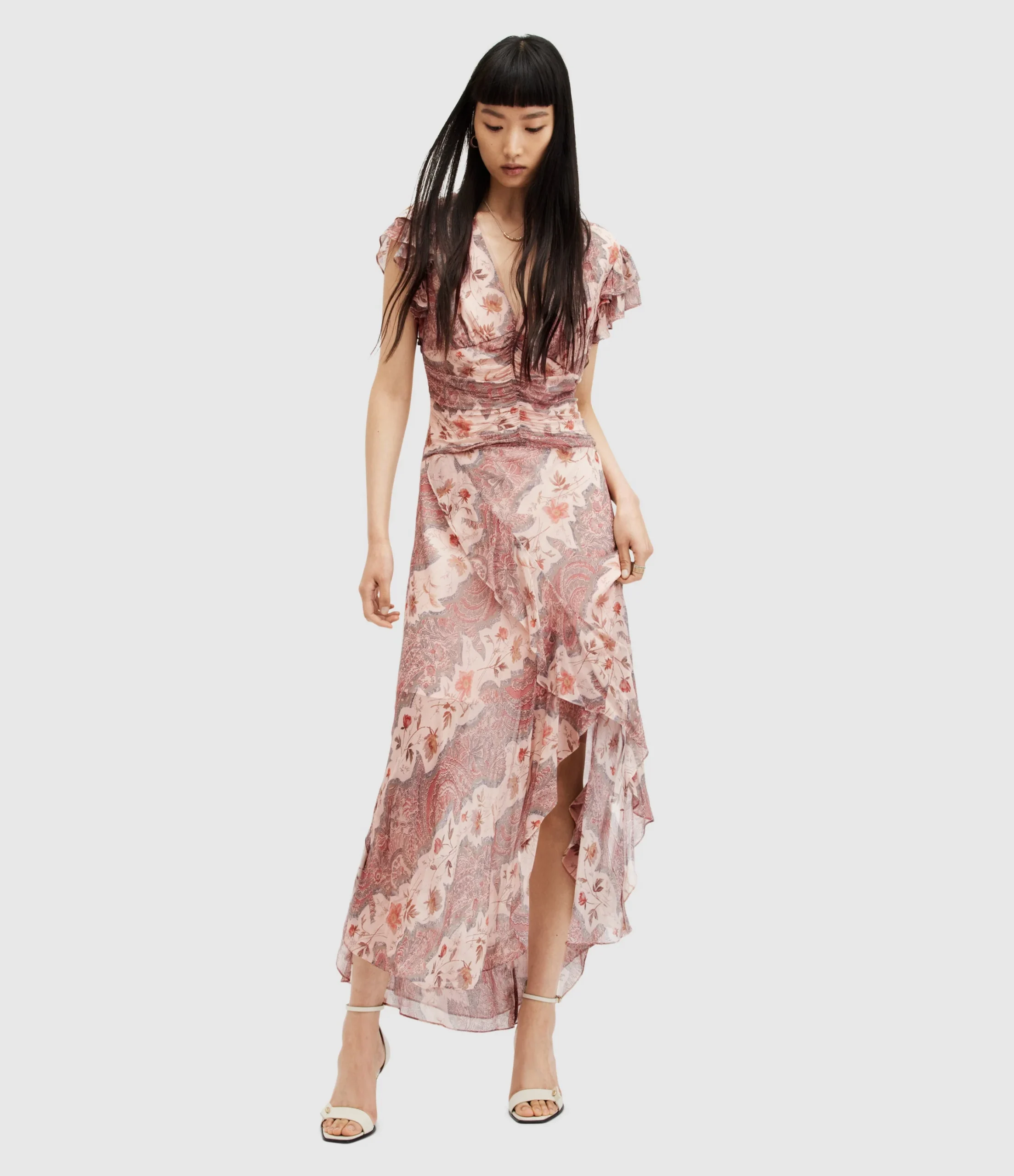 Vestido Brea Cascade color Rosa Masilla para mujer, marca AllSaints.