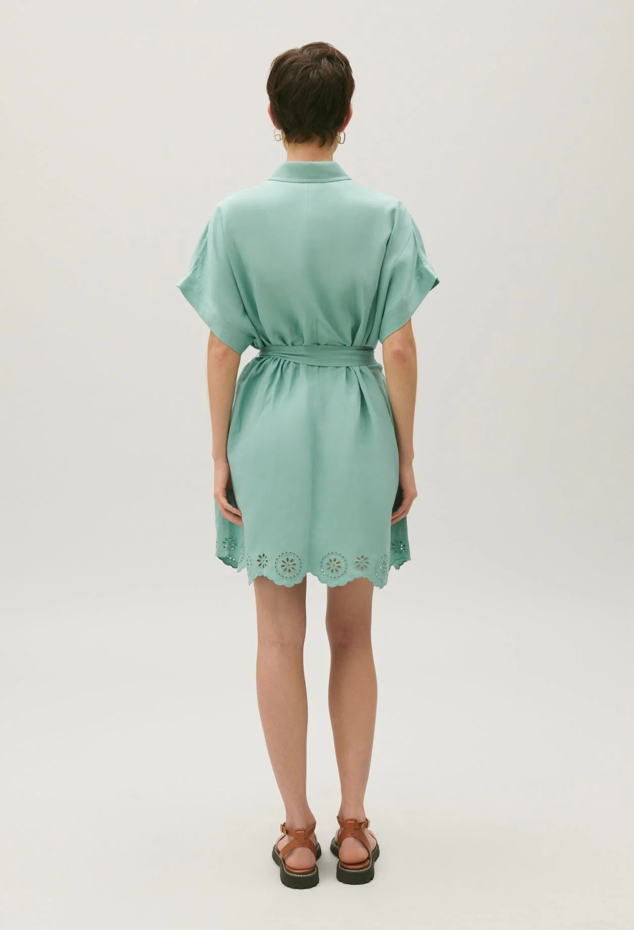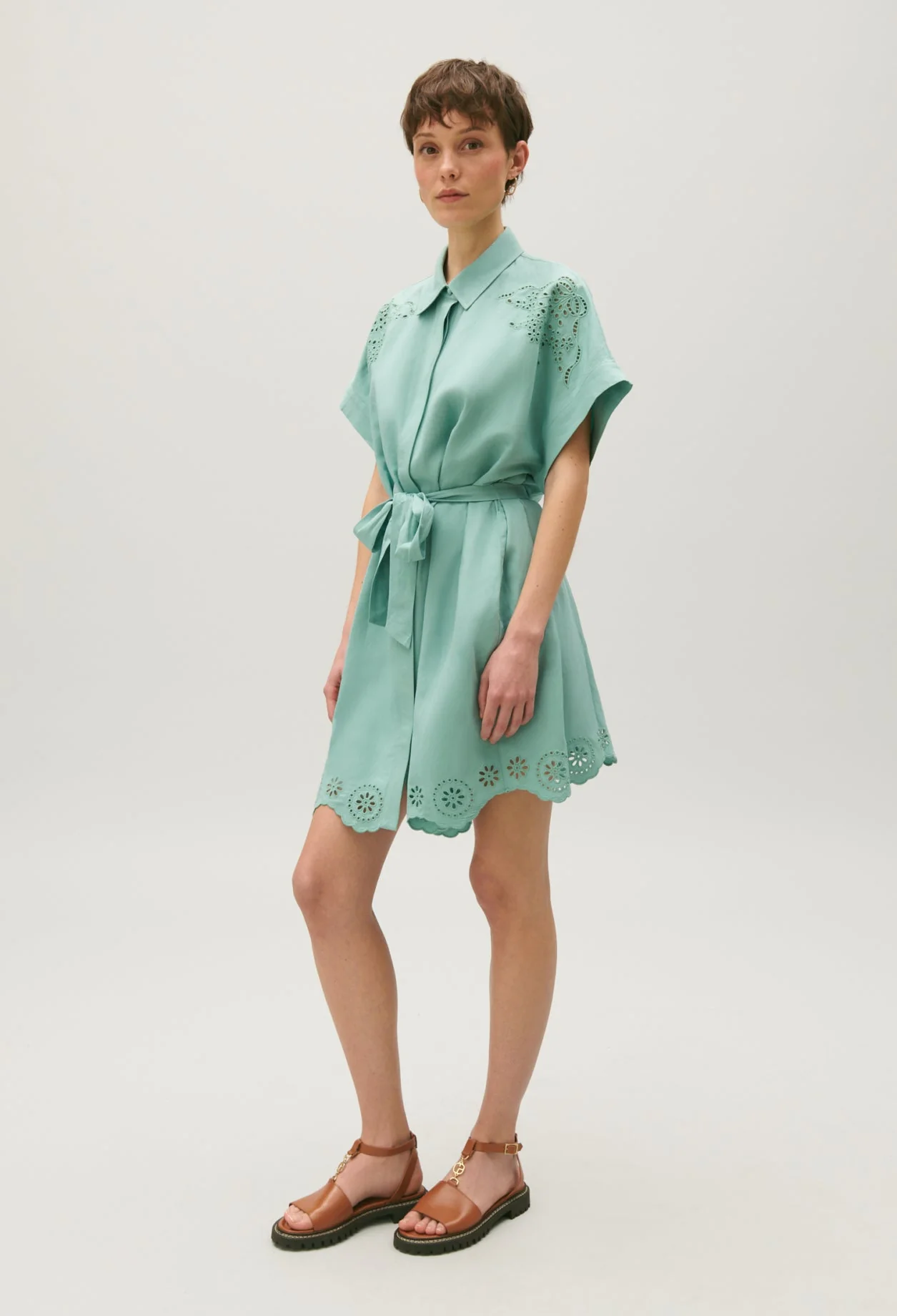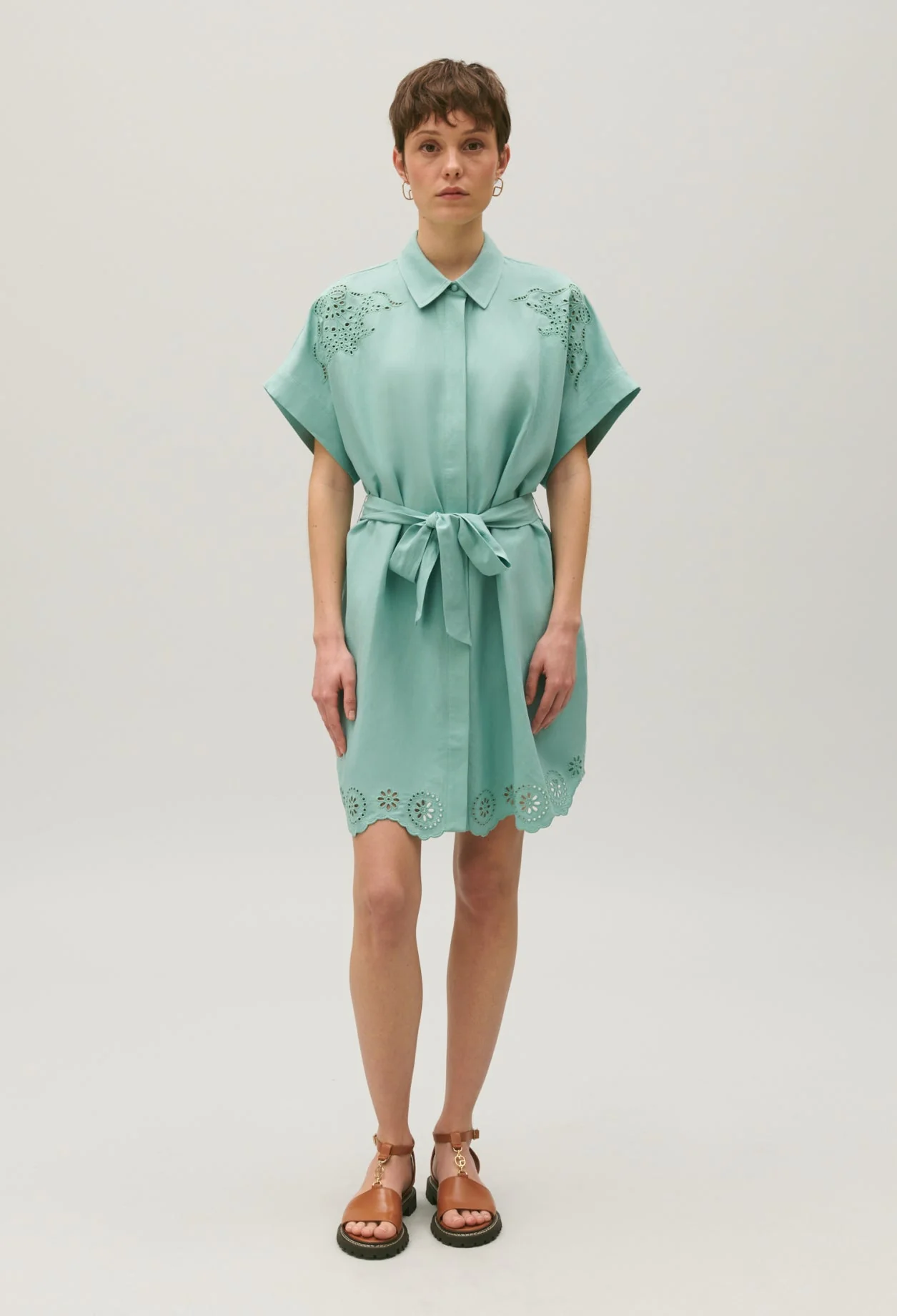 Bordados ingleses en el cuello, en las mangas y en la parte inferior
