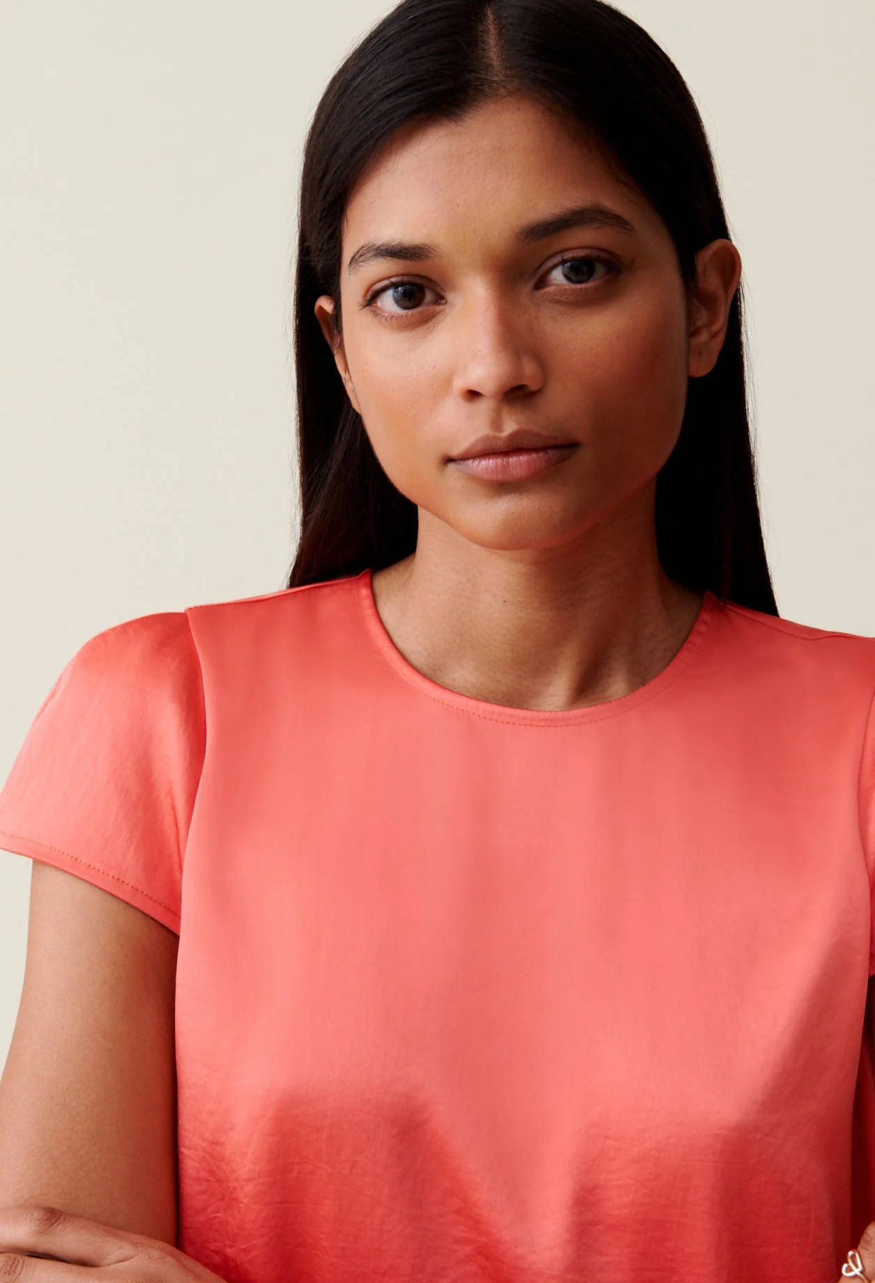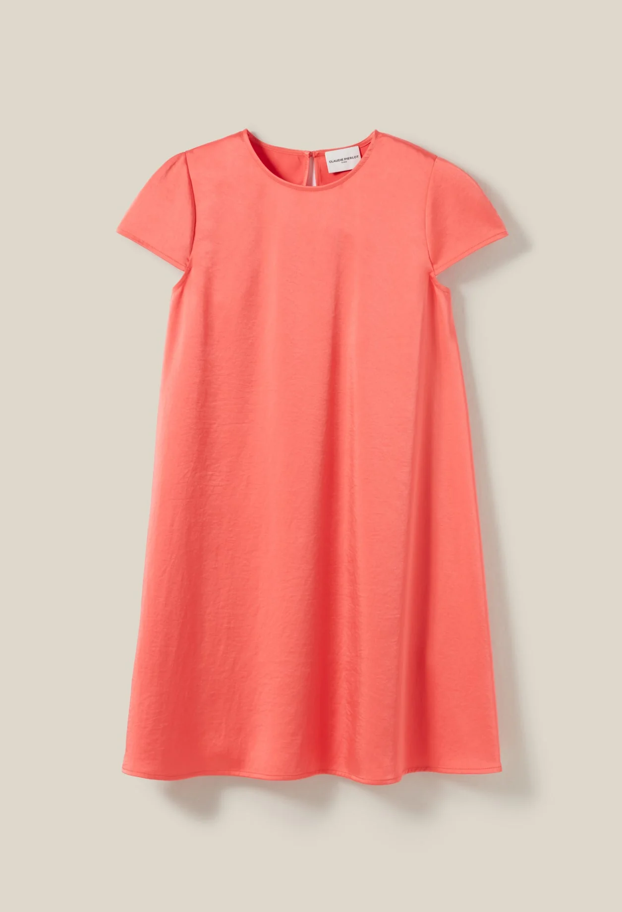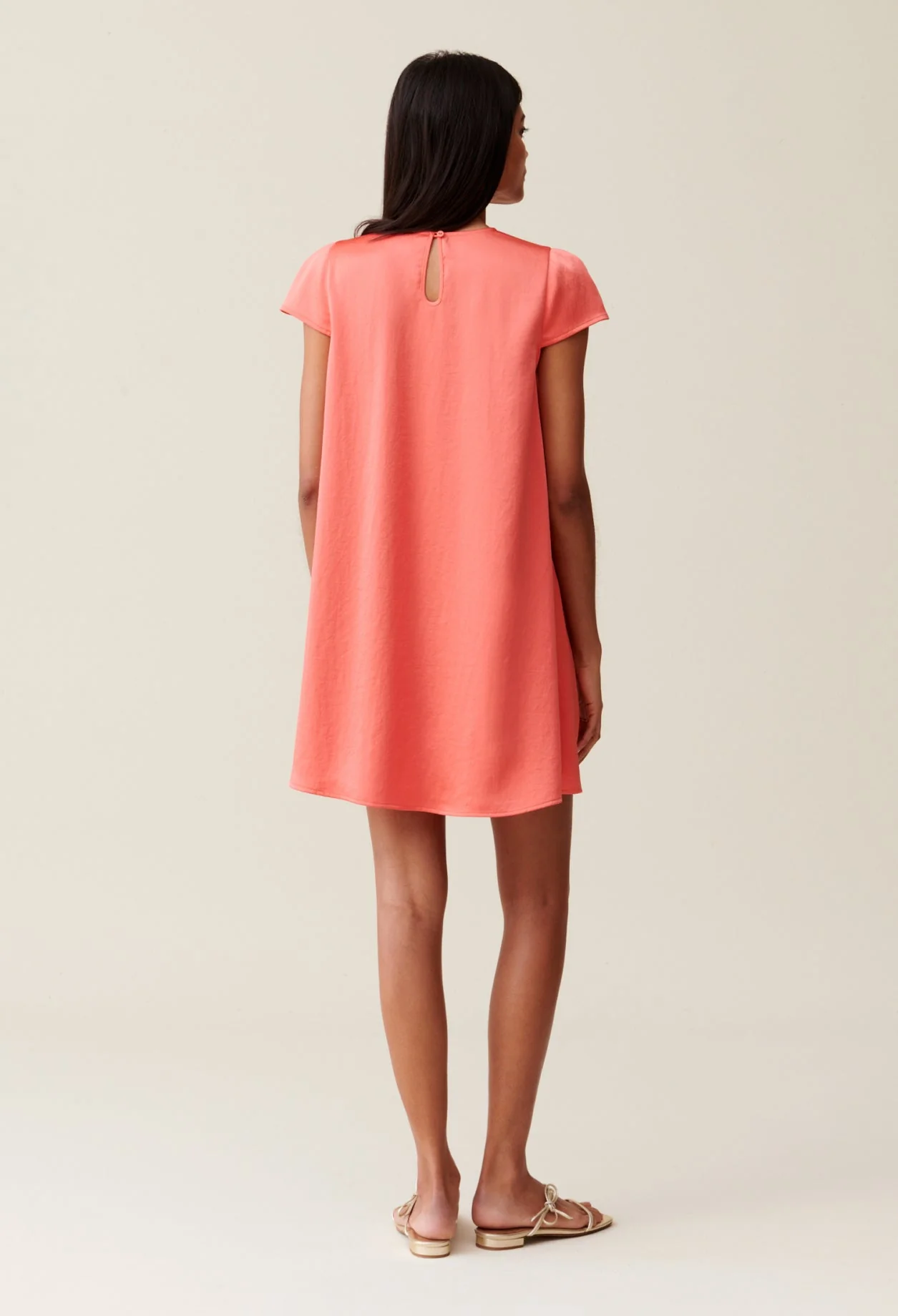 Vestido corto y fluido estilo babydoll con cuello redondo y mangas cortas