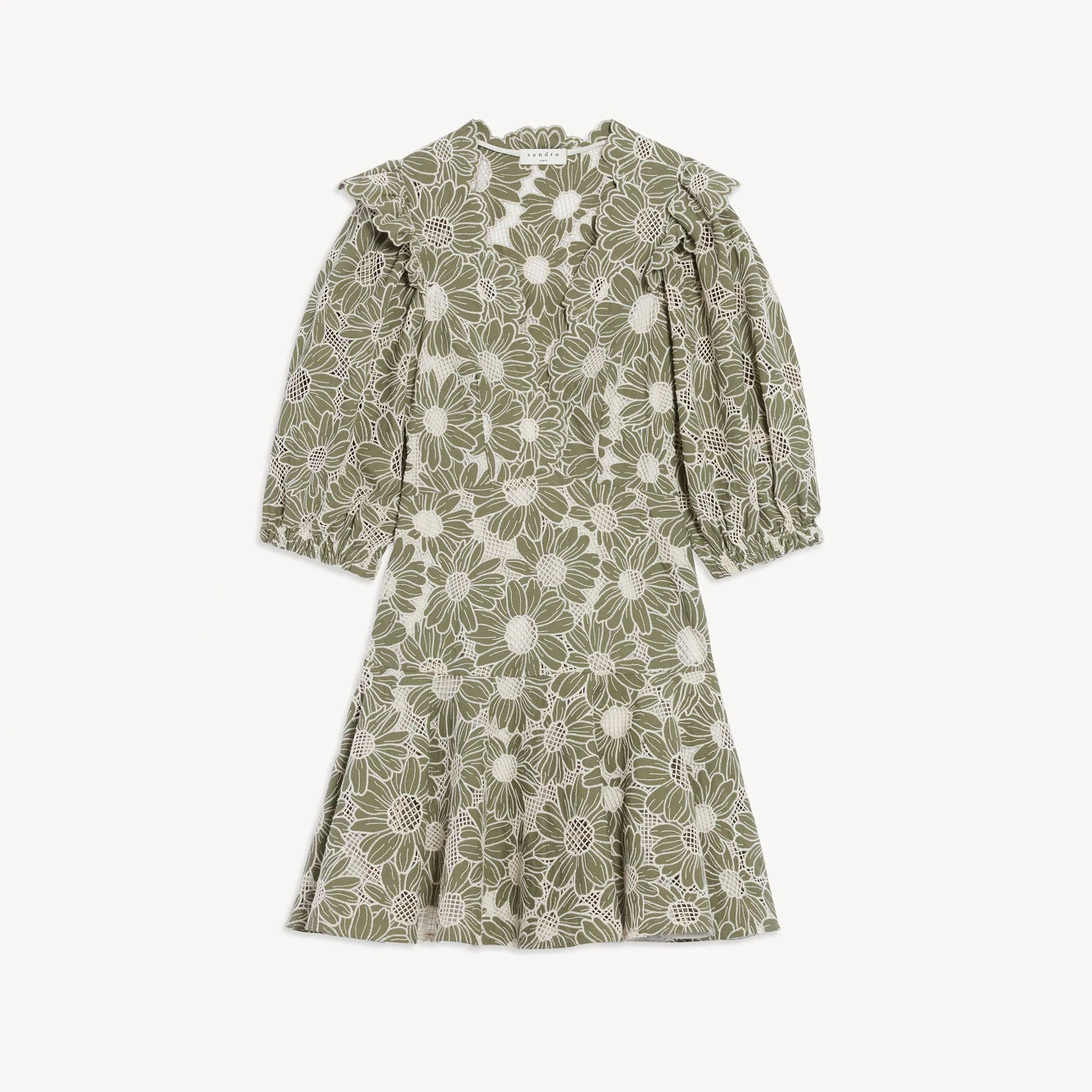 • Vestido corto de tejido bordado
