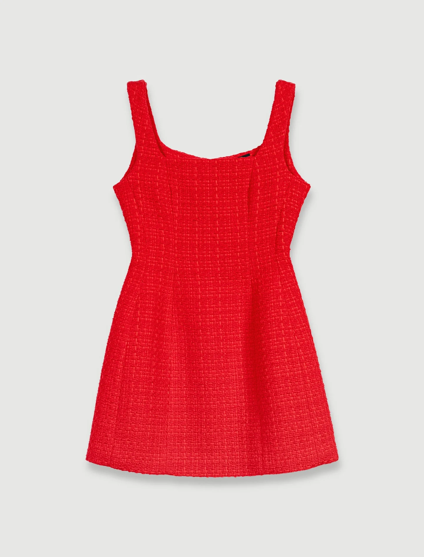 Cortes atrevidos, detalles femeninos y tonos vibrantes: el estudio de Maje rediseña piezas intemporales para realzar sus siluetas tanto de día como de noche.En el color estrella de la temporada y un juego de pespuntes, este vestido corto de tweed añade un toque de brillo a su «look». Con cierre de cremallera en la espalda, viene con tirantes anchos y un escote cuadrado. Marcada en la cintura en forma de tulipán, su falda ligeramente acampanada ofrece una caída rígida y estructurada.Fácil de combinar con otras prendas y accesorios, resalte su atuendo con un bolso y sandalias de plataforma para un «look» elegante e informal.Ref.: MFPRO03544