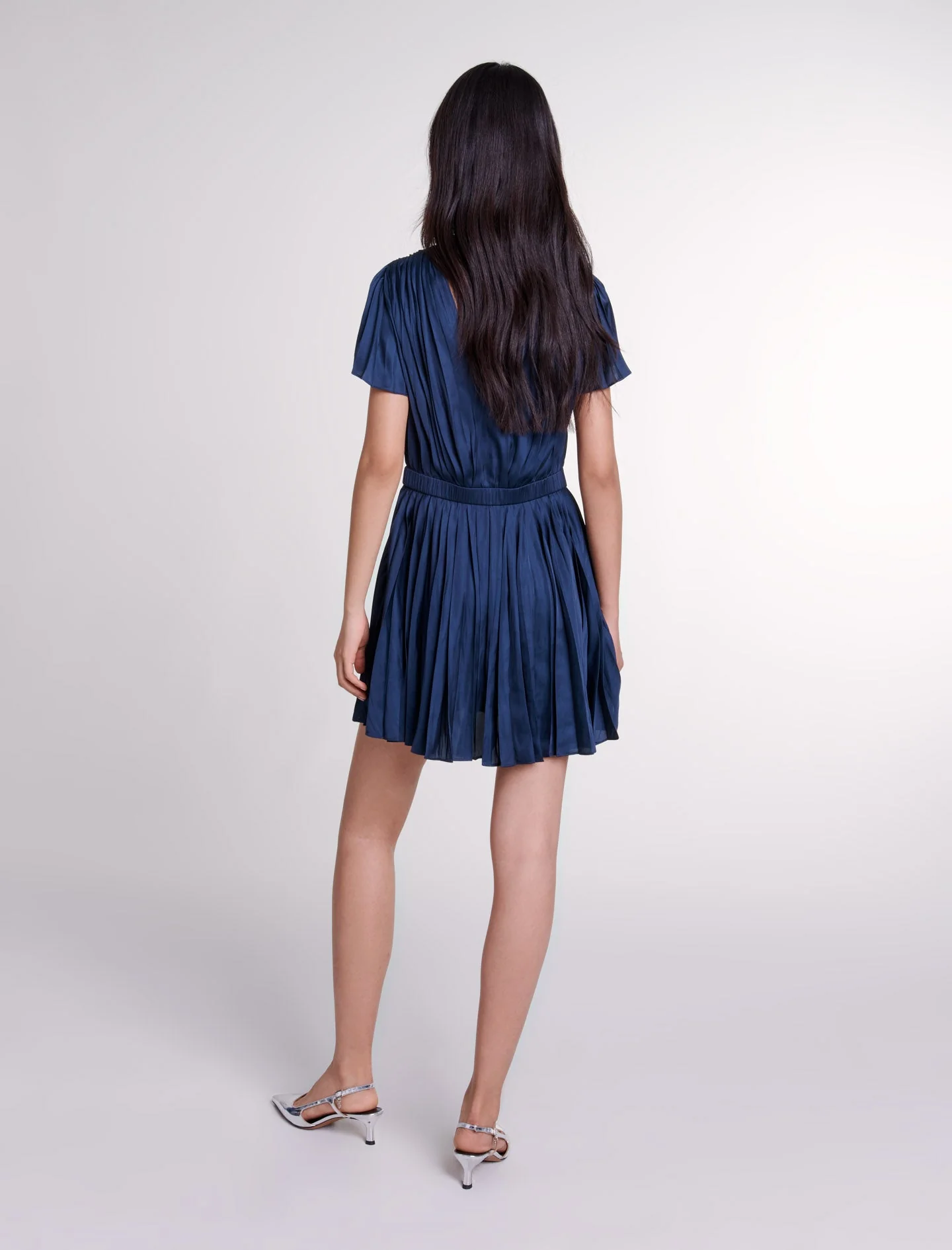 • Vestido corto plisado y satinado