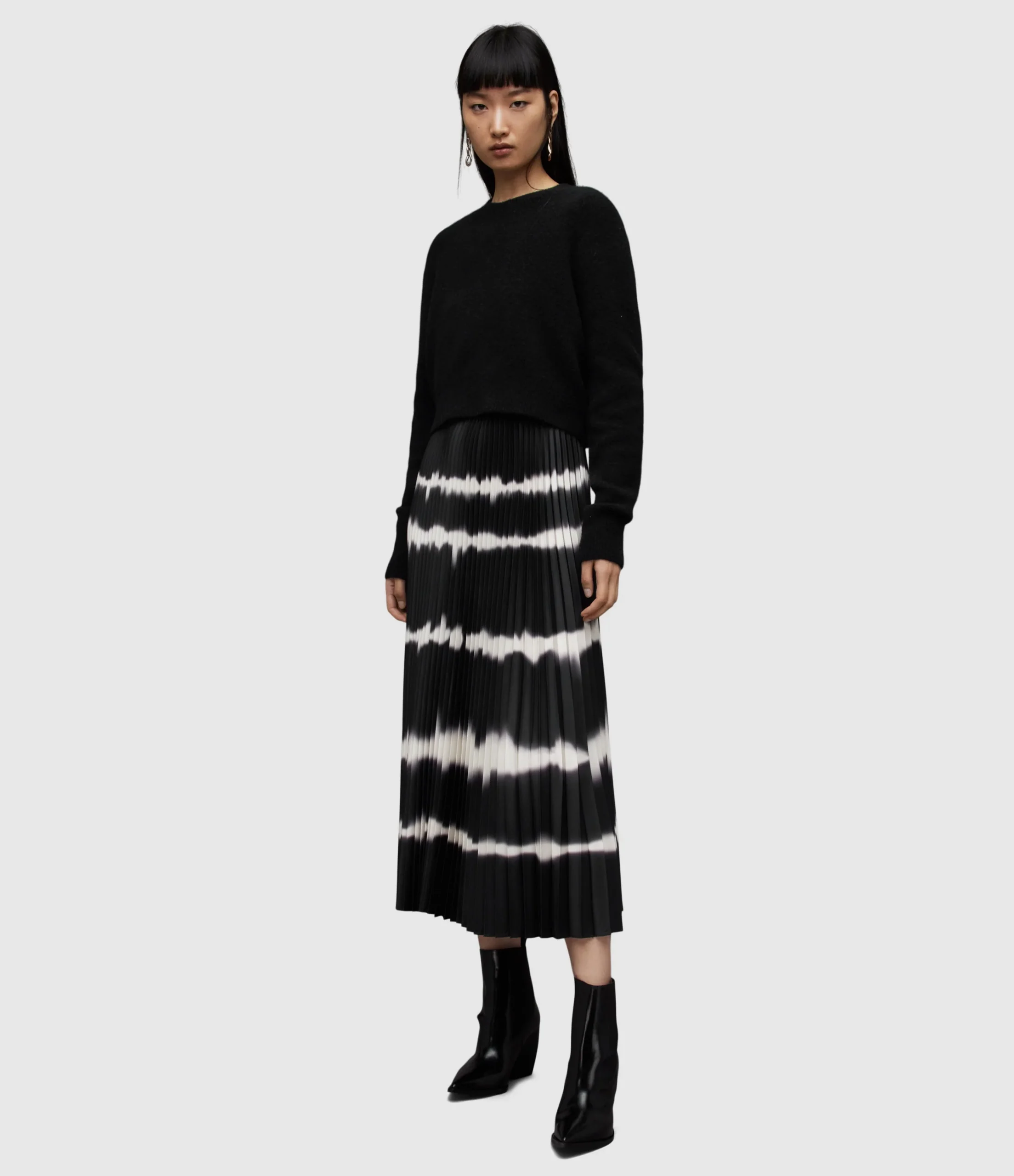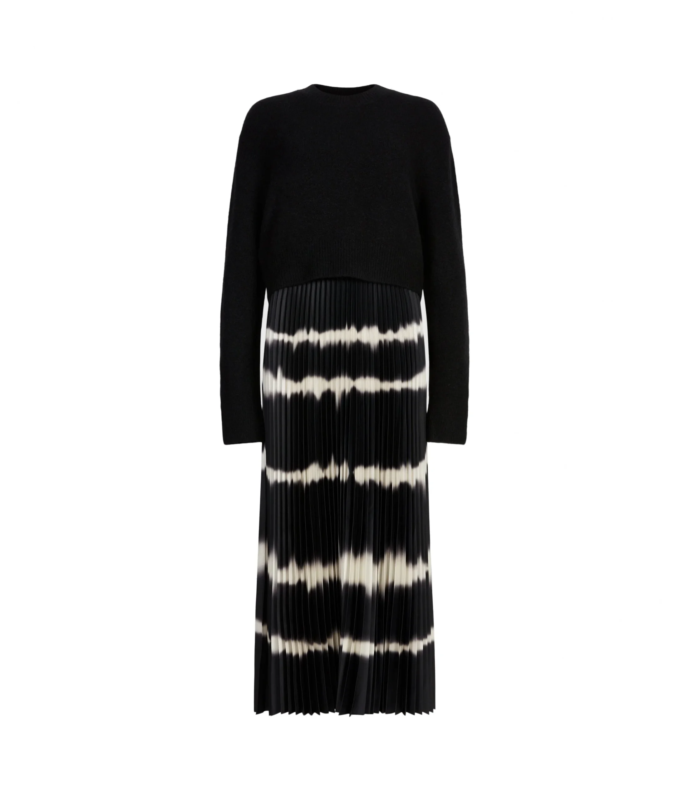CURTIS DRESS WD072X BLACK/CHALK WHITE SEP Pull over N/A N/A Regular fit Midi length Crew neck Long sleeve TWOFER FEATURING BOLD TYE DYE PRINTED & PLEATED WOVEN DRESS WITH ELASTICATED BUST SEAM AND STRAP ADJUSTERS TO HELP PROVIDE PERFECT FIT. DRESS IS MIDI LENGTH AND FEATURES NEW V-NECK NECKLINE AND STRAP SHAPE. DRESS COMES COMES WITH SOFT ALPACA BLEND CREW NECK JUMPER WITH RIB TRIMS. JUMPER AND DRESS CAN BE WORN SEPERATLY OR TOGETHER No Pockets N/A YES N/A Woven Alpha 1 1