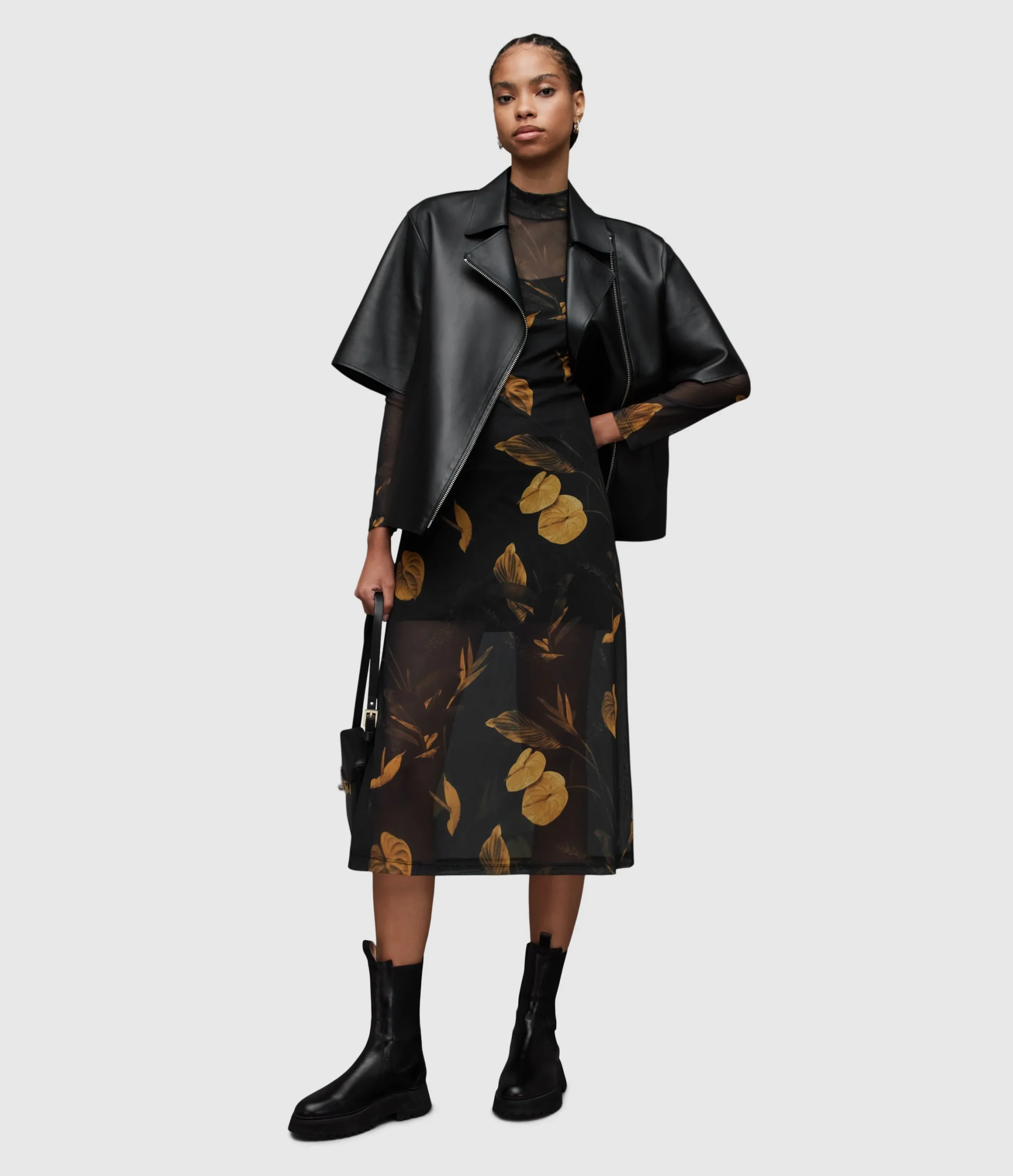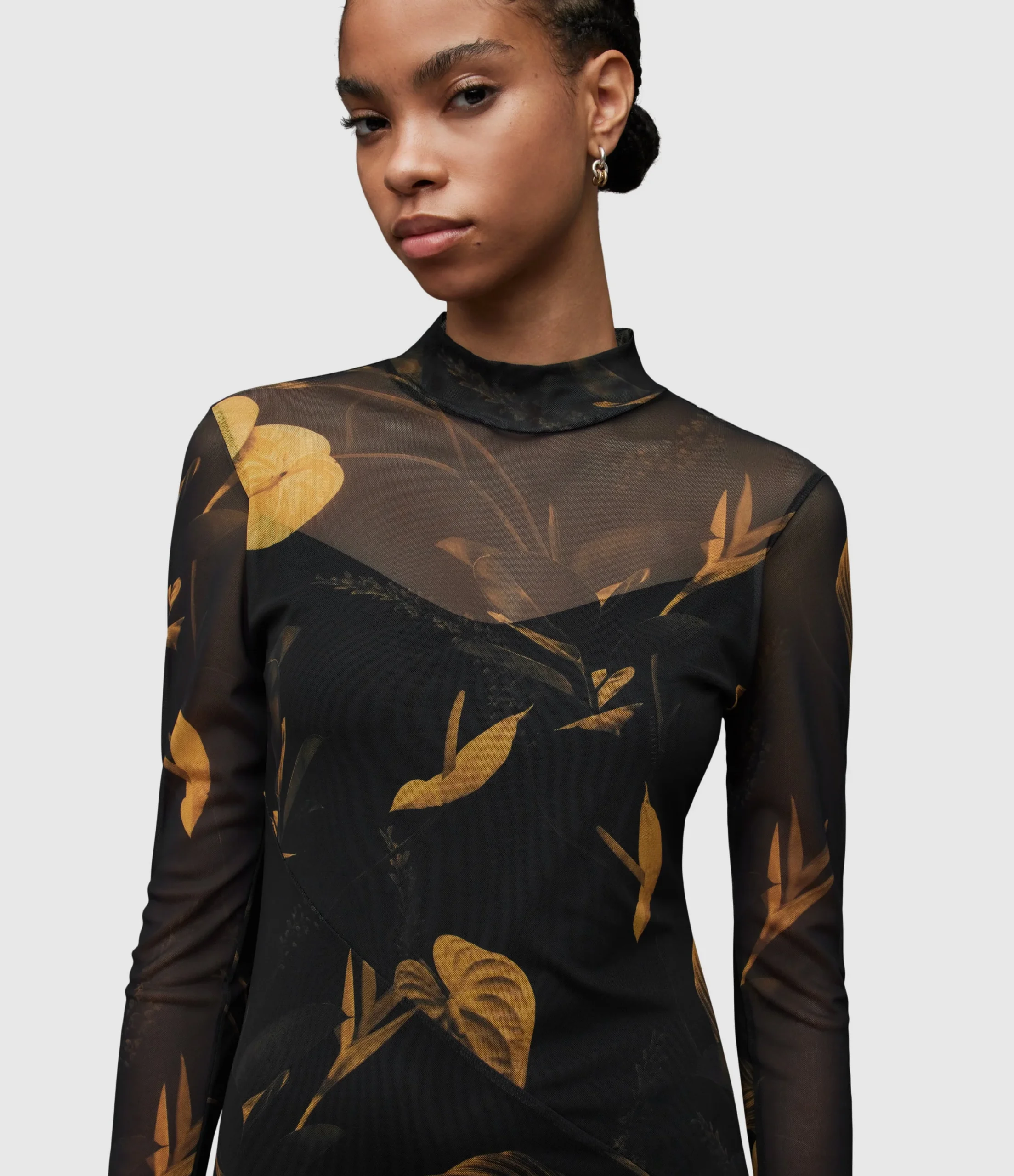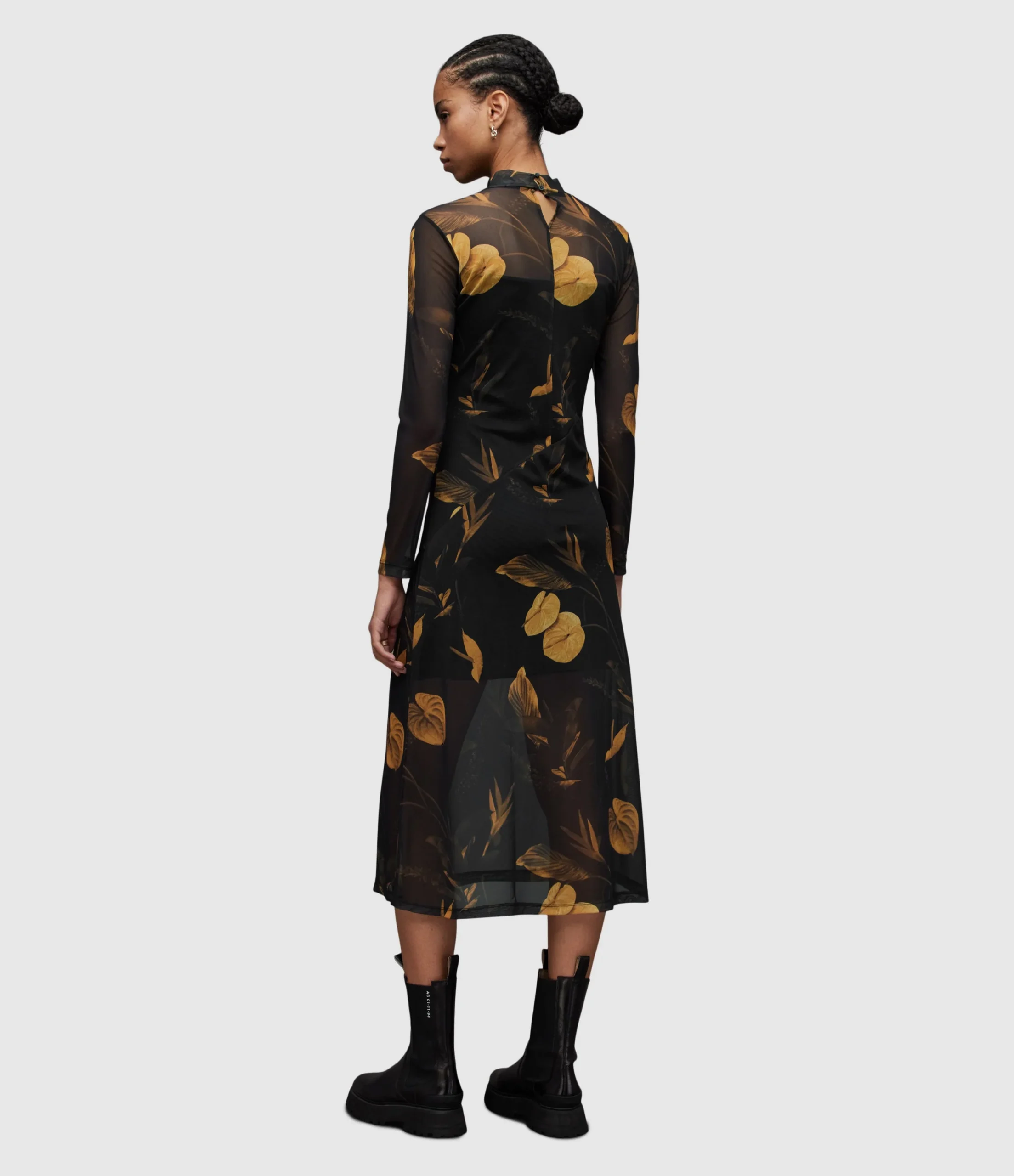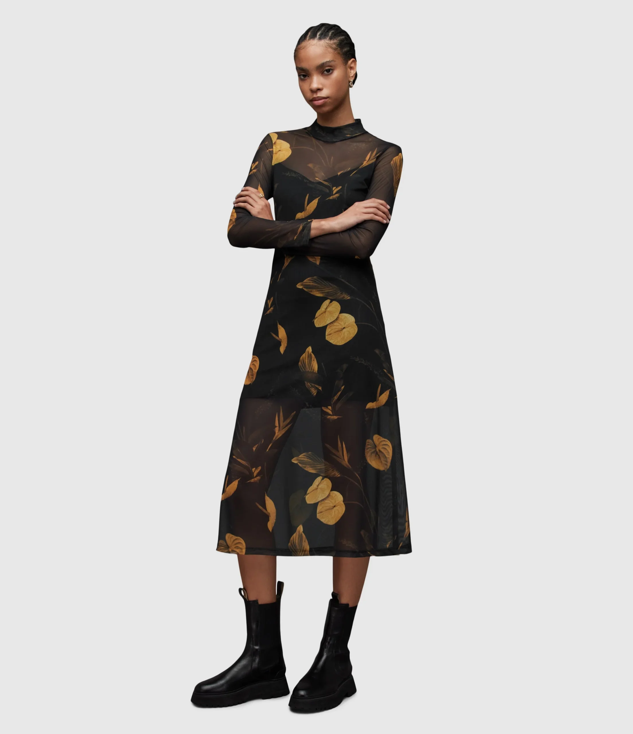 HANNA ARETHA DRESS WD123Z BLACK/GOLD SEP Pull over Button closure N/A Regular fit Midi length Funnel neck Long sleeve THIS IS OUR HANNA DRESS IN A NEW SEASON PRINT – ARETHA No Pockets N/A YES LINED IN SELF Knitted Numeric 1