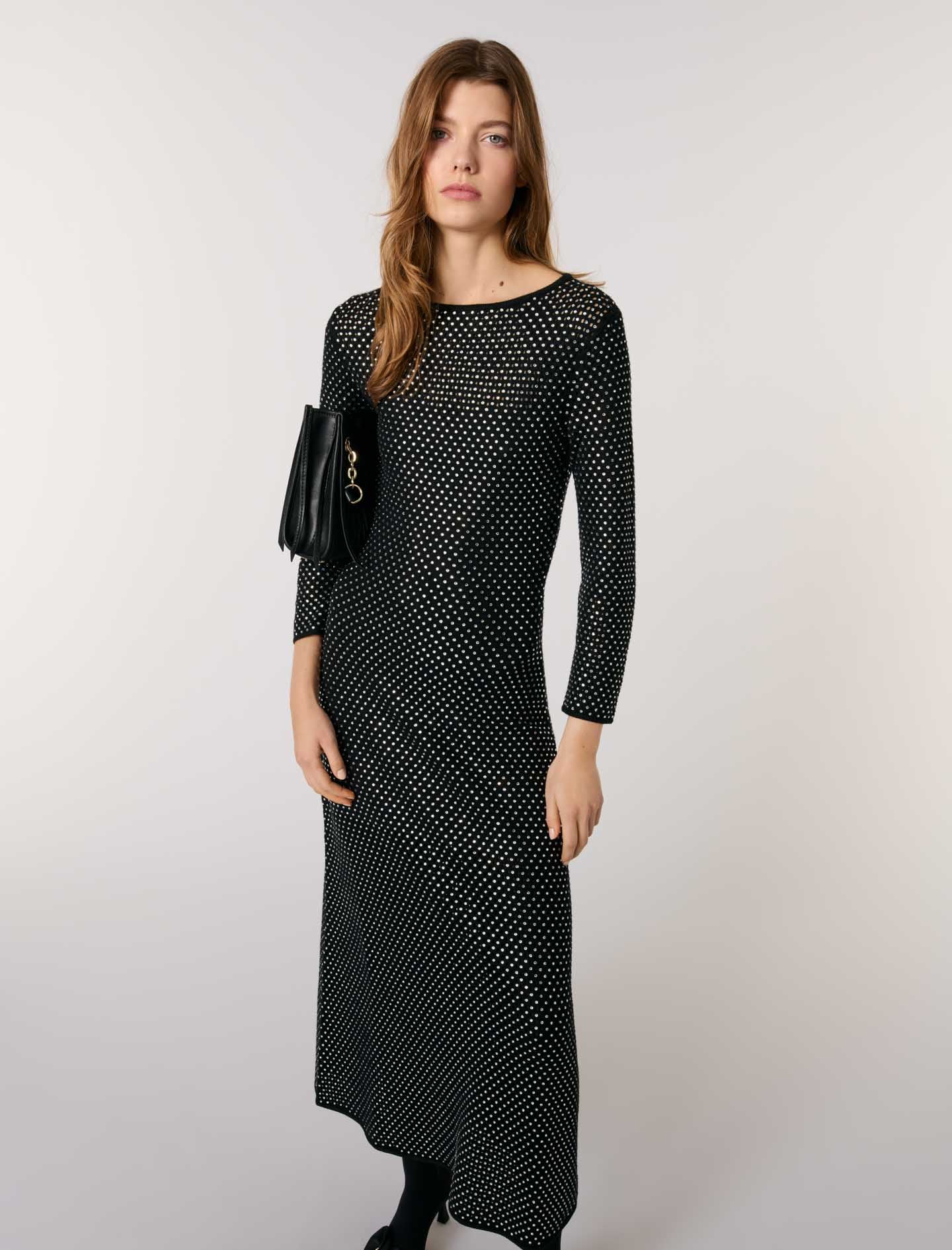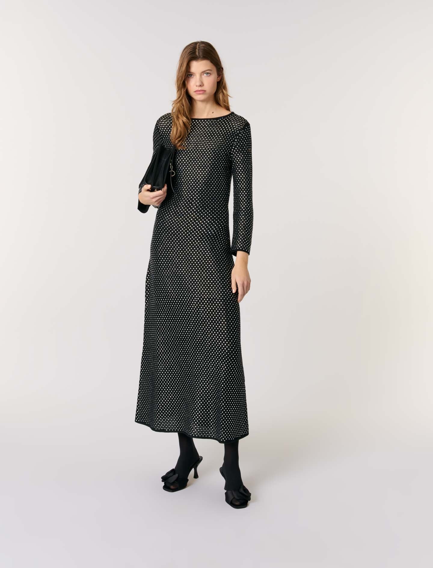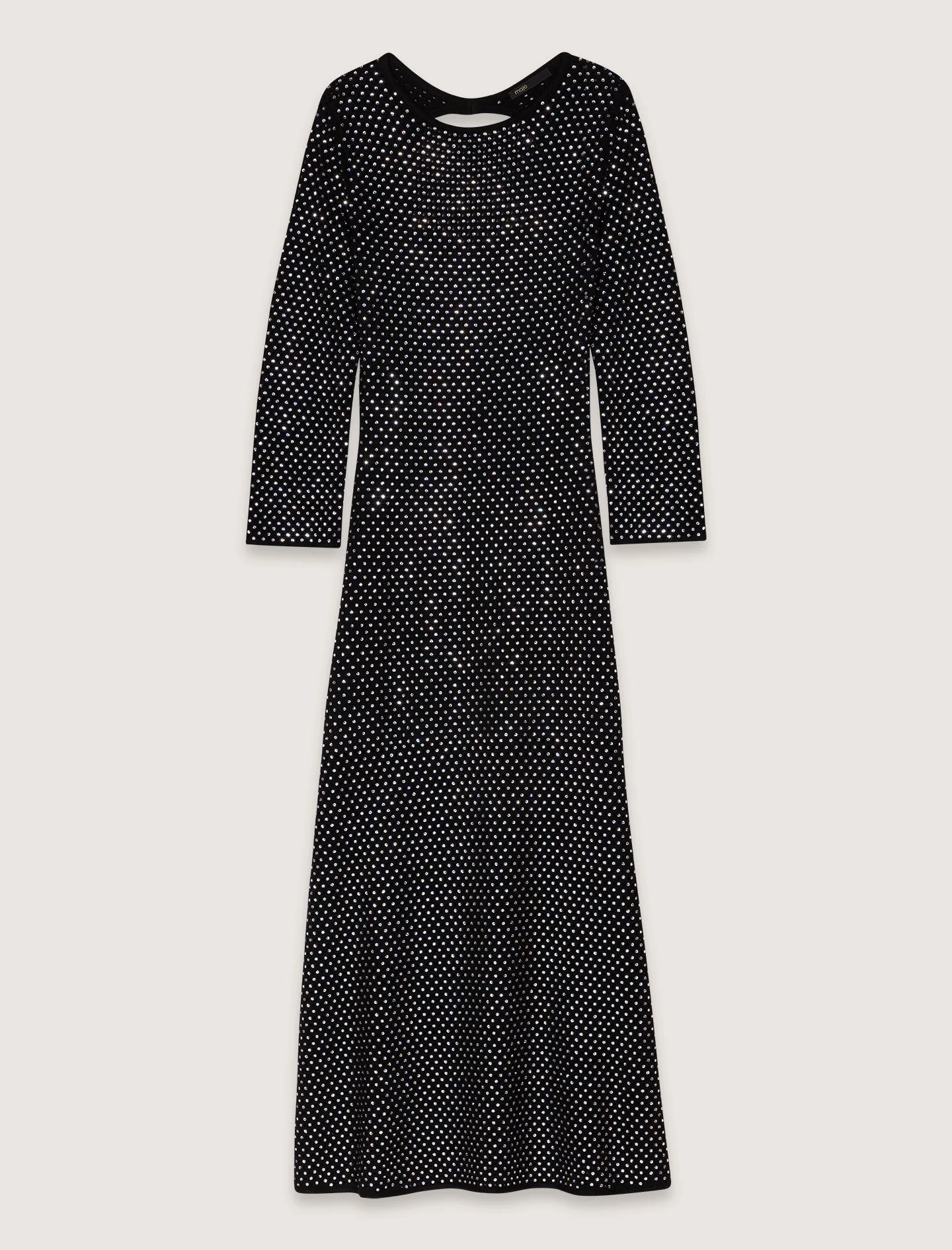 Con este vestido completamente de pedrería se revela una silueta impresionante. Con una base tono sobre tono para crear opacidad y aportar una comodidad perfecta, dibuja una línea fluida y ligeramente acampanada en la parte inferior. Una abertura en la espalda destaca la audacia de la prenda.