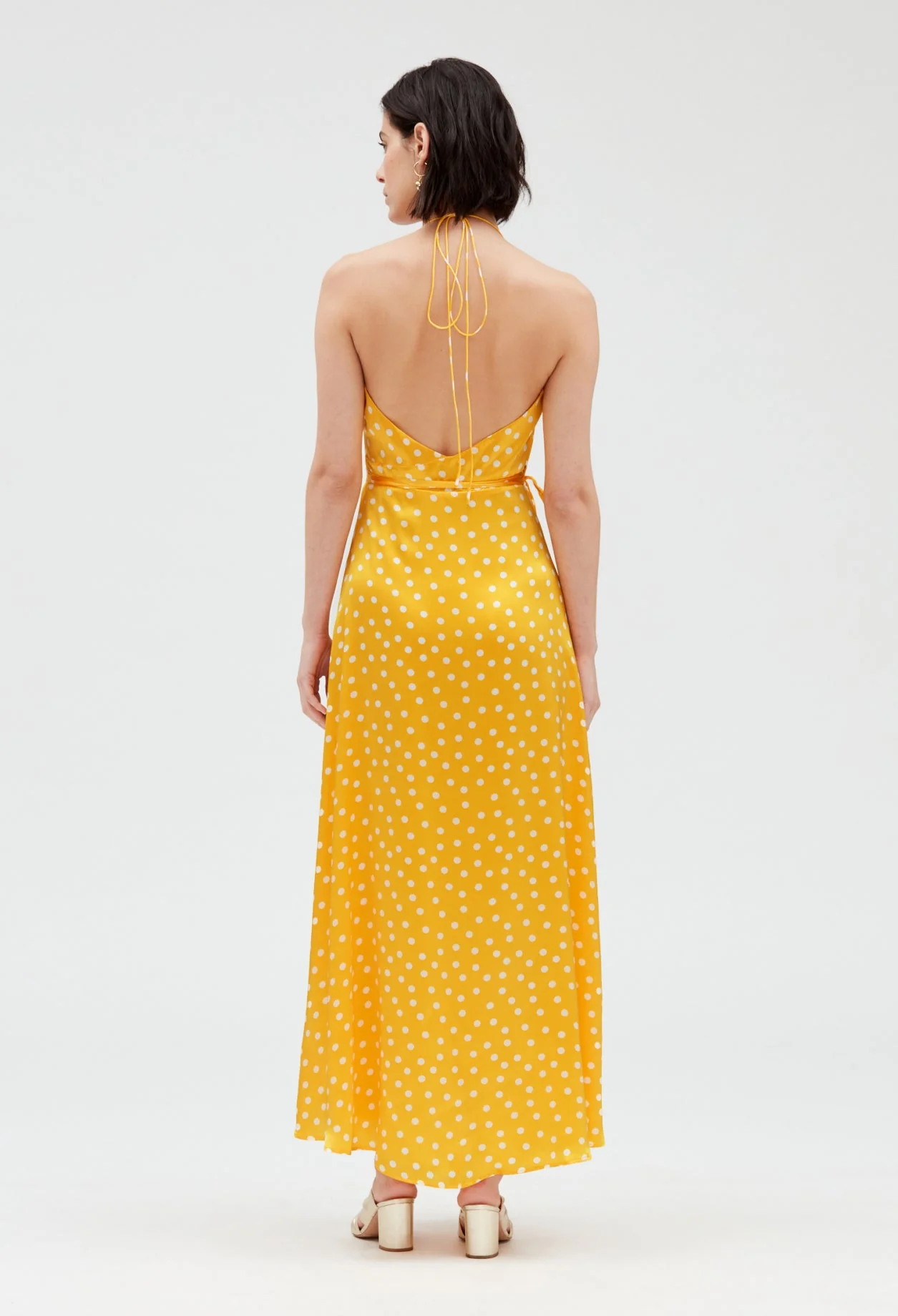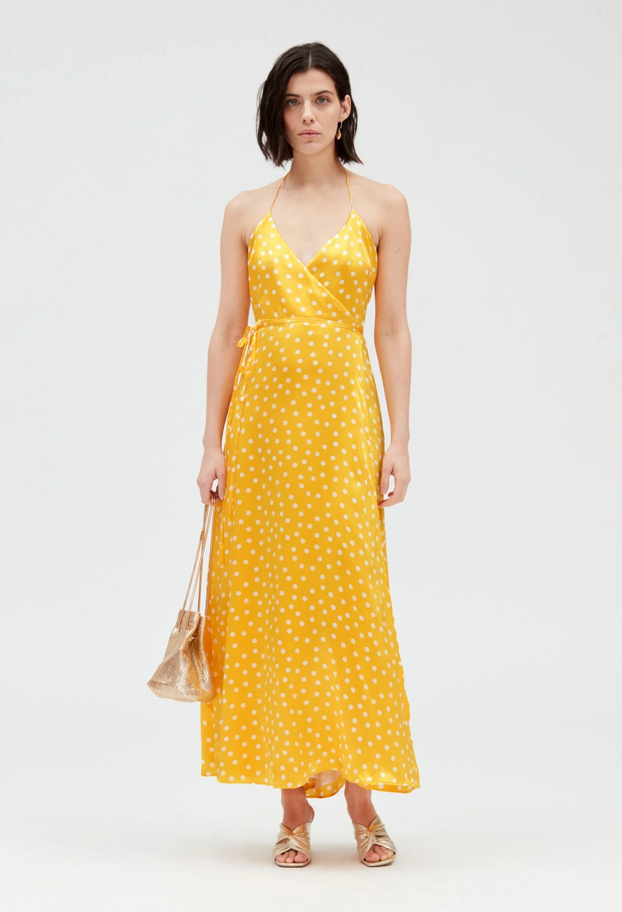 Sé el primero en valorar “Vestido largo cruzado de seda amarilla”