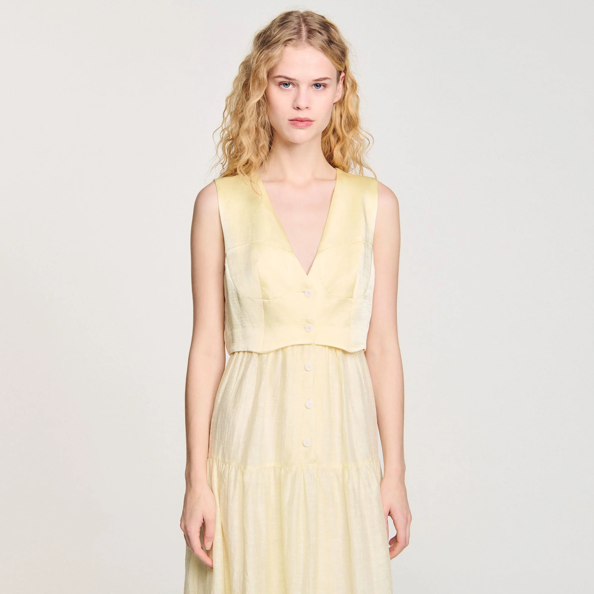 • Parte superior tipo chaleco con costuras estilo corsé