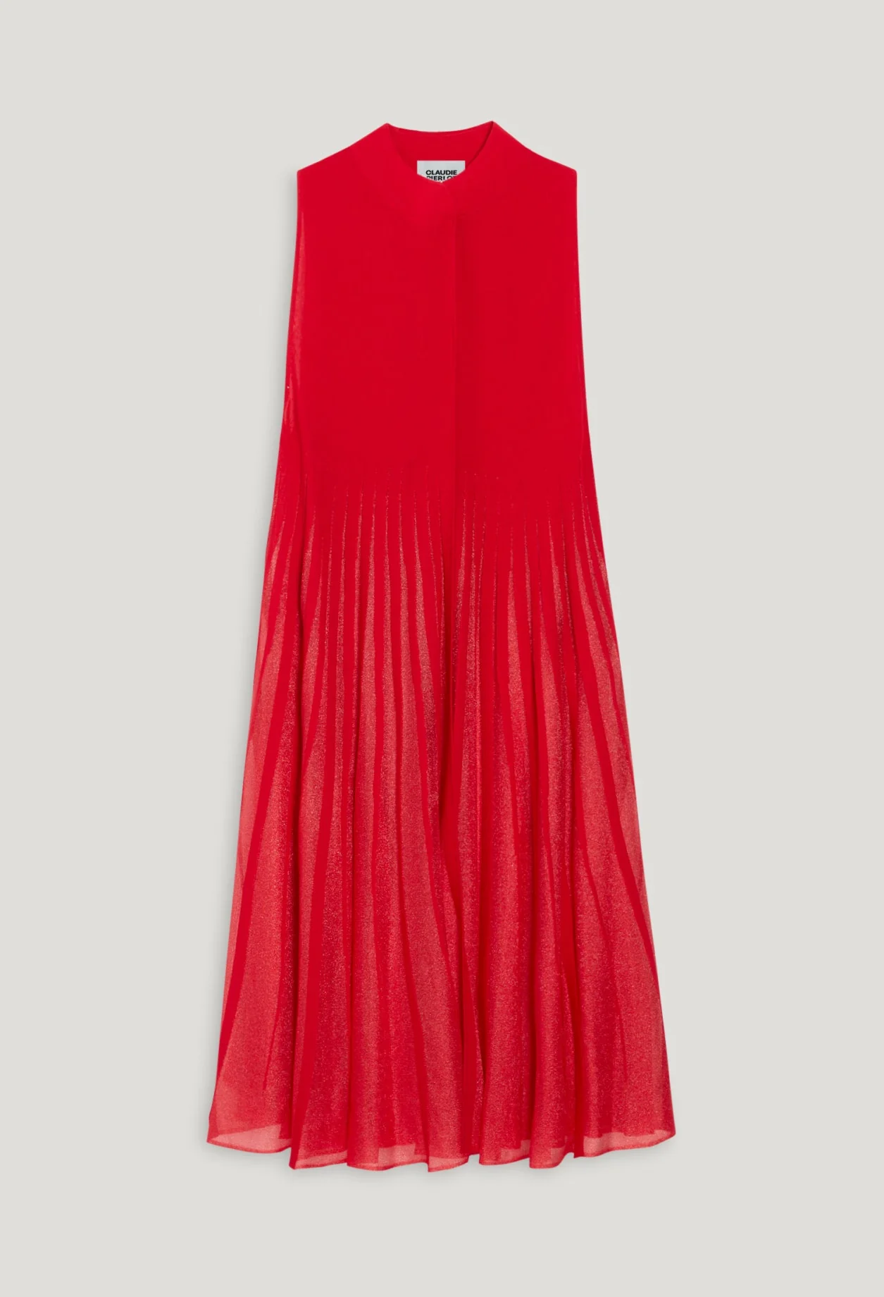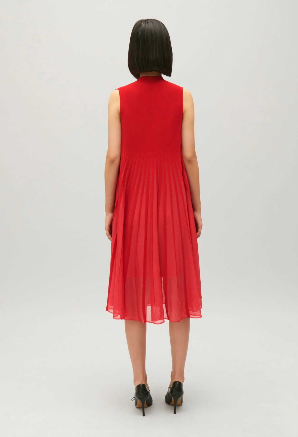 Vestido fluido de punto con abertura delantera adornada con un juego de rayas transparentes