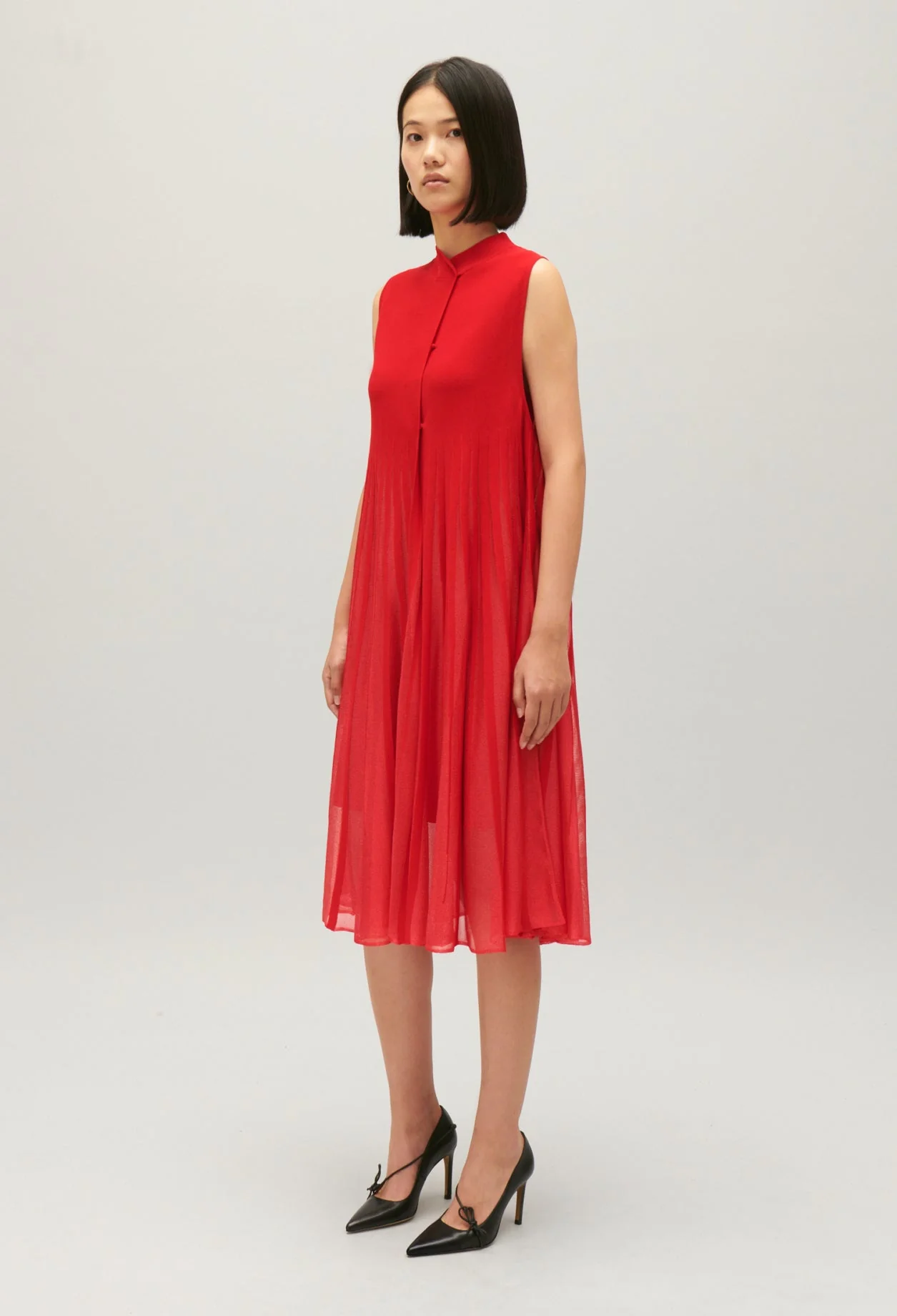 Cuello mao con cierre cruzado, sin mangas