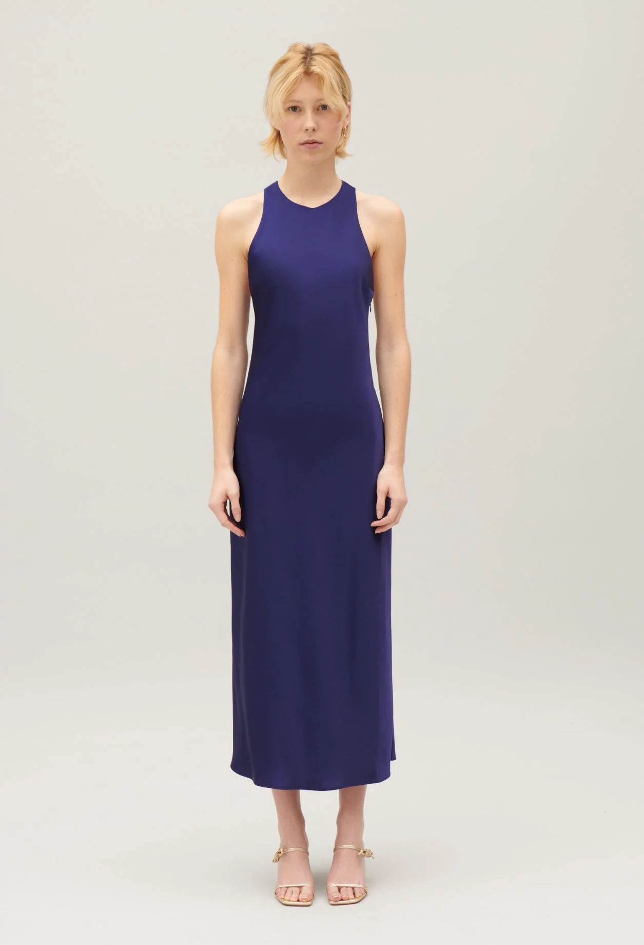 Sin mangas, cuello redondo, espalda descubierta, cierre de cremallera invisible en el lateral