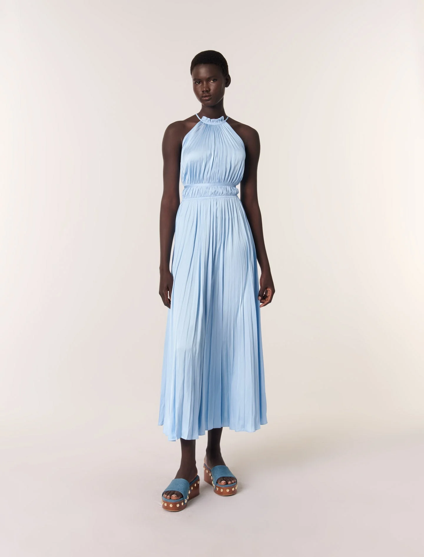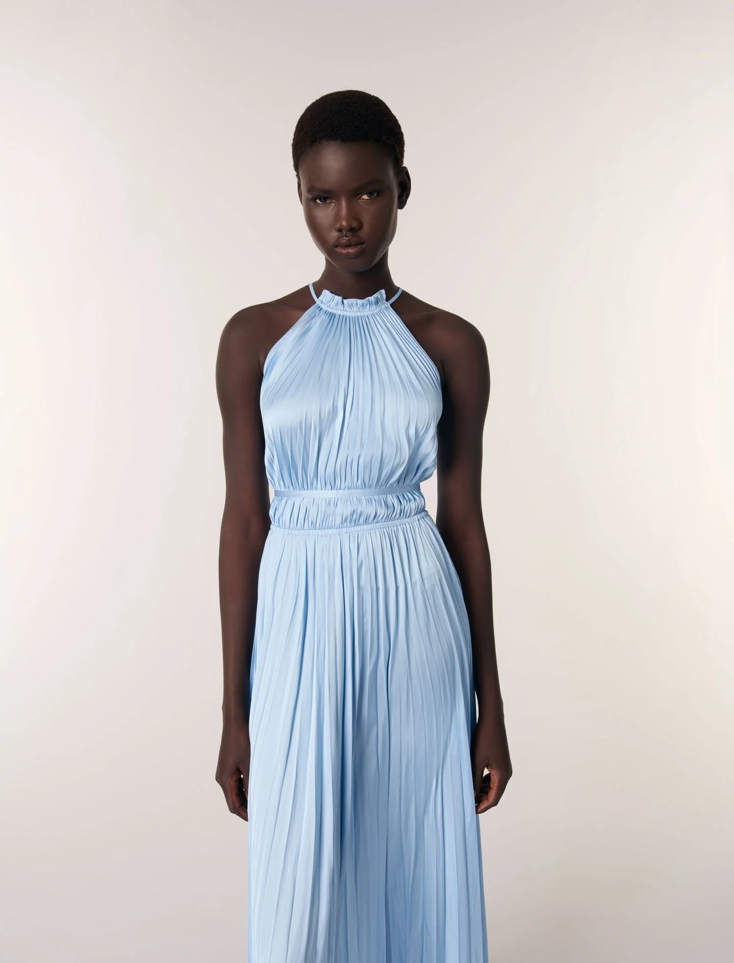 • Vestido largo plisado sin mangas