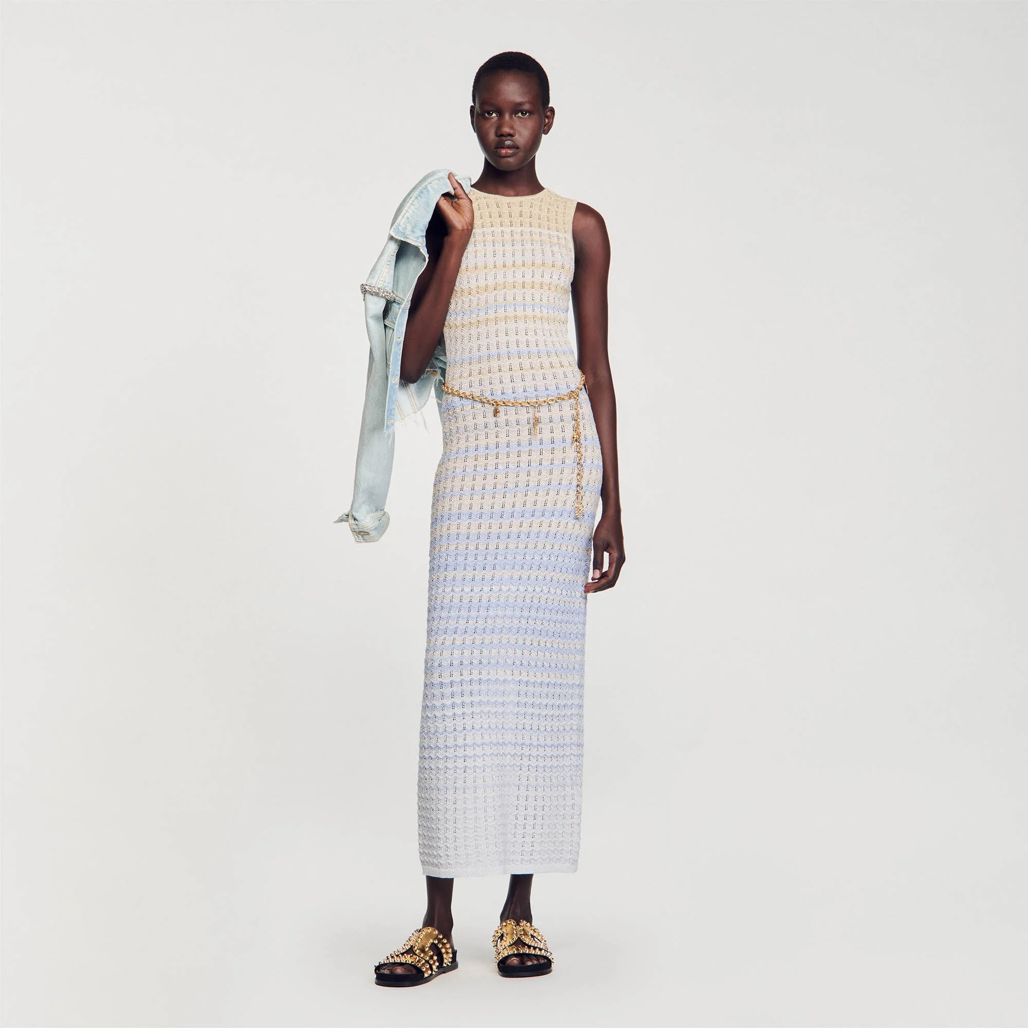 • Vestido largo de punto pointelle Sandro Femme
