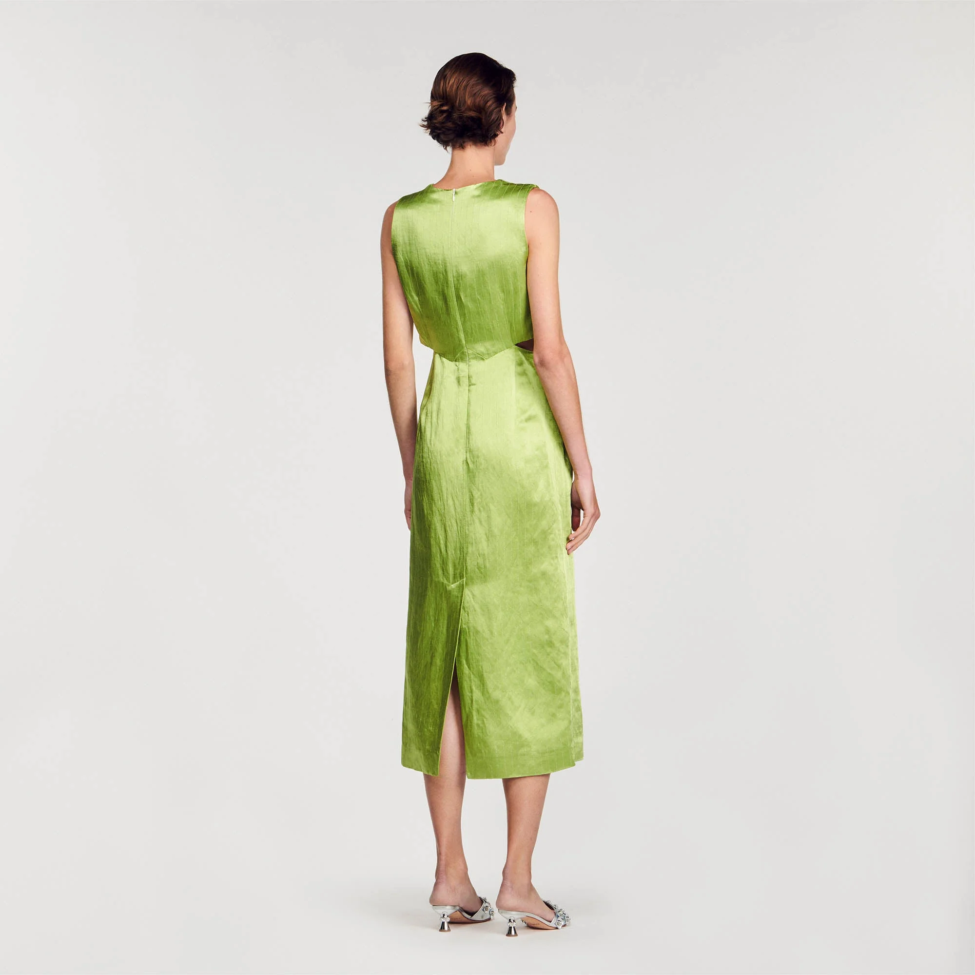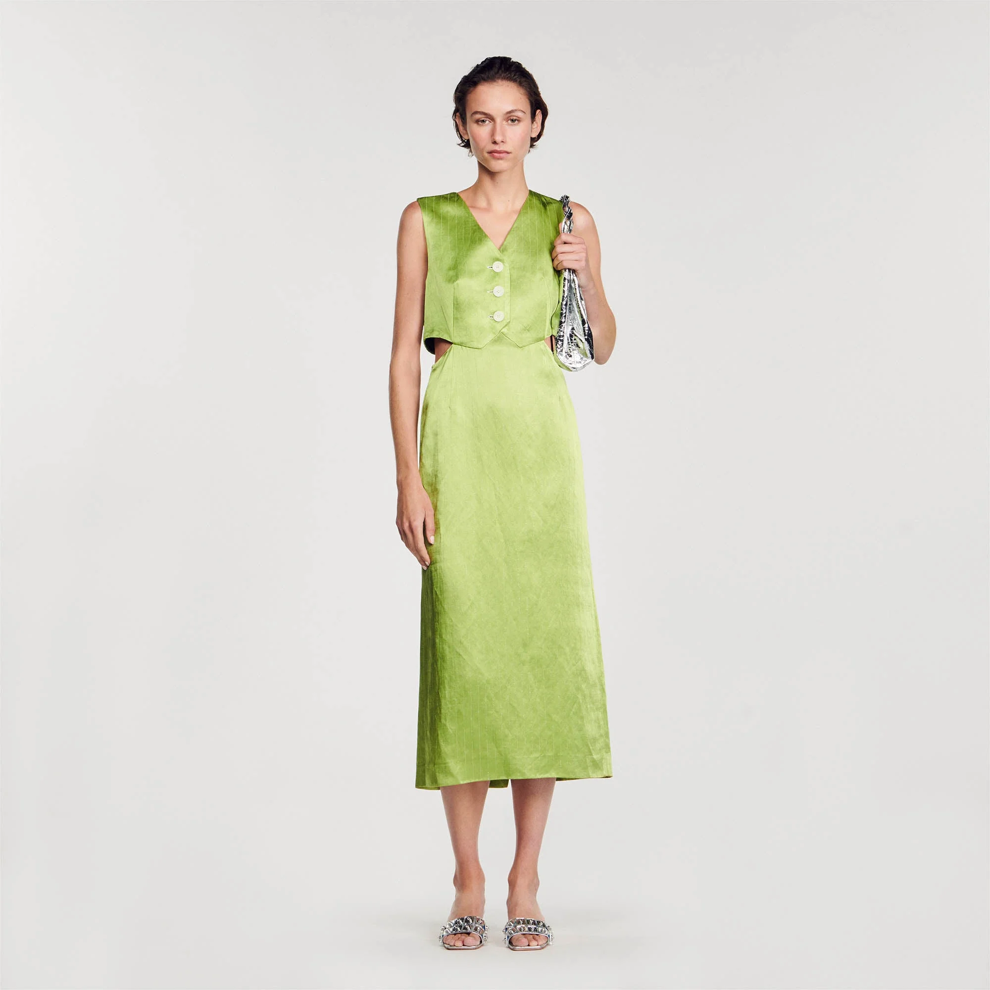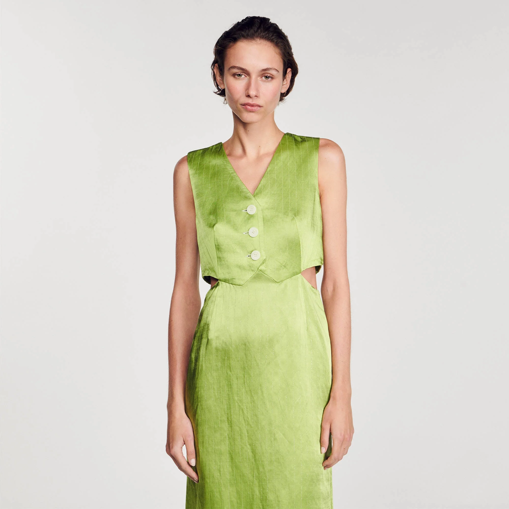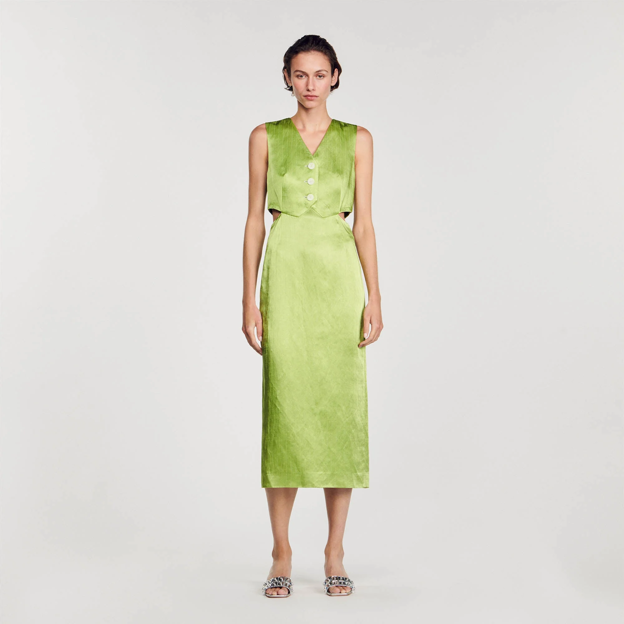 Vestido midi de rayas efecto 2 en 1 con parte superior estilo chaleco con cuello de pico con botones y calados laterales y falda recta.