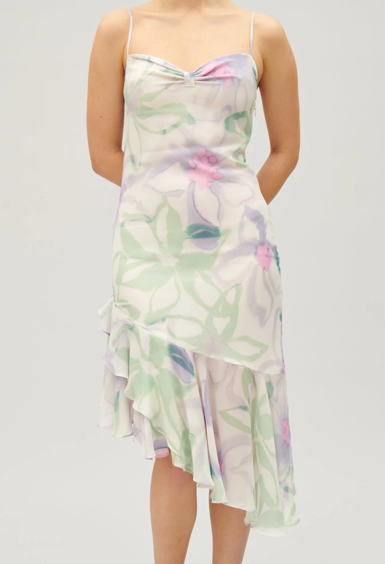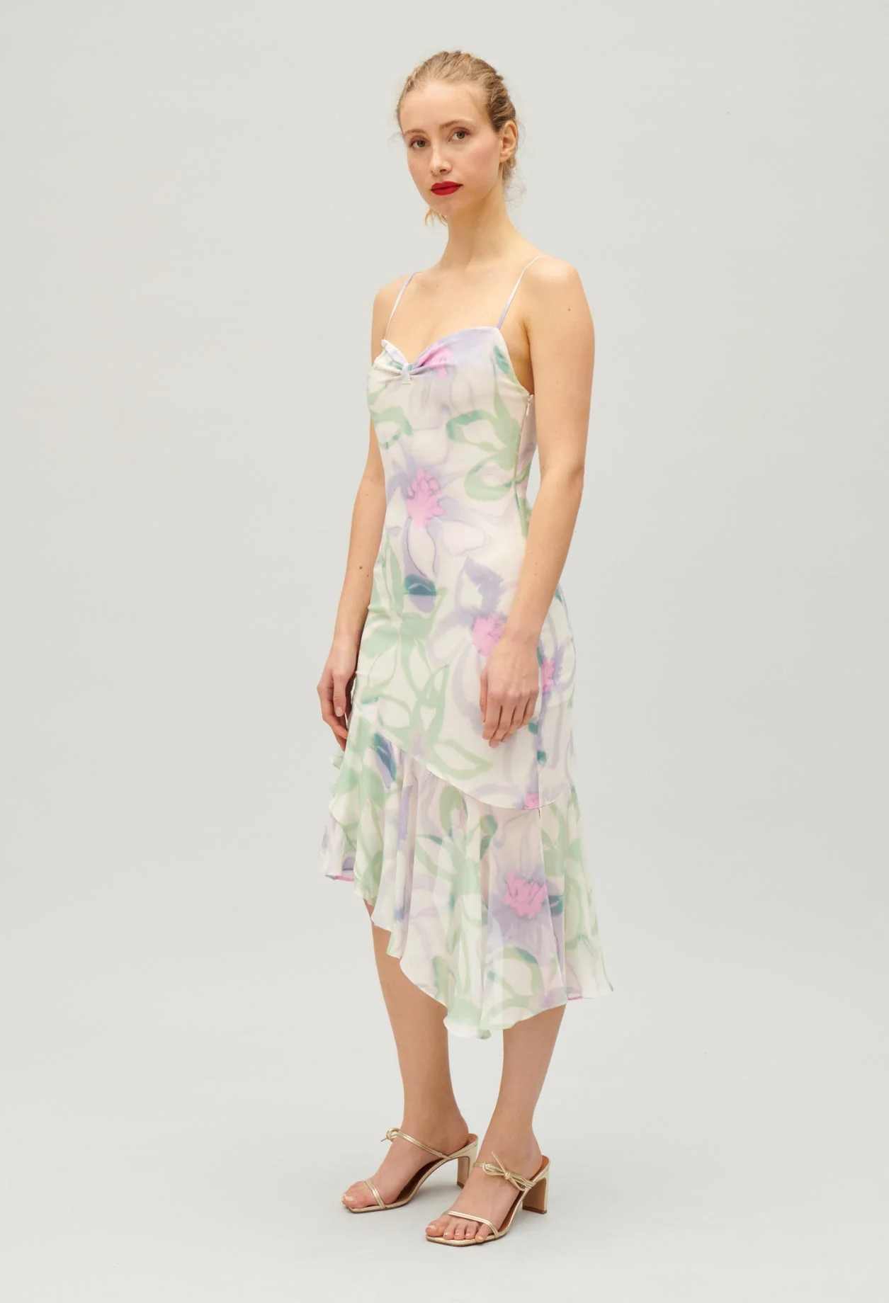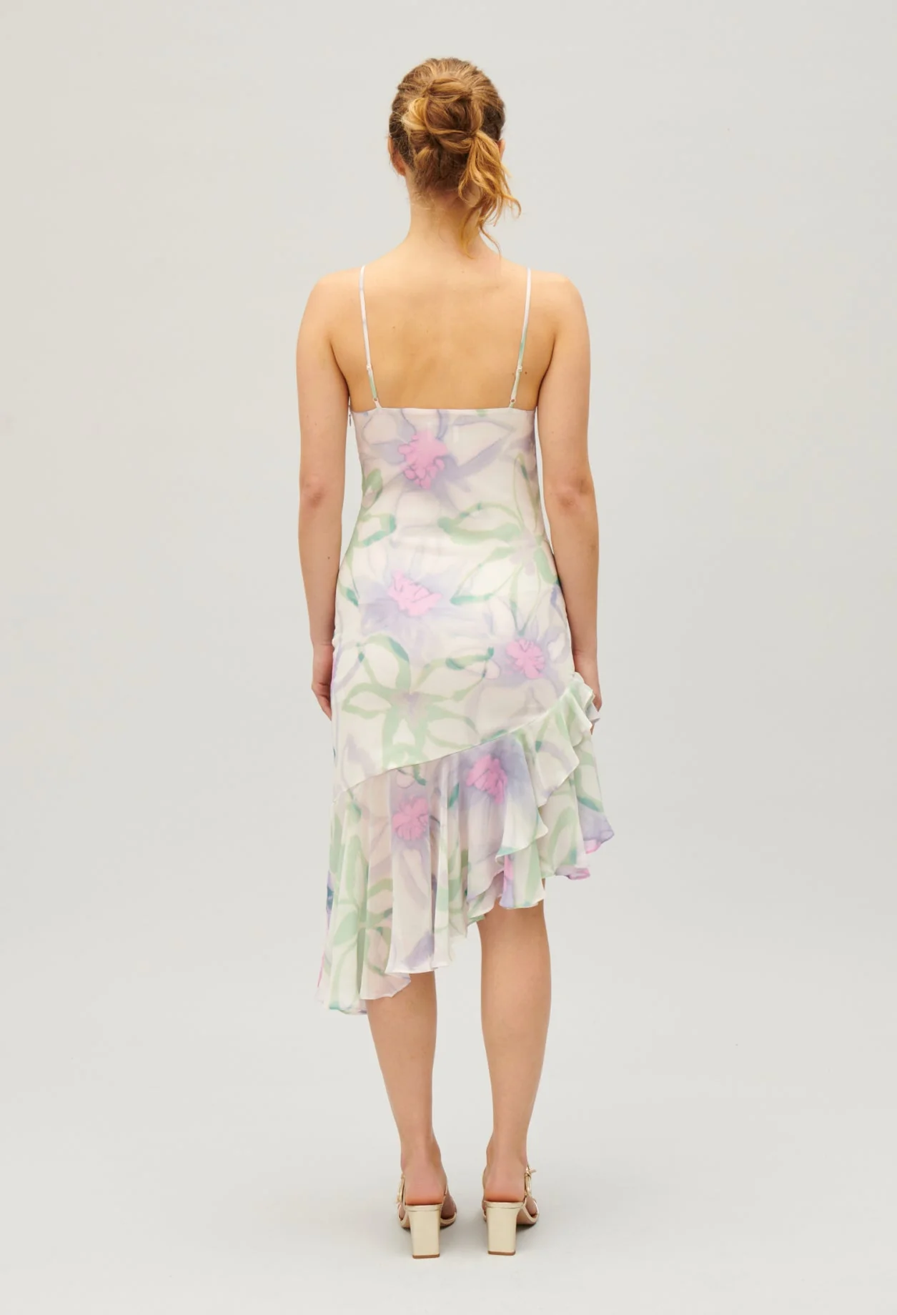 Vestido de seda con tirantes finos adornado con un estampado floral