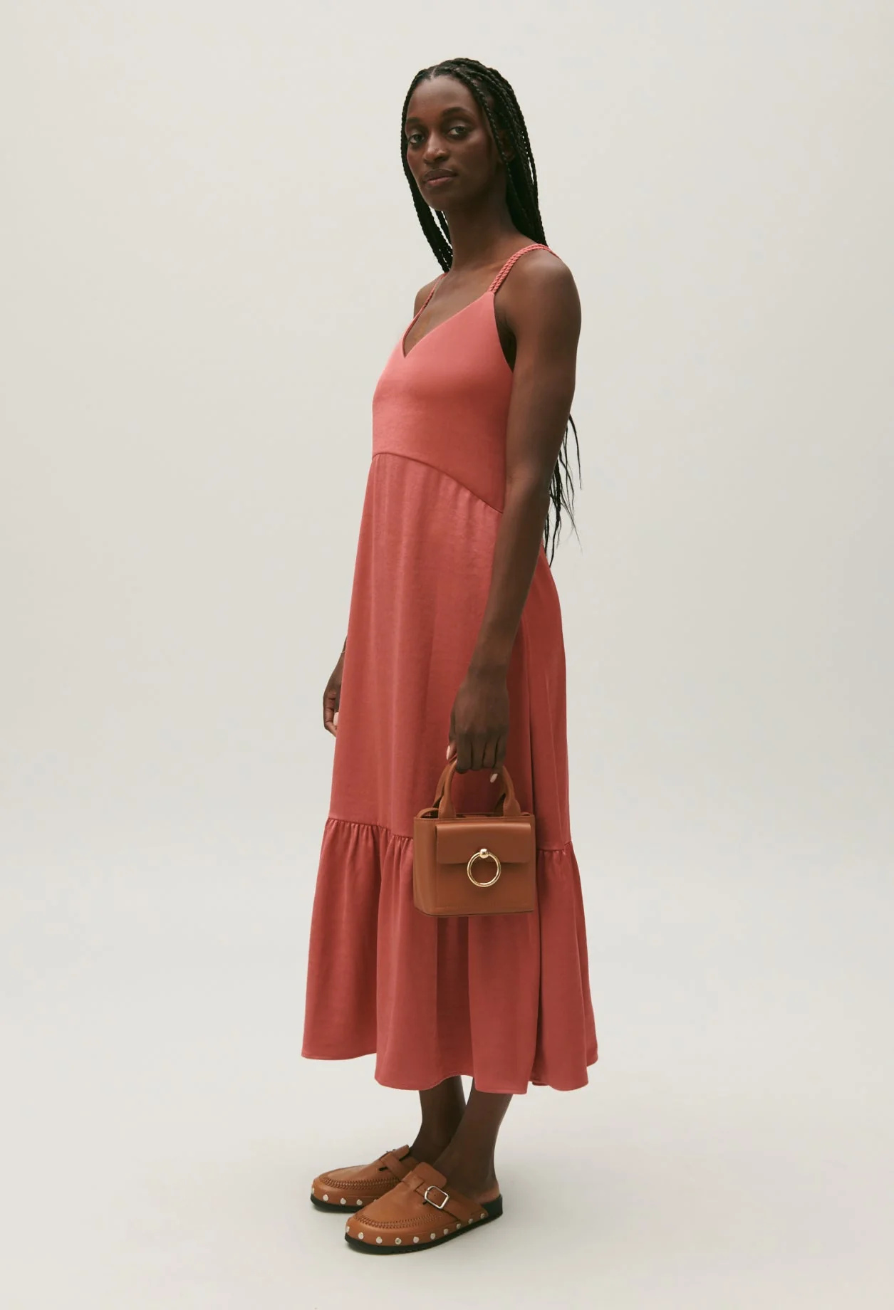 Vestido midi satinado terracota